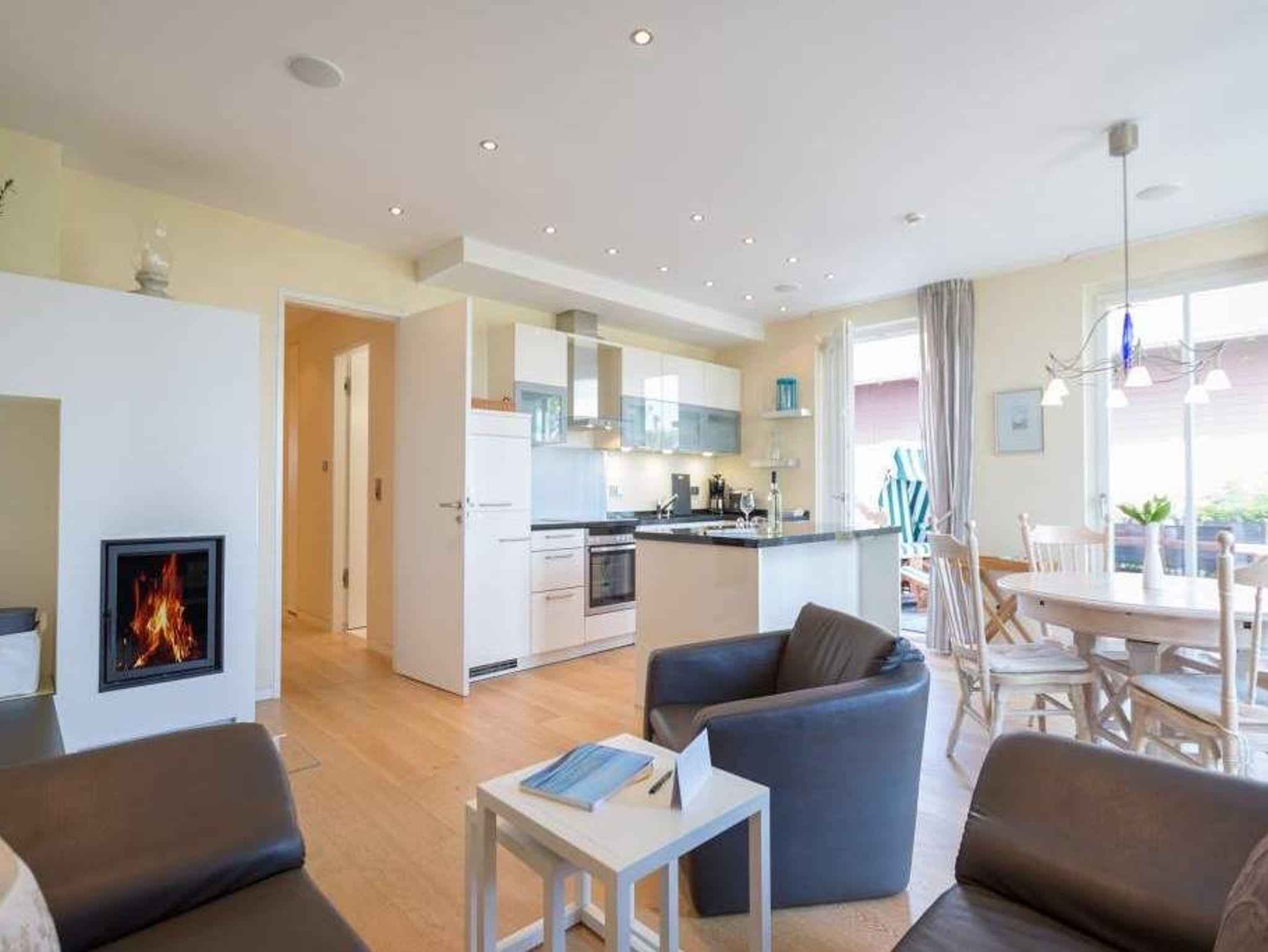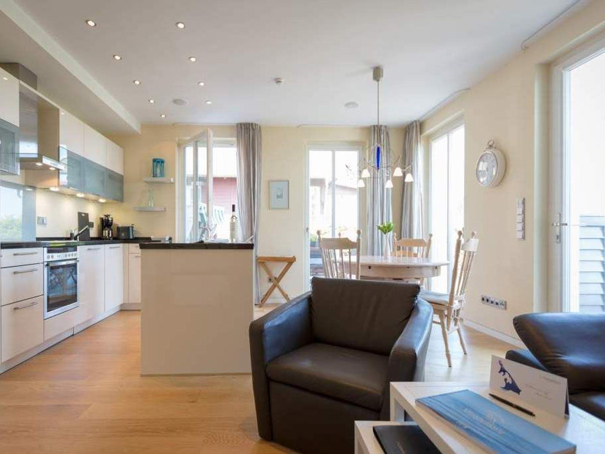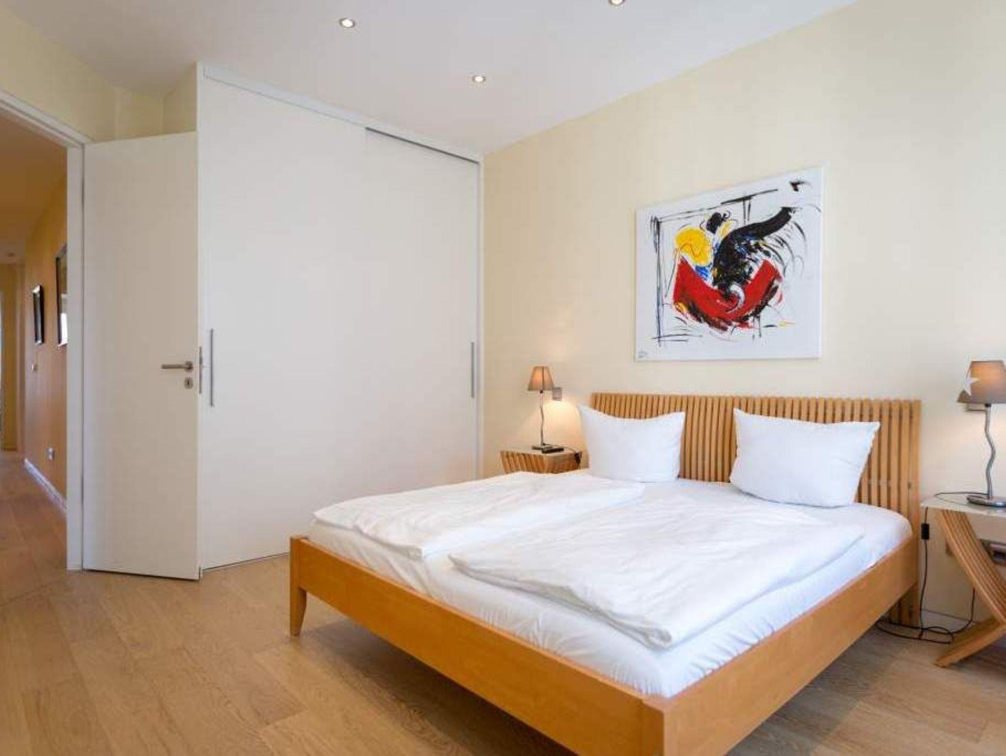 Es ist das schönste Geräusch an der Ostsee: das Rauschen der Wellen, wenn es auffrischt. Aus diesem Appartement haben Sie einen fantastischen Blick auf das grenzenlose Blau. Hier können Sie schon beim Frühstück auf der großen Terrasse aufs Meer hinaus schauen und den Gedanken Weite schenken. Und auf der Rückseite bietet eine zweite Terrasse einen Blick auf den idyllischen Schloonsee. Großzügig und hell ist der 126 Quadratmeter große Ferientraum im Erdgeschoss der Strandresidenzen Bansin. Das Eichenholzparkett gibt diesem Appartement zusätzlich einen exquisiten Touch. Drei Schlafzimmer ? davon eines mit Etagenbett ? und ein geräumiges und offenes Wohn-Esszimmer mit hochwertig ausgestatteter Küche bieten Platz für bis zu 6 Personen und ein Kleinkind bis drei Jahre im Kinderreisebett. Wohlfühlen steht hier an erster Stelle. Denn das Ostseepalais wartet mit viel Komfort und Bequemlichkeit auf. Die große Wohnlandschaft aus Leder ist der ideale Ort zum Abschalten. Der Flat-TV oder an kühlen Tagen der knisternde Kamin sorgen für Unterhaltung. Egal ob am freistehenden Küchentresen oder am Echtholztisch ? Kochen und Essen werden in dieser Küche zum wahren Vergnügen. Schlafen Sie einmal so richtig aus in einem der drei gemütlichen Schlafzimmer. Zwei Schlafzimmer sind mit Doppelbetten (1,80m x 2,00m) eingerichtet (in einem steht 1 DVD-Player zur Verfügung), eines mit Etagenbett. Das Bad verfügt über eine Badewanne und ein absolutes Highlight: eine finnische Sauna. Darüber hinaus gibt es im Ostseepalais 4 ein zweites Badezimmer. Damit keine Wünsche offen bleiben, sind bei Ihrer Ankunft die Betten bezogen und Handtücher liegen bereit. Ein eigener Strandkorb wartet an sonnigen Tagen darauf, Ihnen den Terrassenaufenthalt zu verschönern. Für den Tag am Meer steht Ihnen als besonderes Bonbon von Mitte Mai bis Ende September (je nach Witterung) zusätzlich ein Strandkorb am Strand kostenlos zur Verfügung. In der Tiefgarage gibt es 1 Pkw-Stellplatz Nr 04.