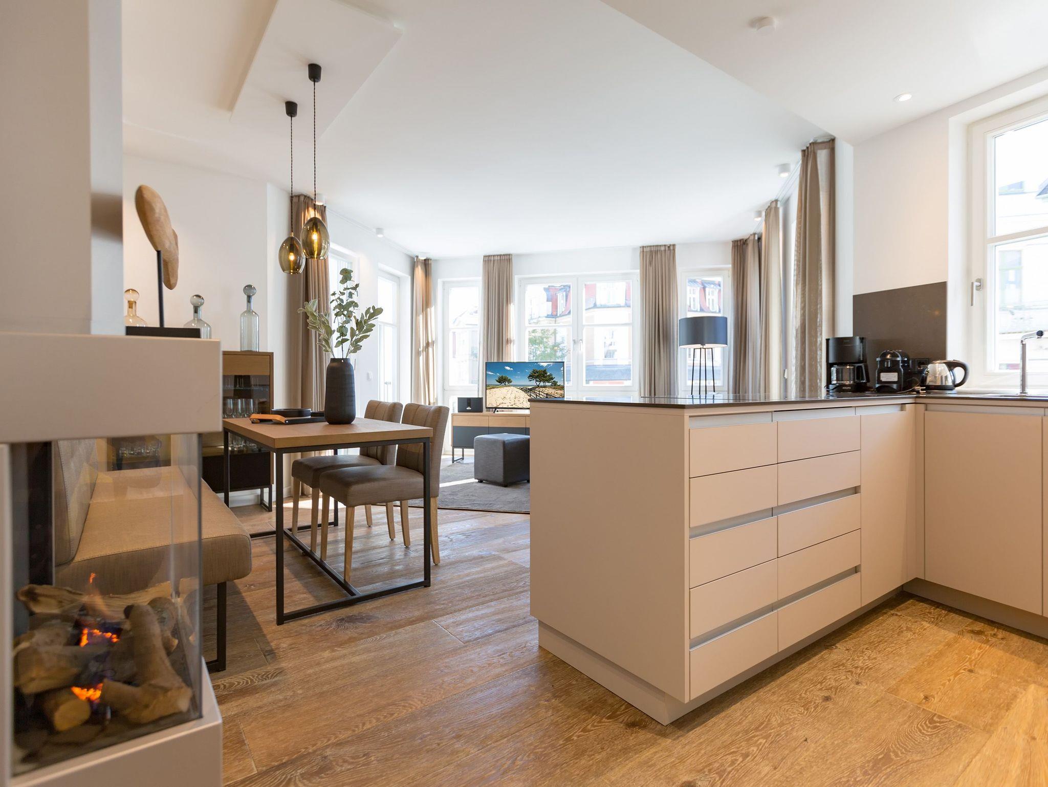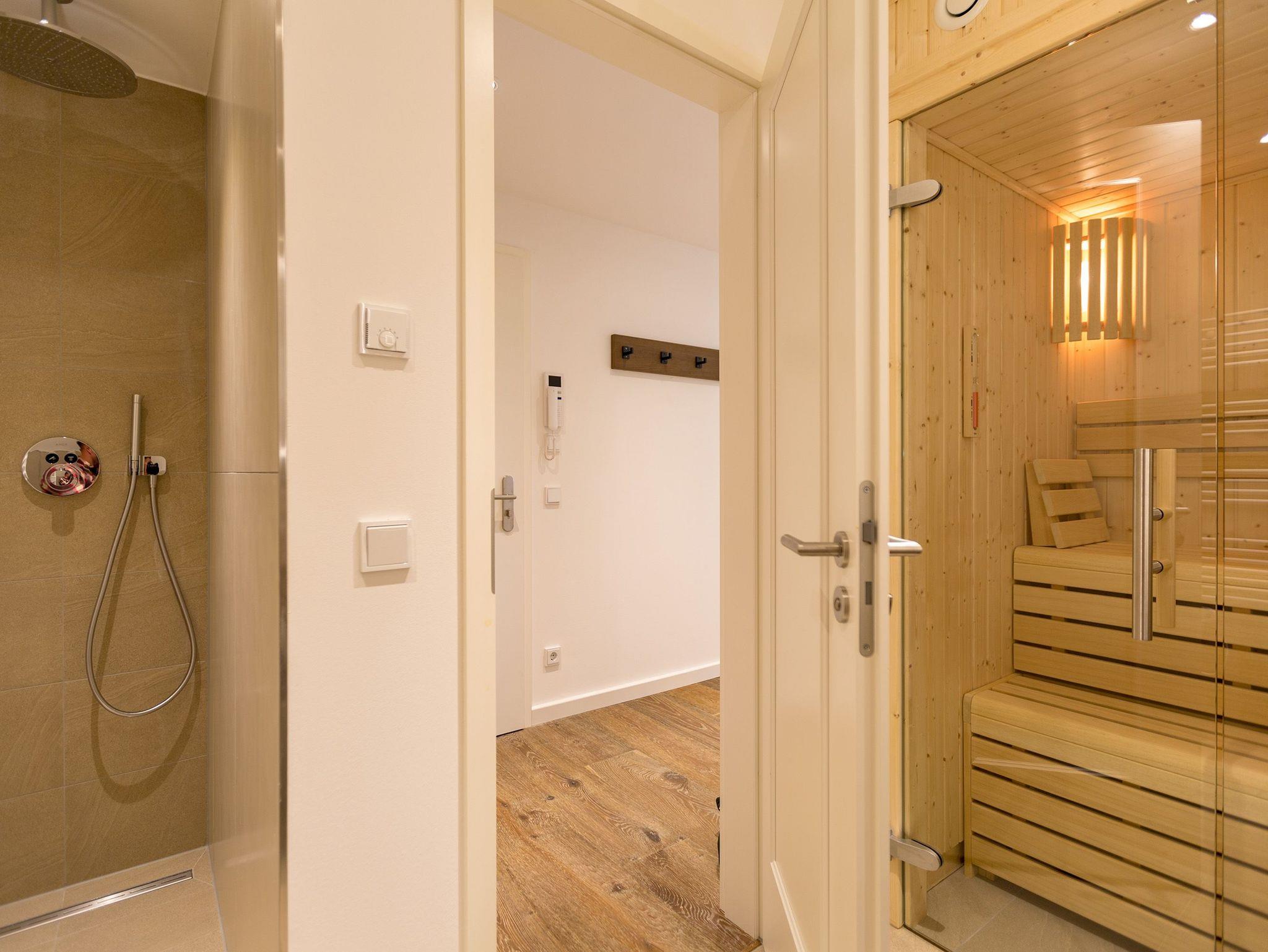 Zwei Balkone, zwei Schlafzimmer, zwei Bäder und ein großzügiges Wohnzimmer Schon beim Eintreten sagt die Seele: Hier will ich verweilen und zur Ruhe kommen. In diesem modernen und wunderschön eingerichteten Drei-Zimmer-Appartement in der 1. Etage empfängt Sie auf 69 Quadratmetern ein echtes Wohlfühlreich. Mitten im Herzen des quirligen Seebades mit Blick auf die alten Bädervillen der berühmten Bansiner Bergstraße und die Einkaufsstraße können Sie hier mit bis zu vier Personen, einem Kleinkind (bis drei Jahre im Kinderreisebett) und Ihrem Hund urlauben, entspannen und die Ostsee genießen. Die liegt nämlich direkt vor der Haustür. Treten Sie hinaus auf einen der beiden Balkone (8 und 9 Quadratmeter groß) und lauschen Sie dem Rauschen der Wellen, während Ihnen die Morgensonne oder die Nachmittagssonne wärmend ins Gesicht scheint. Vom Wohnzimmer aus haben Sie zu beiden Balkonen Zugang. Bodentiefe Fenster verleihen den Räumen eine lichte Leichtigkeit. Lassen Sie sich auf das gemütliche Sofa fallen oder plauschen Sie bei einem leckeren Essen am schönen Esstisch mit den bequemen Stühlen und der Sitzbank. Ein gläserner Gas-Kamin sorgt für wohlige Wärme und eine romantische Stimmung an ungemütlichen Tagen und Abenden. Gibt es etwas Entspannenderes als dem Spiel der Flammen zuzuschauen und sich dabei so richtig schön einzukuscheln? Mit dem großen Flat-TV und der Hifi-Anlage mit Bluetooth-Funktion können Sie das Wohnzimmer in ein Kino verwandeln. High-End finden Sie auch in der offenen Wohnküche. Sie ist mit hochwertigen Markengeräten wie Geschirrspüler oder Mikrowelle und edlem Geschirr voll ausgestattet. Schließlich soll es Ihnen an nichts fehlen. In den beiden Schlafzimmern erwartet Sie Schlafvergnügen vom Feinsten. In den Boxspringdoppelbetten (1,60 m x 2,00 m und 1,80 m x 2,00 m) werden Sie schlafen wie auf Wolken. Jedes der beiden Schlafzimmer verfügt außerdem über einen Flat-TV, einen geräumigen Schrank und einen Zugang zu einem Balkon. Vom Süd-Ost-Balkon aus haben Sie sogar Blick aufs Meer. In diesem Feriendomizil gibt es alles in doppelter Ausführung so auch das Bad. In beiden Bädern finden Sie eine Regendusche, ein Waschtisch mit beleuchtetem Spiegel und ein WC. Eine kleine Überraschung lädt Sie in einem der beiden Badezimmer noch zu einem zusätzlichen Entspannungserlebnis ein: eine eigene Finnische Sauna, die Sie kostenfrei nutzen können. Kostenfrei ist übrigens auch das WLAN sowie die Nutzung des Waschtrockners in der Küche. Bei Ihrer Anreise sind die Betten bezogen und Handtücher liegen für Sie bereit. In der modernen Tiefgarage ist für Sie der Stellplatz Nr. 5 im Doppelparker oben (max. Höhe 2,00 m, max. Länge 5,10 m, max. Breite 2,50 m, max. Last 2.600 kg) reserviert.