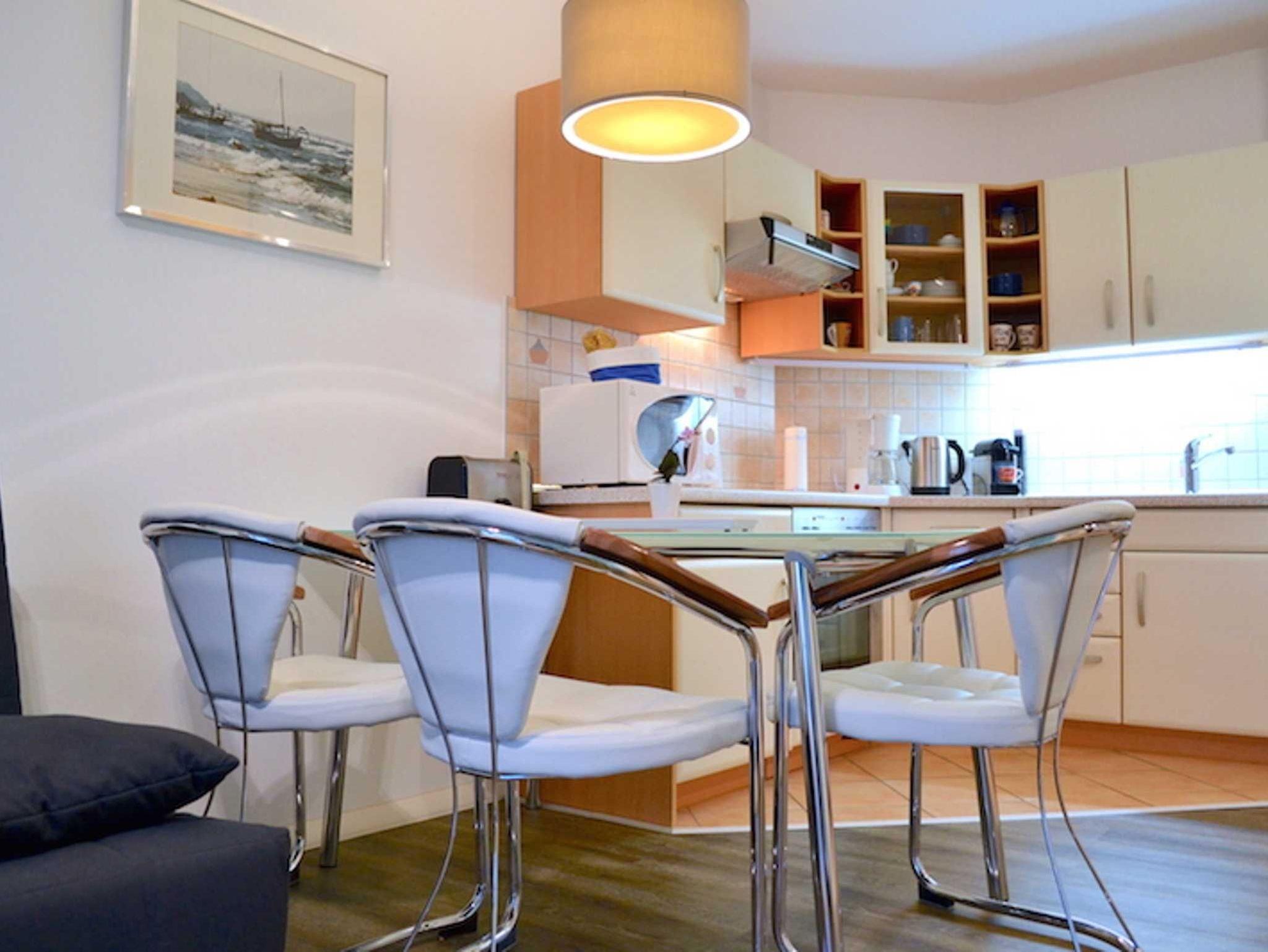 Im Wohnzimmer relaxen Sie auf dem bequemen Sofa vor dem LED-Fernseher mit Blu-ray/DVD-Player und Radio. An die umfangreich ausgestattete offene Küche mit Cerankochfeld, Backofen, Kühlschrank mit Gefrierfach, Mikrowelle, Toaster, Wasserkocher, Kaffeemaschine, Nespresso Kapselmaschine schließt ein Essbereich mit einem großen Esstisch und gepolsterten Stühlen an. Das Schlafzimmer mit Doppelbett, Kleiderschrank und LED-TV, sowie ein Duschbad runden die gemütliche Wohnung im 2. Obergeschoss ab. Auf dem von der Wohnküche und dem Schlafzimmer erreichbaren großen Balkon, lassen Sie den Tag mit ausreichend Sonne und einem Glas Wein ausklingen.