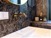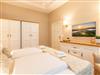 Damit Sie Ihre wohlverdiente Urlaubszeit bereits am Anreisetag in vollen Zügen genießen können, haben wir das Bett für Sie und das für Ihre lieben Mitreisenden bereits bezogen und ein Duschtuch sowie ein kleines Handtuch bereitgelegt. Das Badezimmer als Experiment, einmal mit einer auffallenderen und auch ungewöhnlicheren Farbgestaltung ein Wohlfühlgefühl de luxe zu erzeugen. Das Ergebnis kann sich sehen lassen: großformatige dunkle Natursteinfliesen gepaart mit einer hellen Badkeramik sowie Armaturen und Accessoires in Messing präsentieren nun zusammen mit einer bodengleichen Dusche den Urlaubskomfort.