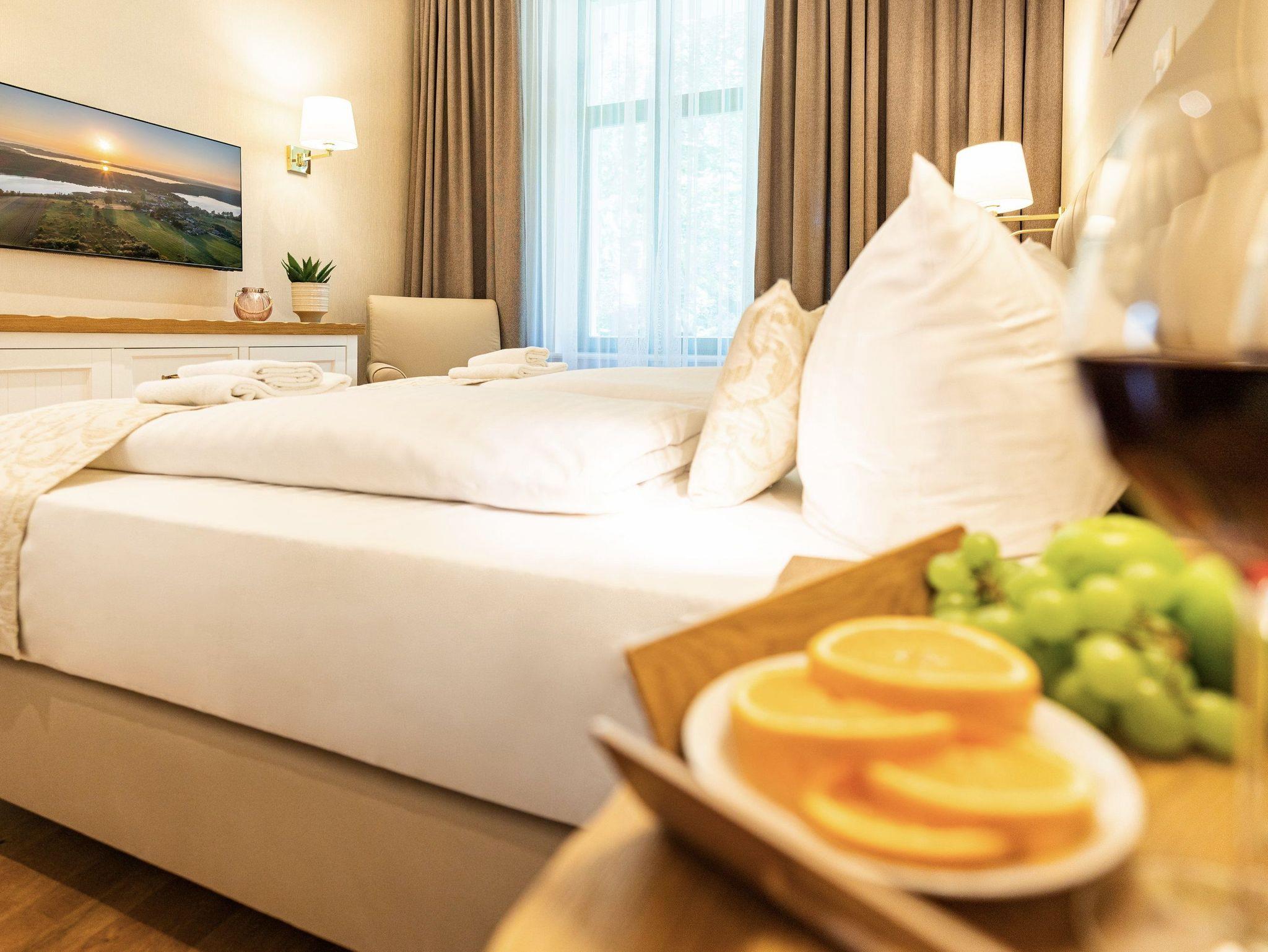 Damit Sie Ihre wohlverdiente Urlaubszeit bereits am Anreisetag in vollen Zügen genießen können, haben wir das Bett für Sie und das für Ihre lieben Mitreisenden bereits bezogen und ein Duschtuch sowie ein kleines Handtuch bereitgelegt.