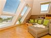 Im Dachgeschoß der Villa Strandperle empfängt Sie diese attraktive 2-Raum-Ferienwohnung. Das helle, freundliche Appartement ist 40 qm groß. Modern, komfortabel und geschmackvoll eingerichtet, bietet es 2 Personen und einem Kleinkind (bis 3 Jahre) Platz zum Wohlfühlen. Aus den Dachfenstern genießen Sie den wunderschönen Blick auf die Ostsee. Das Domizil verfügt über ein Wohnzimmer, eine offene Küche, ein Schlafzimmer mit Doppelbett (nur von einer Seite begehbar) und ein Bad mit Dusche und WC. Auf Wunsch stellen wir für unsere kleinen Gäste ein Kinderreisebett (ohne zusätzliche Matratze [&] Bettzeug) und einen Kinderhochstuhl ( gegen einen Aufpreis) zur Verfügung. Für Ihren Komfort sind die Betten bei der Anreise bezogen und Handtücher liegen bereit (Erstausstattung). PKW-Stellplatz am Haus.