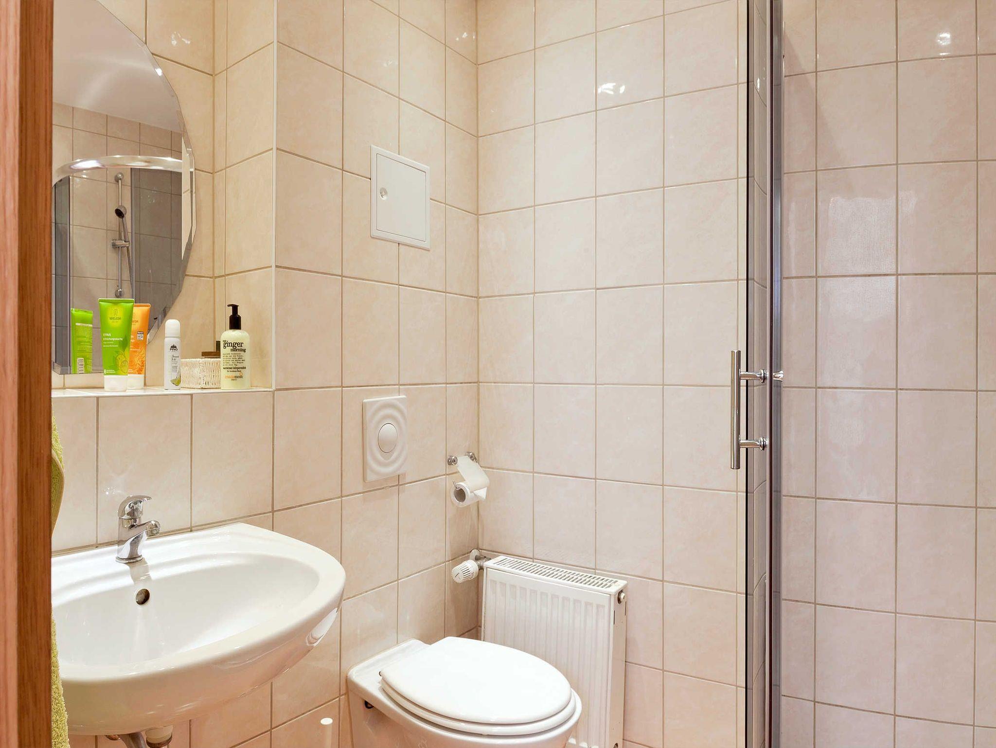 Die Wohnung ist mit Dusche/WC und einem separaten Gäste-WC ausgestattet.
