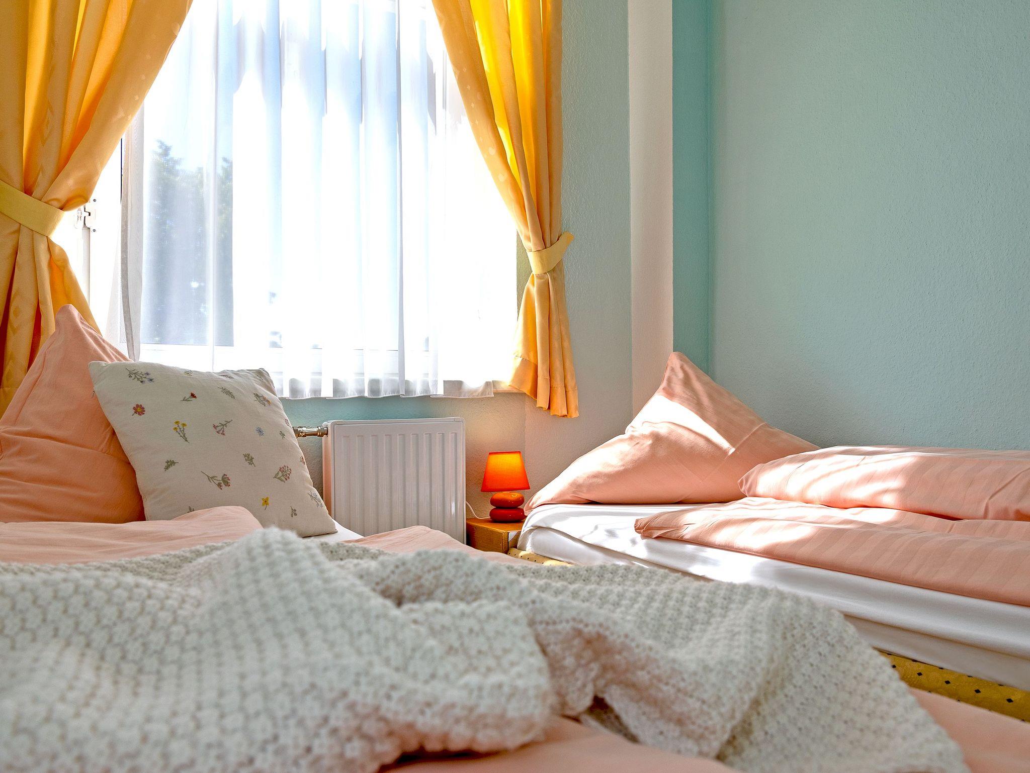 In dem anliegenden kleinen Schlafraum befinden sich zwei 80 cm x 2 m große Einzelbetten.
