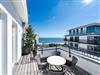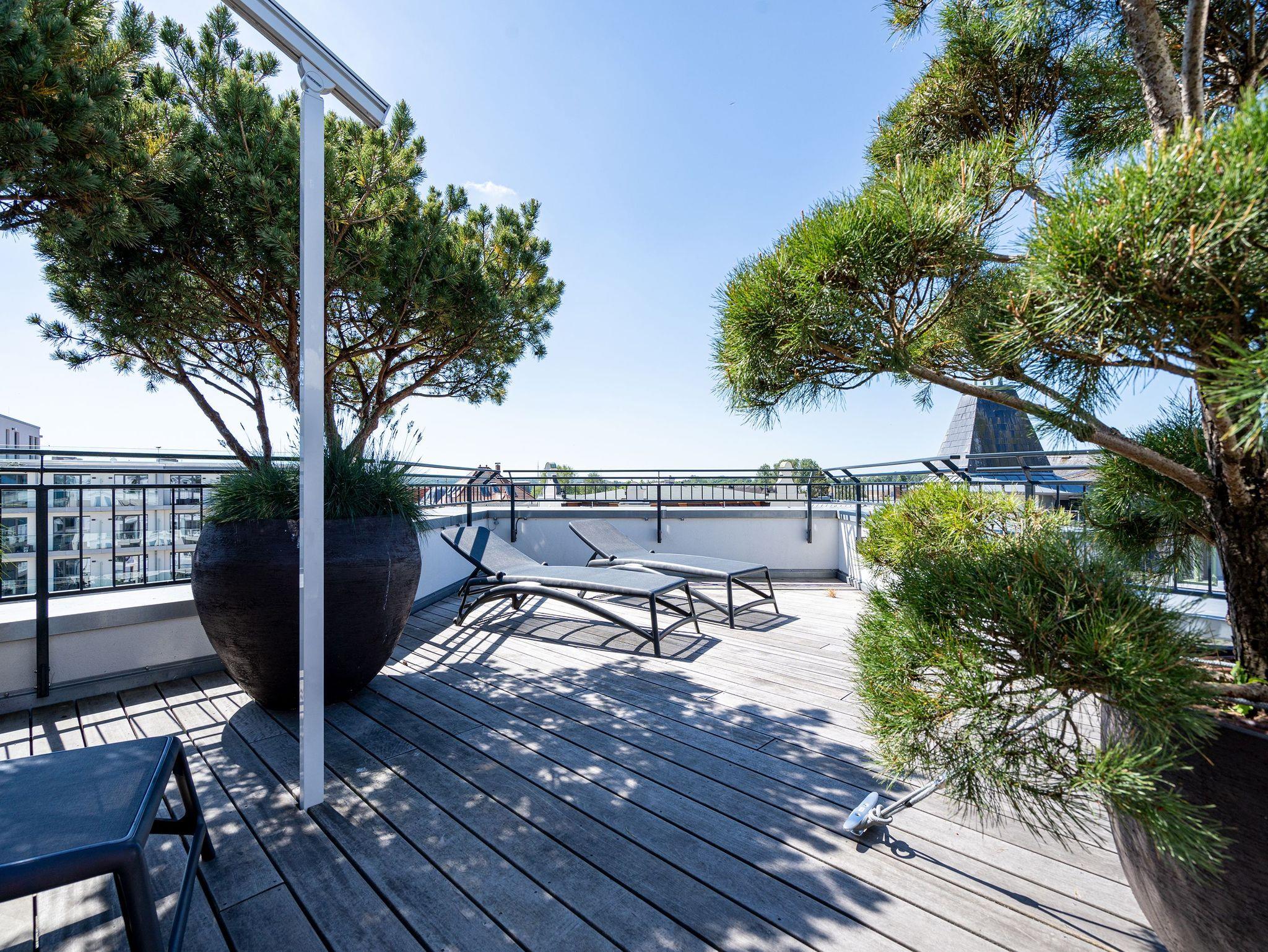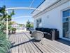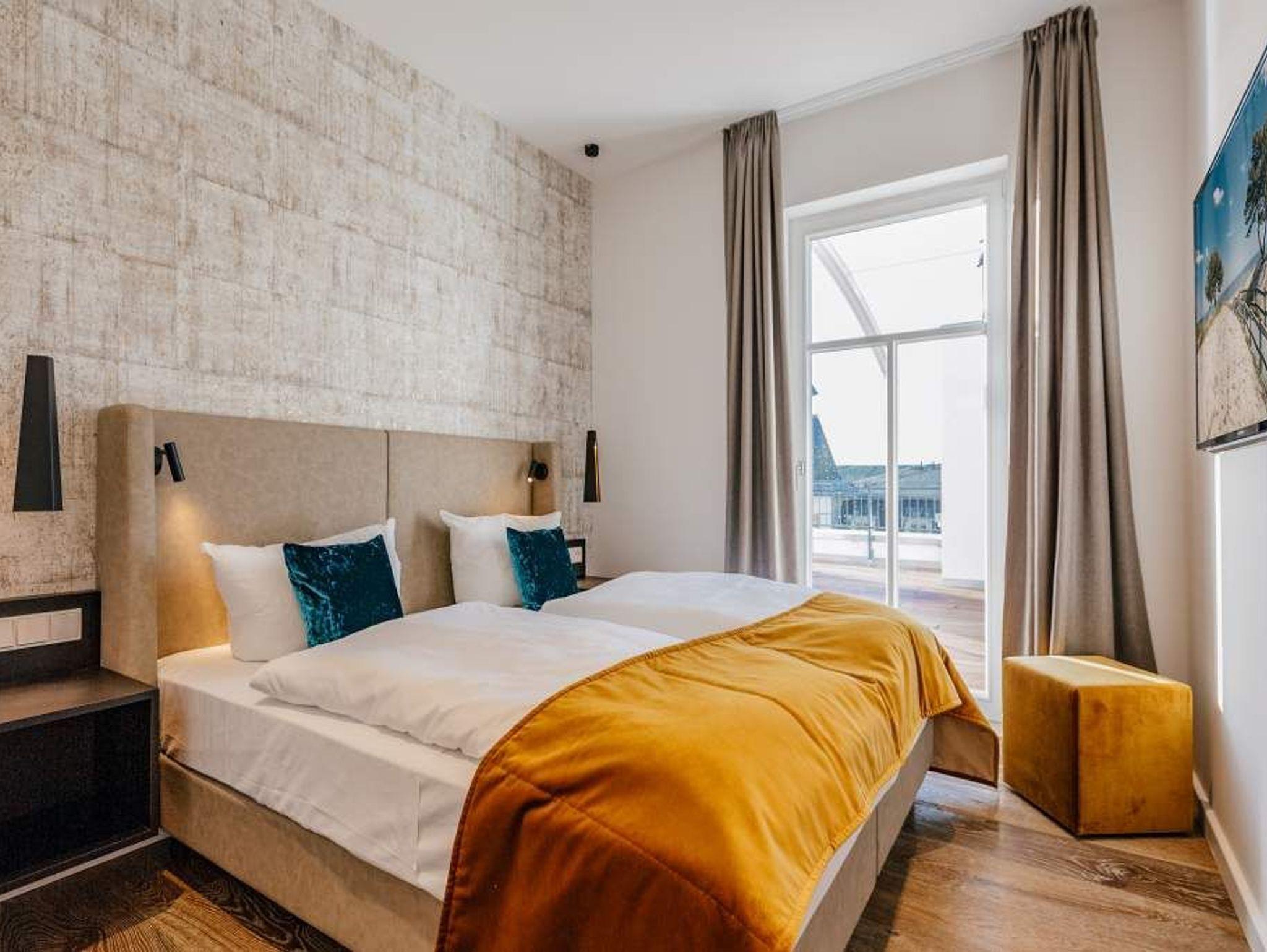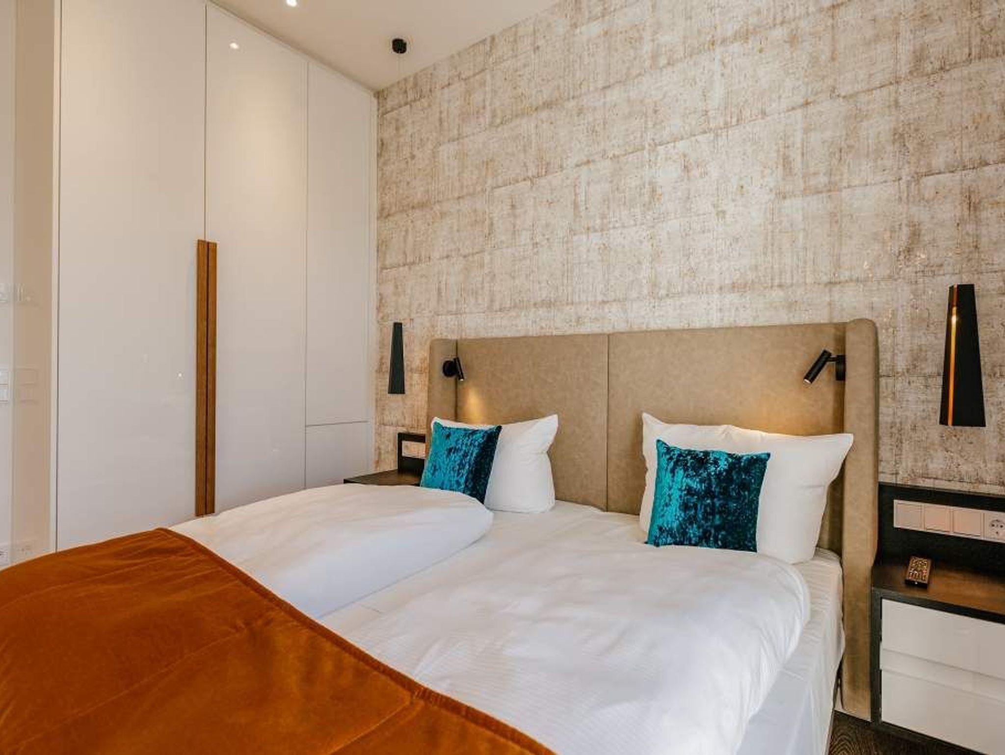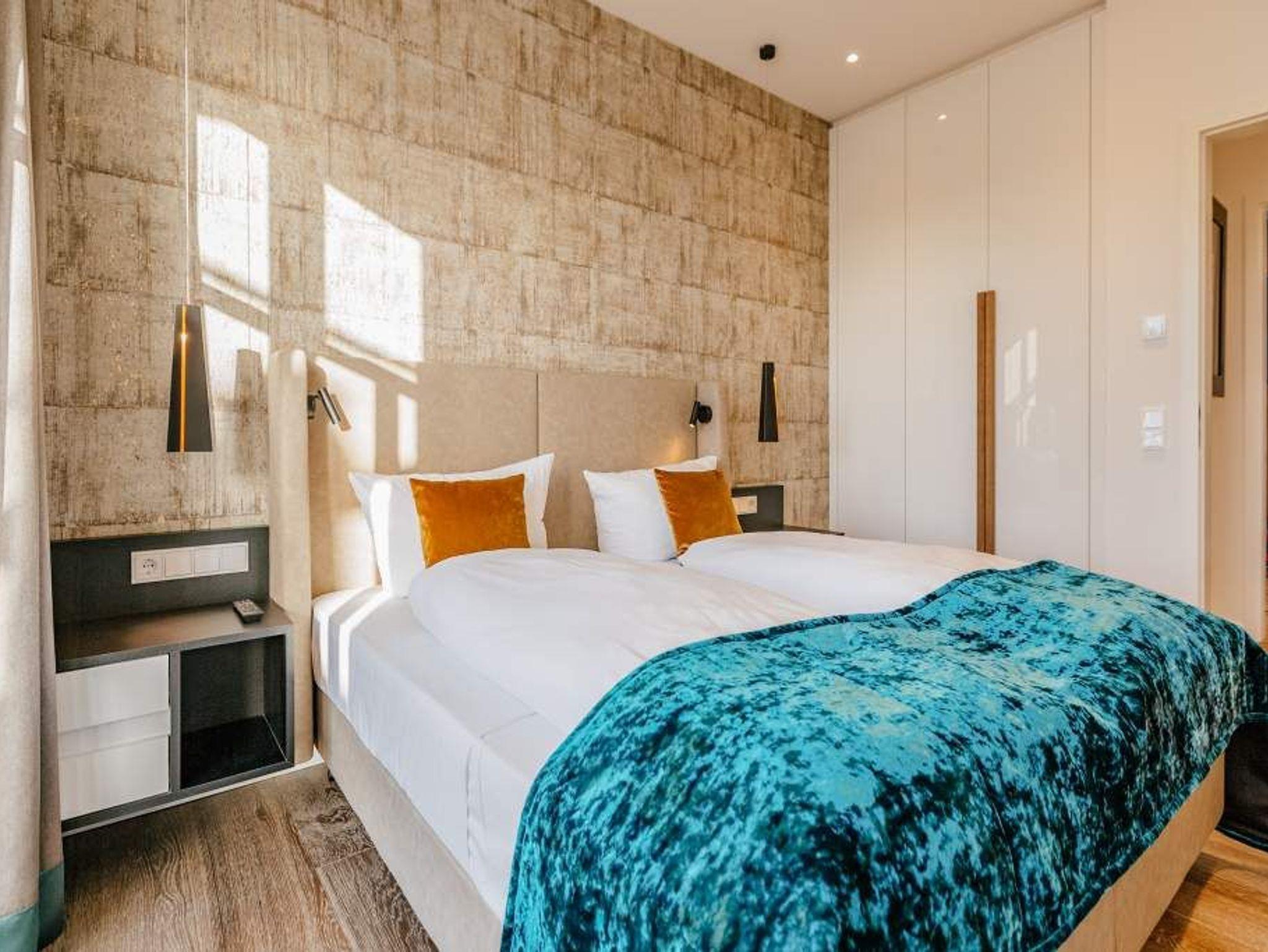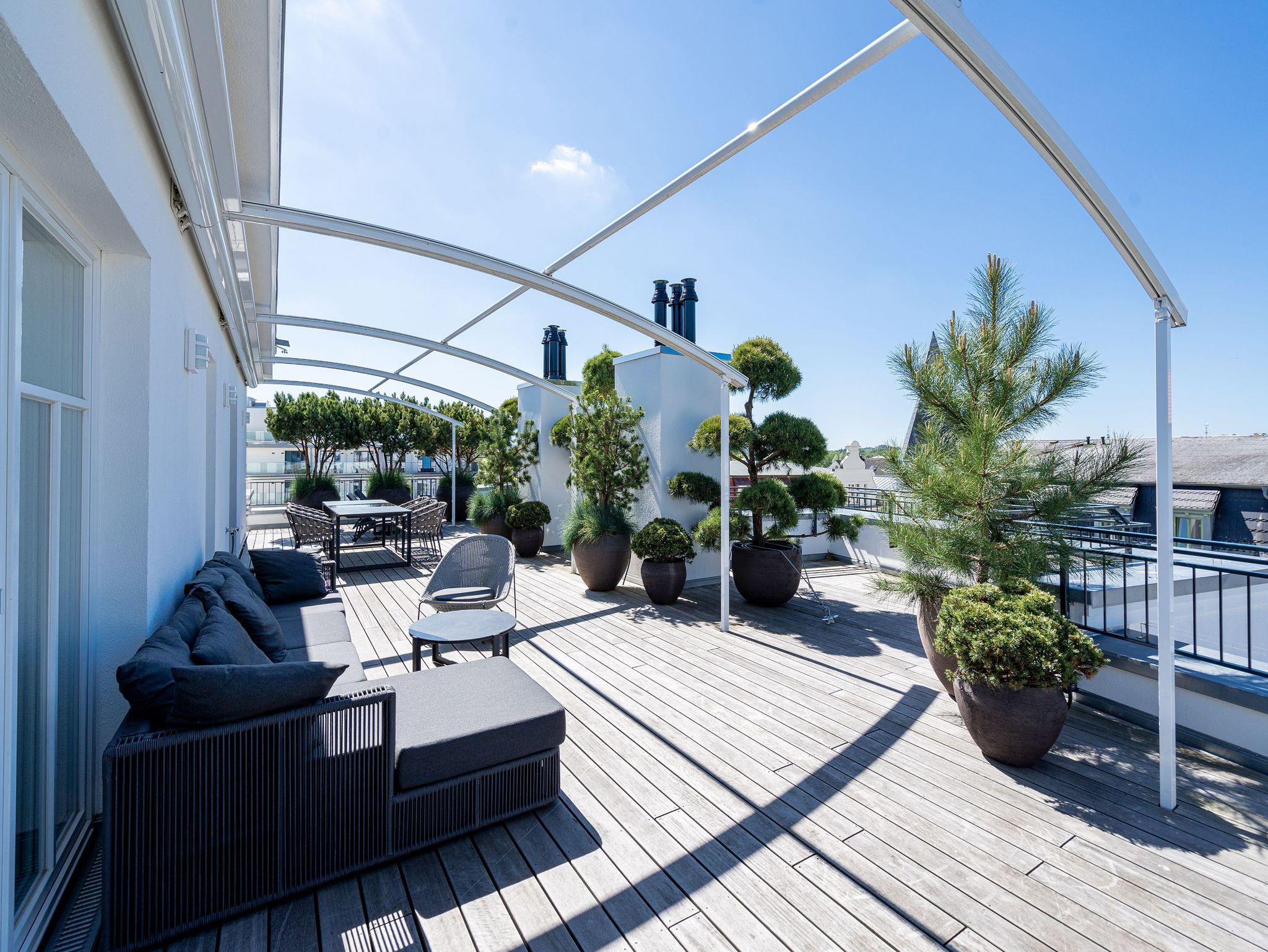 Urlaub der Extra-Klasse ? im 100 Quadratmeter großen Penthouse Sunset im 4. Stock erwartet Sie ein wahrhaft exklusives Urlaubsparadies für bis zu vier Personen. Der Name Sunset ist Programm. Denn von der riesigen, 171 Quadratmeter großen Südterrasse können Sie die malerischen Usedomer Sonnenuntergänge über den Dächern der alten Villen von Bansin ganz exklusiv genießen. Ihr ganz privates Sonnendeck erstreckt sich über die gesamte Hausbreite und gibt so auch auf die Ostsee einen Blick frei. Ob Sonnenbaden, Entspannen im Schatten der ausfahrbaren Markisen dösen oder den Sundowner mit den Freunden oder der Familie trinken ? hier werden Sie sich rundum wohlfühlen und neue Energie tanken können. Das Innere des Appartements ist stilvoll, elegant und stylisch von einem der besten Hoteleinrichter Deutschlands eingerichtet. Bis ins kleinste Detail ist hier alles aufeinander abgestimmt. Harmonie durchströmt jeden der vier Räume. Das großzügige Wohn-Esszimmer lädt zum Entspannen und Genießen ein. Lassen Sie sich auf die große Eckcouch oder den gemütlichen Sessel fallen. Füße hoch und einfach nur entspannen beim Schauen eines spannenden Films auf dem Flat-TV oder beim Beobachten der Flammen im Gas-Kamin. Hier kann man Zeit und Raum vergessen. Packt Sie der Appetit, finden Sie in der offenen Wohnküche alles Notwendige, um ein köstliches Essen zu zaubern. Die Geräte wie Geschirrspüler, Herd oder Kaffeemaschine sind allesamt hochwertige Markengeräte. In den Schränken wartet das edle Geschirr nur darauf, die Gaumenfreude auch optisch zum Genuss zu machen. Denn schließlich isst das Auge mit. Nehmen Sie Platz am schönen Esstisch. Durch die Bluetooth-Funktion der Bose-Soundanlage können Sie zu jeder Tageszeit Ihre Lieblingsmusik hören. Das WLAN ist kostenfrei. Jedes der beiden Schlafzimmer besitzt ein eigenes Bad mit Regendusche, Waschtisch und WC. Zwei Boxspringdoppelbetten (1,80 m x 2,00 m) sorgen für wundervolle Träume und einen erholsamen Schlaf. Damit Sie gleich nach dem Aufwachen an die Ostseeluft hinaustreten können, hat jedes Schlafzimmer einen Zugang zur Terrasse. Große Schränke bieten ausreichend Stauraum. Das Penthouse Sunset hat noch ein Ass im Ärmel. In einem eigenen kleinen Fitnessraum mit Fitnessgeräten und Flat-TV können Sie auch im Urlaub so richtig Gas geben und Ihrer Fitness auf die Sprünge helfen. Nach dem Auspowern gibt es zum Runterkommen sogar eine eigene Finnische Sauna und eine geräumige Regendusche. Wenn Sie Ihre Sachen waschen wollen, haben Sie dazu ebenfalls die Gelegenheit. In einem Hauswirtschaftsraum steht ein Wasch-Trockner. Der Urlaub wäre nicht perfekt, wenn nicht bei Anreise die Betten schon bezogen wären und ausreichend Handtücher bereit lägen. In der modernen Tiefgarage sind für das Penthouse zwei Stellplätze, Nr. 29, reserviert. Also, kommen Sie an und lassen Sie es sich gut gehen. Denn in diesem Penthouse wird Ihre Ostsee-Auszeit zu einem unvergesslich schönen Urlaub.