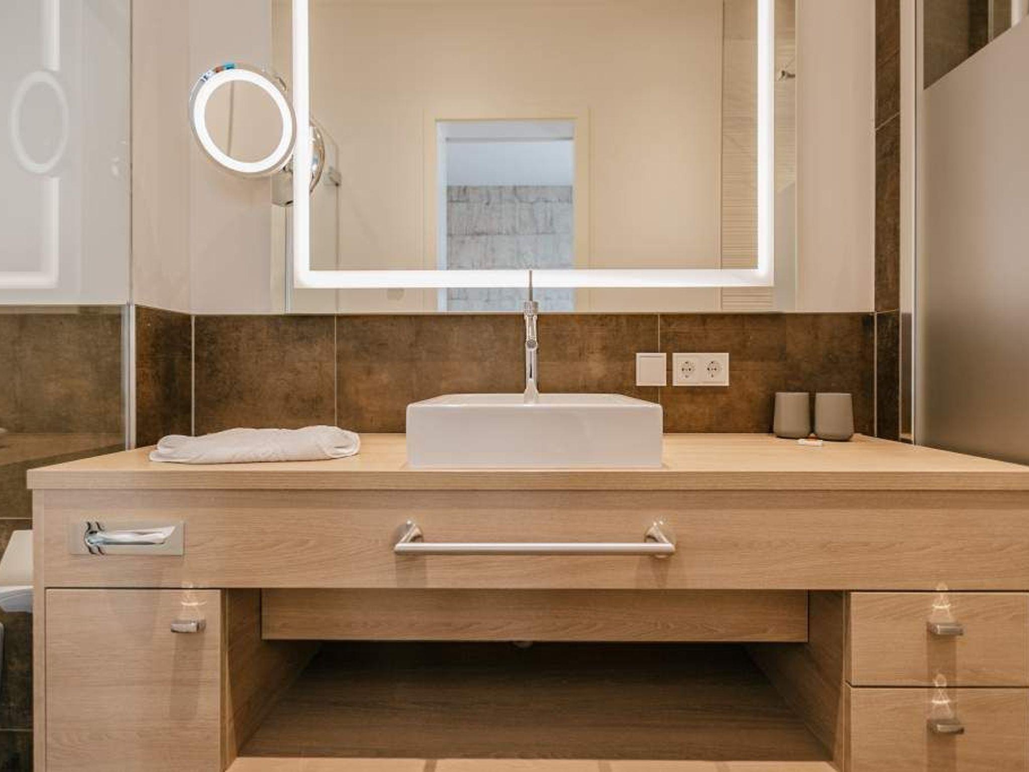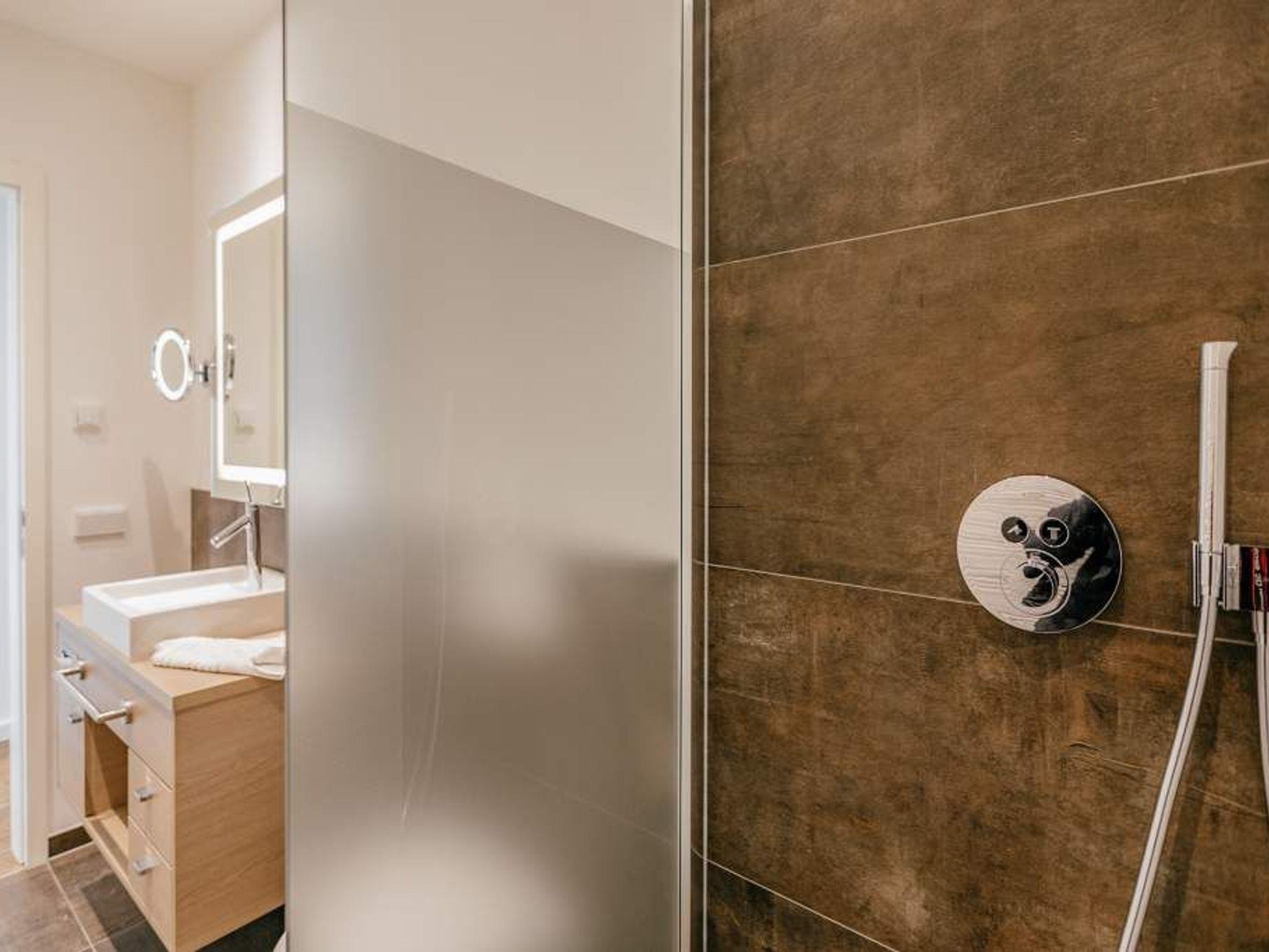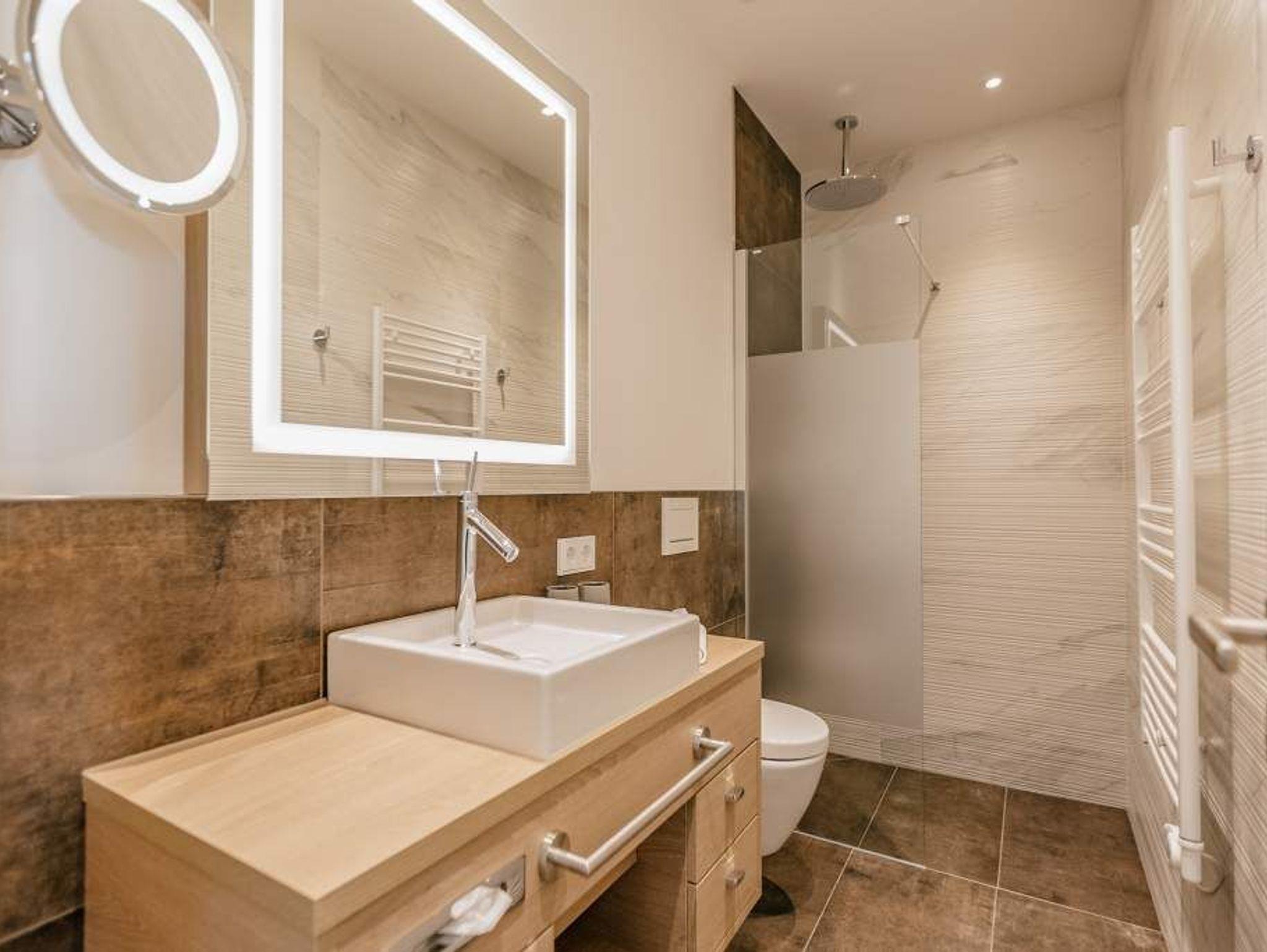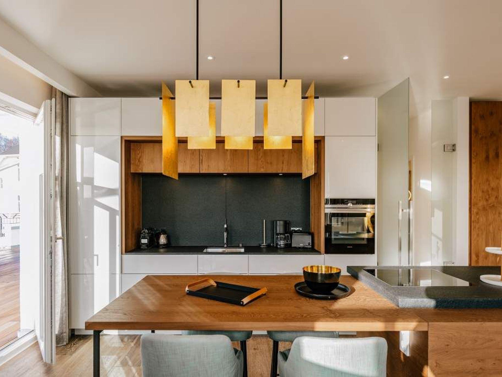 Urlaub der Extra-Klasse im 100 Quadratmeter großen Penthouse Sunset im 4. Stock erwartet Sie ein wahrhaft exklusives Urlaubsparadies für bis zu vier Personen. Der Name Sunset ist Programm. Denn von der riesigen, 171 Quadratmeter großen Südterrasse können Sie die malerischen Usedomer Sonnenuntergänge über den Dächern der alten Villen von Bansin ganz exklusiv genießen. Ihr ganz privates Sonnendeck erstreckt sich über die gesamte Hausbreite und gibt so auch auf die Ostsee einen Blick frei. Ob Sonnenbaden, Entspannen im Schatten der ausfahrbaren Markisen dösen oder den Sundowner mit den Freunden oder der Familie trinken hier werden Sie sich rundum wohlfühlen und neue Energie tanken können. Das Innere des Appartements ist stilvoll, elegant und stylisch von einem der besten Hoteleinrichter Deutschlands eingerichtet. Bis ins kleinste Detail ist hier alles aufeinander abgestimmt. Harmonie durchströmt jeden der vier Räume. Das großzügige Wohn-Esszimmer lädt zum Entspannen und Genießen ein. Lassen Sie sich auf die große Eckcouch oder den gemütlichen Sessel fallen. Füße hoch und einfach nur entspannen beim Schauen eines spannenden Films auf dem Flat-TV oder beim Beobachten der Flammen im Gas-Kamin. Hier kann man Zeit und Raum vergessen. Packt Sie der Appetit, finden Sie in der offenen Wohnküche alles Notwendige, um ein köstliches Essen zu zaubern. Die Geräte wie Geschirrspüler, Herd oder Kaffeemaschine sind allesamt hochwertige Markengeräte. In den Schränken wartet das edle Geschirr nur darauf, die Gaumenfreude auch optisch zum Genuss zu machen. Denn schließlich isst das Auge mit. Nehmen Sie Platz am schönen Esstisch. Durch die Bluetooth-Funktion der Bose-Soundanlage können Sie zu jeder Tageszeit Ihre Lieblingsmusik hören. Das WLAN ist kostenfrei. Jedes der beiden Schlafzimmer besitzt ein eigenes Bad mit Regendusche, Waschtisch und WC. Zwei Boxspringdoppelbetten (1,80 m x 2,00 m) sorgen für wundervolle Träume und einen erholsamen Schlaf. Damit Sie gleich nach dem Aufwachen an die Ostseeluft hinaustreten können, hat jedes Schlafzimmer einen Zugang zur Terrasse. Große Schränke bieten ausreichend Stauraum. Das Penthouse Sunset hat noch ein Ass im Ärmel. In einem eigenen kleinen Fitnessraum mit Fitnessgeräten und Flat-TV können Sie auch im Urlaub so richtig Gas geben und Ihrer Fitness auf die Sprünge helfen. Nach dem Auspowern gibt es zum Runterkommen sogar eine eigene Finnische Sauna und eine geräumige Regendusche. Wenn Sie Ihre Sachen waschen wollen, haben Sie dazu ebenfalls die Gelegenheit. In einem Hauswirtschaftsraum steht ein Wasch-Trockner. Der Urlaub wäre nicht perfekt, wenn nicht bei Anreise die Betten schon bezogen wären und ausreichend Handtücher bereit lägen. In der modernen Tiefgarage sind für das Penthouse zwei Stellplätze, Nr. 29, reserviert. Also, kommen Sie an und lassen Sie es sich gut gehen. Denn in diesem Penthouse wird Ihre Ostsee-Auszeit zu einem unvergesslich schönen Urlaub.
