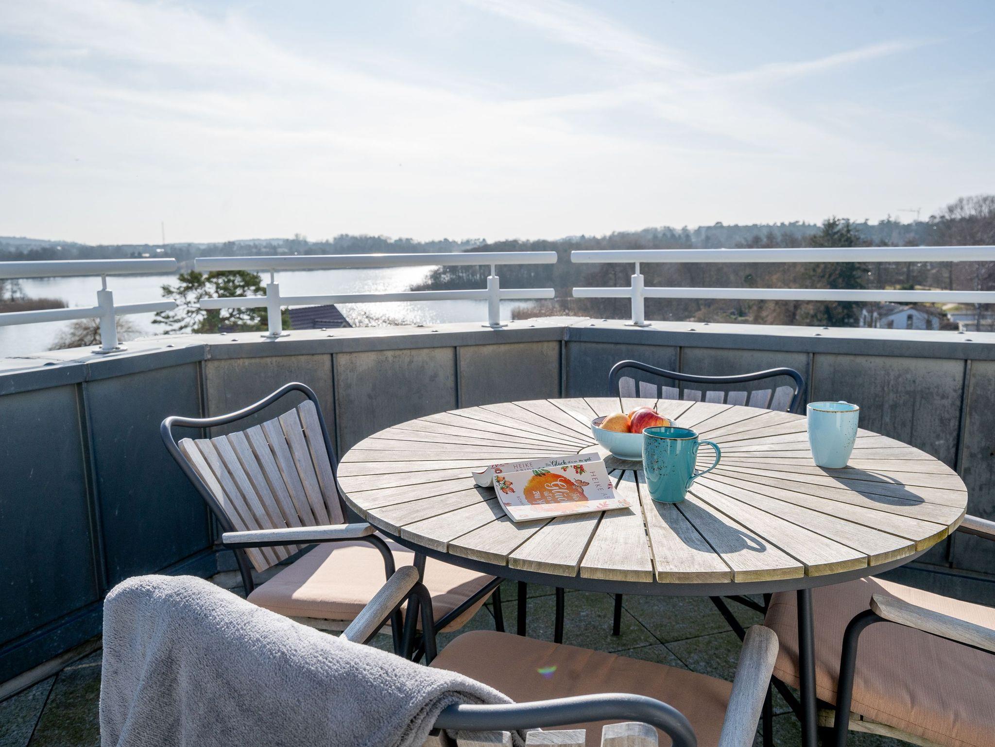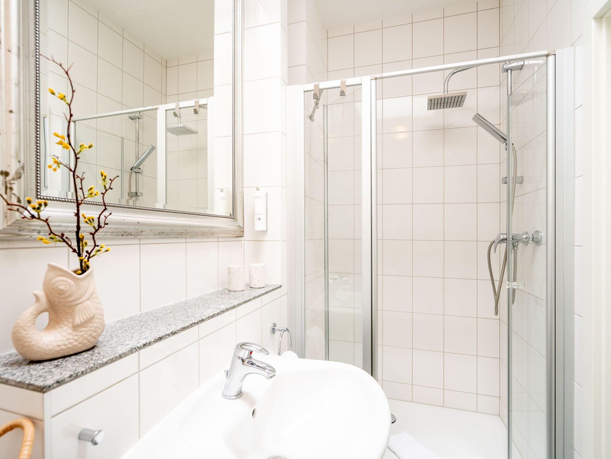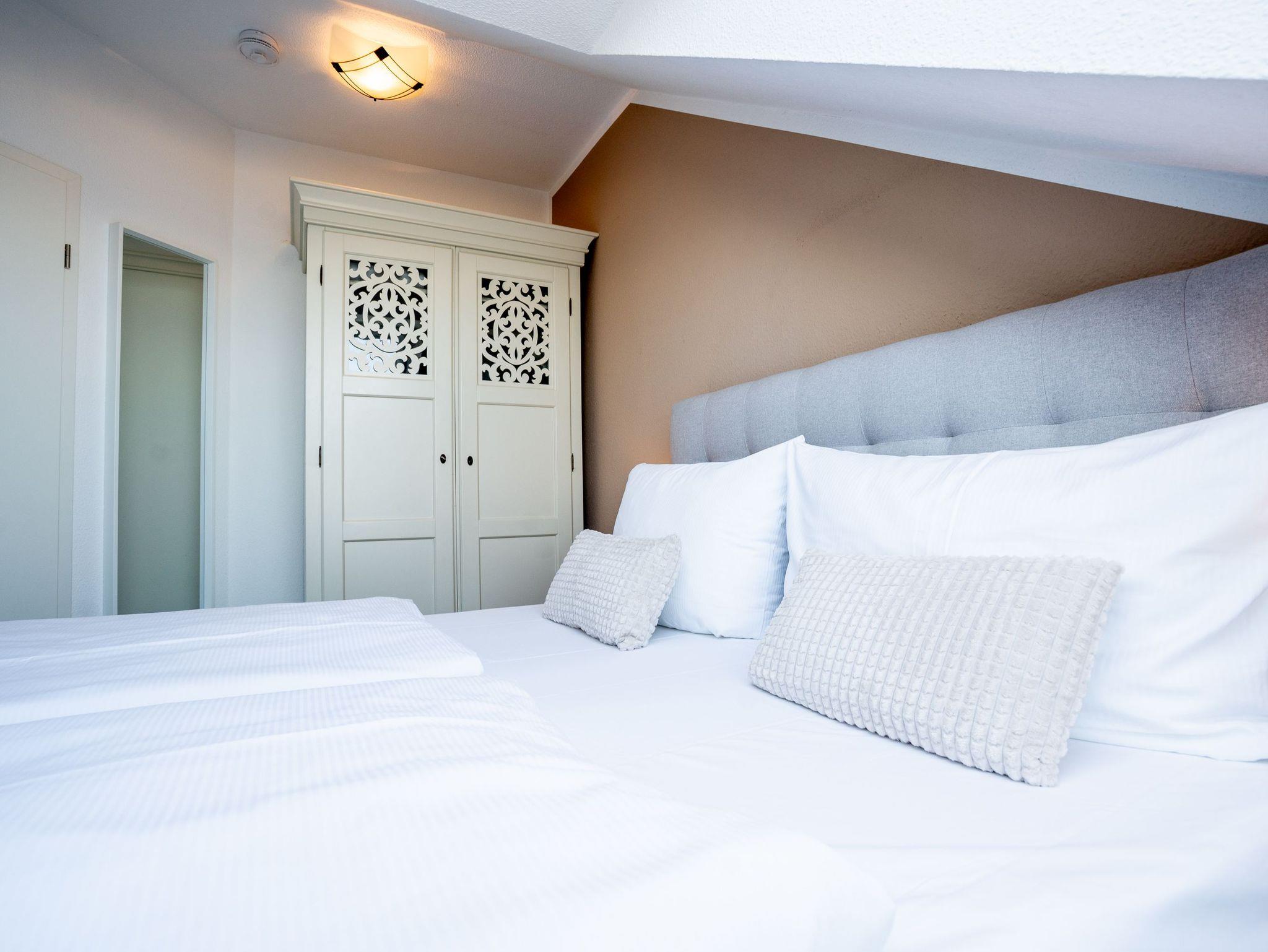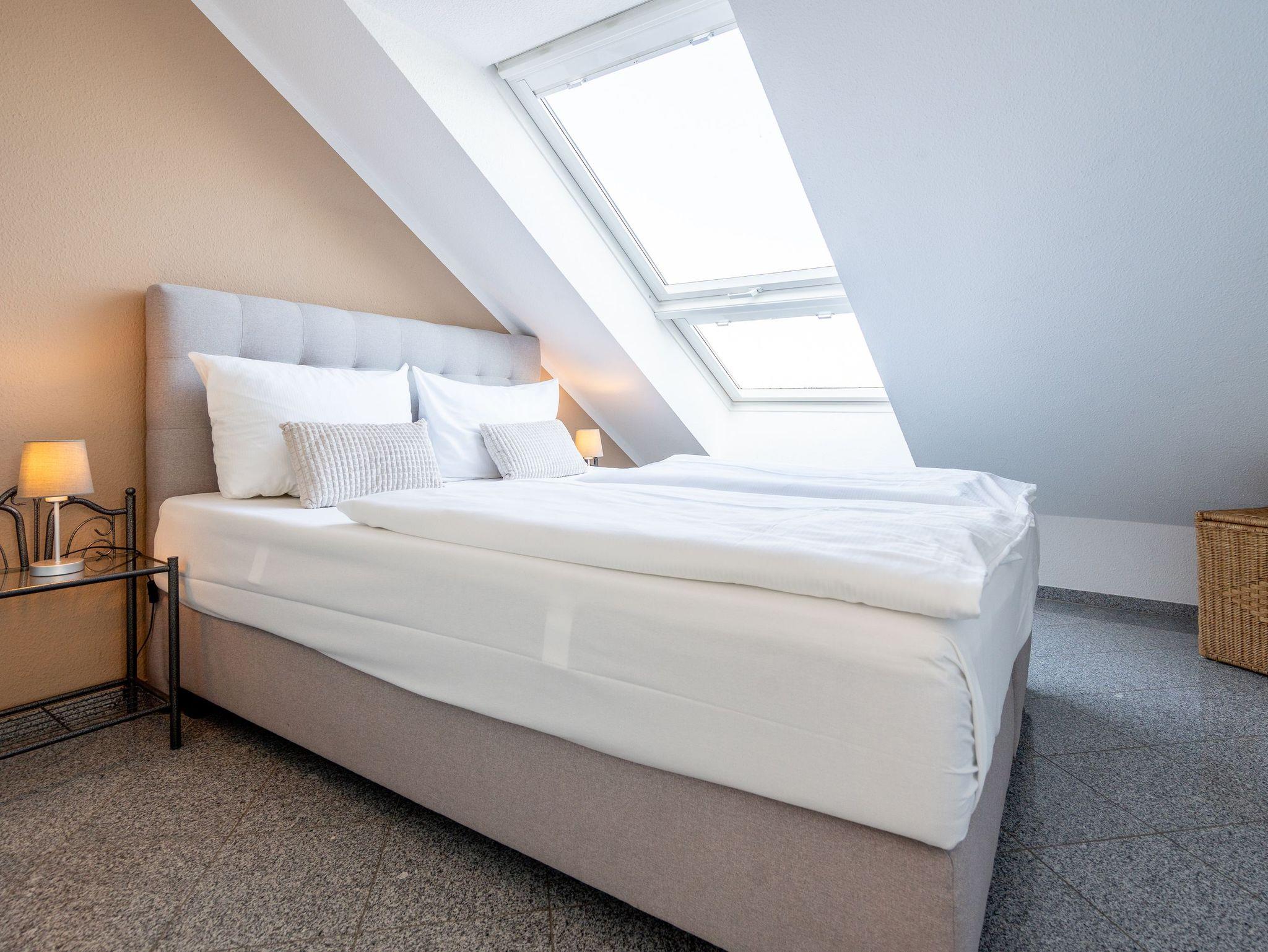Genießen Sie den einzigartigen Ausblick auf das Meer aus unserer stilvoll und modern eingerichteten 3-Raum-Ferienwohnung in der Dünenresidenz. Die 75 m² große Dachgeschosswohnung bietet höchsten Komfort und ist bequem mit dem Aufzug erreichbar. Zwei gemütliche Schlafzimmer mit Doppelbetten ( Boxspringbett 1,60m x 2,00m / Doppelbett 1,80m x 2,00m), ein modernes Duschbad sowie eine voll ausgestattete Küche lassen keine Wünsche offen. Der lichtdurchflutete Essbereich im Glasturm schafft eine besondere Atmosphäre ? hier speisen Sie mit direktem Blick auf die Wellen. Der großzügige Wohnbereich öffnet sich zu einem Balkon, von dem aus Sie den Blick auf den Schloonsee und auch das Rauschen des Meeres genießen können. Die Wohnung bietet Platz für bis zu 4 Personen sowie ein Kleinkind bis 3 Jahre im Kinderreisebett. Auf Wunsch stellen wir Ihnen gern ein Kinderreisebett (ohne zusätzliche Matratze [&] Bettzeug) sowie einen Kinderhochstuhl (gegen Aufpreis) zur Verfügung. Für Ihren PKW steht Ihnen ein fester Stellplatz in der Tiefgarage zur Verfügung. Erleben Sie Erholung pur mit grandiosem Meerblick ? ein erholsamer Aufenthalt erwartet Sie!