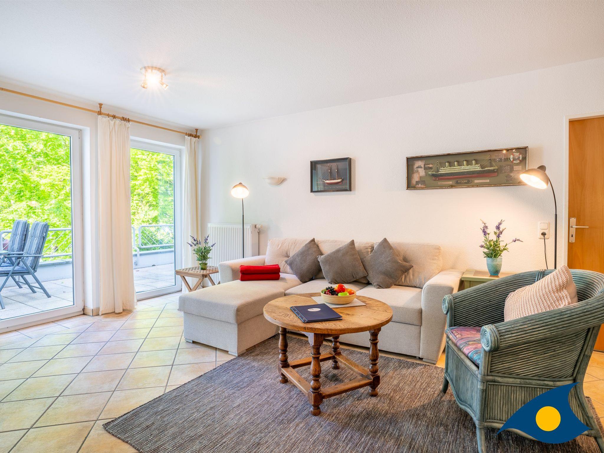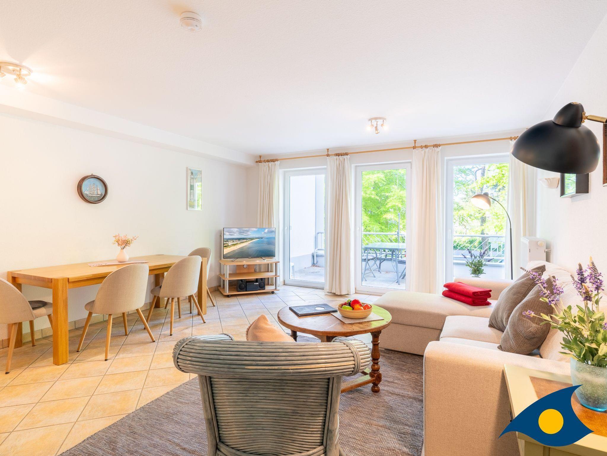 Dieses maritim eingerichtete Appartement empfängt Sie mit einem gemütlichen Wohnzimmer, einem Schlafzimmer mit einem bequemen Doppelbett, einem Badezimmer mit WC und Dusche und einer separaten Küche. Durch das Gäste-WC, dem großen Esstisch under der komfortablen Schlafcouch im Wohnbereich bietet diese schöne Ferienwohnung die besten Voraussetzungen für einen Urlaub mit der Familie oder Freunden (max. 4 Personen). Das Highlight der Wohnung ist der ca. 18 qm große Südbalkon. Durch die maritimen Details und den ausgewählten Einrichtungsgegenständen, werden Sie sich in dem Appartement 18 sehr schnell zu Hause fühlen.