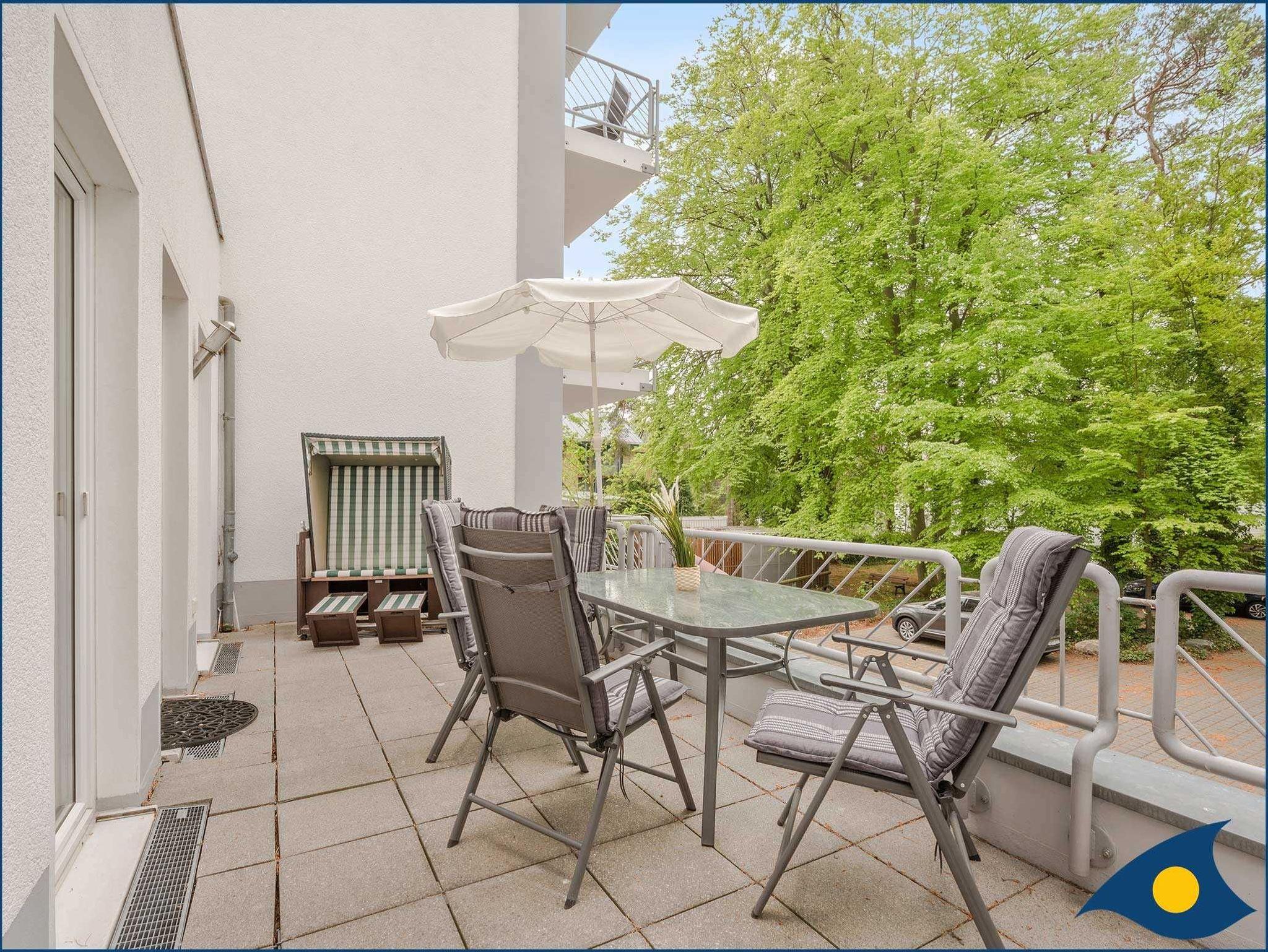 Sonne, Strand und Kieferbäume ? außergewöhnlich schönes Spiel von Licht und Schatten vor unserer Strandperle an der Bansiner Promenade