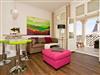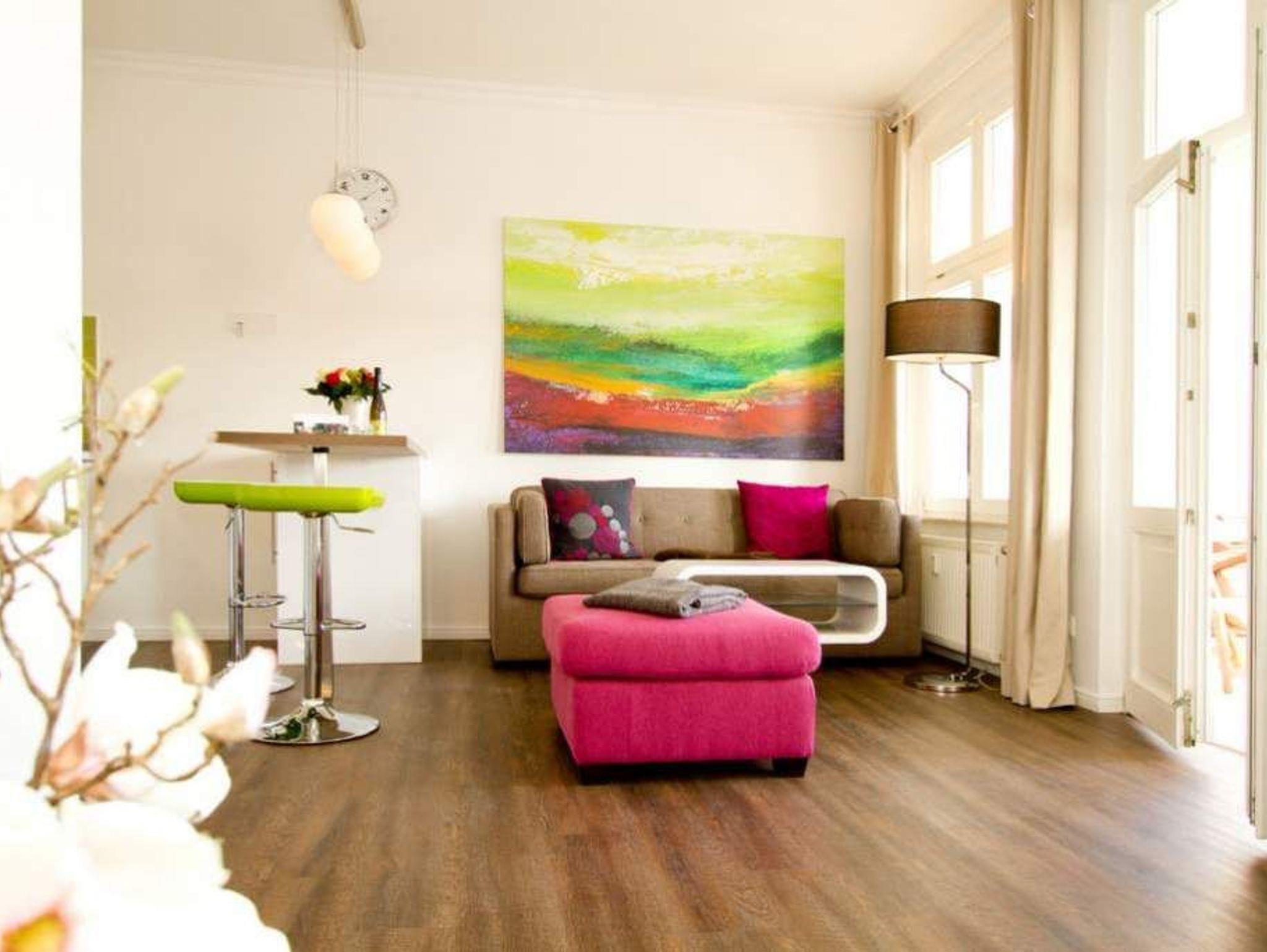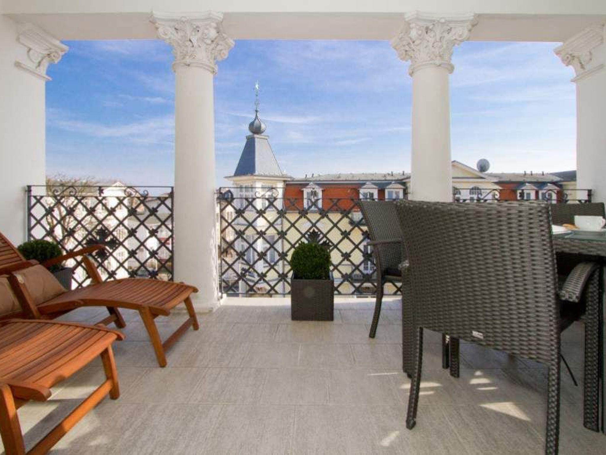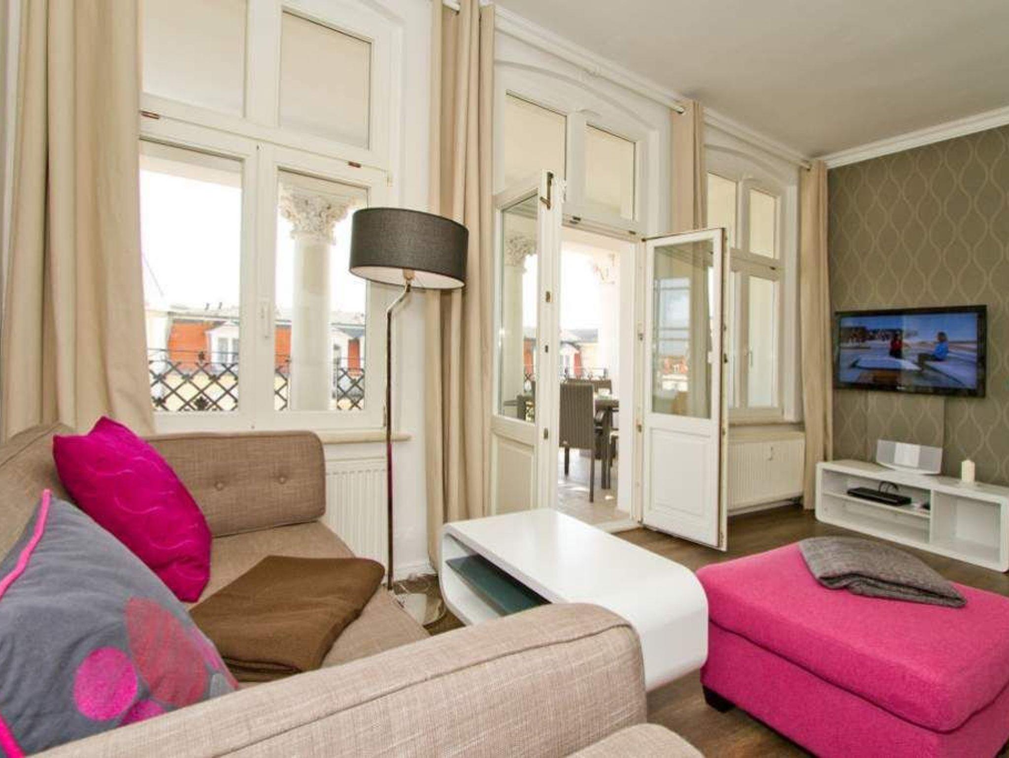 Im 2. Obergeschoss der Villa Anna erwartet Sie ein charmantes 2-Raum-Appartement (45 m²) für 2 Personen und ein Kleinkind bis 3 Jahre im Kinderreisebett. Zum Charme der alten Villa gesellt sich eine moderne Ausstattung, die ein stilvolles Urlaubsambiente schafft. Der gemütliche Wohnbereich mit Sofa und Flat-TV (DVD, iPod-Docking-Station) wird ergänzt durch die komplett ausgestattete Küchenzeile mit Tresen (Cerankochfeld, Mikrowelle mit Dampfgarer, Kühlschrank, Geschirrspüler). Im Schlafzimmer mit Doppelbett findet bei Bedarf auch ein Kinderreisebett Platz. Auf Wunsch stellen wir für unsere kleinen Gäste ein Kinderreisebett (ohne zusätzliche Matratze [&] Bettzeug) und einen Kinderhochstuhl (gegen Aufpreis) zur Verfügung. Für Ihren Komfort sind die Betten bei Anreise bezogen, und Handtücher liegen als Erstausstattung bereit. Ein kleines Duschbad komplettiert die Wohnung. Der geschützte Balkon mit Blick auf das Seebad wird sicher schnell zu Ihrem Lieblingsplatz.