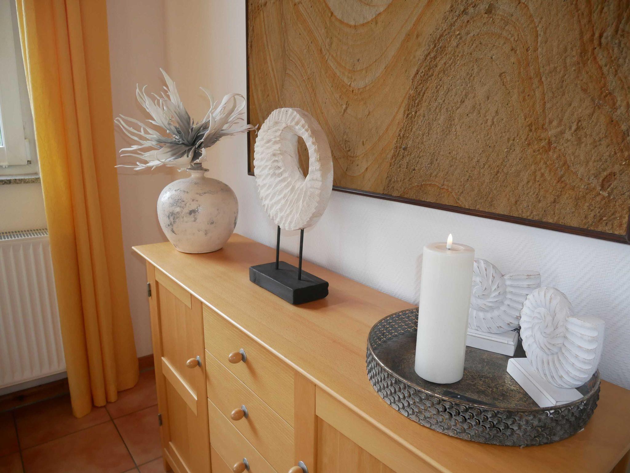 Der Kamin lädt zu gemütlichen Abenden im Spätherbst oder Winter ein. Bei Bedarf sorgt die Musikanlage oder der Fernseher mit DVD-Player für Unterhaltung. Eine Auswahl an Büchern und Gesellschaftsspielen ist ebenfalls vorhanden. Im Frühling und Sommer fühlen Sie sich auf der teilweise verglasten Südterrasse ganz wie zu Hause und genießen zum Frühstück die beim nahegelegenen Bäcker erhaltenen Brötchen. Wer mittags oder abends keine Lust hat, Essen zu gehen, bekocht sich selbst in der gut ausgestatteten Küche. Den späteren Abwasch nimmt Ihnen die eingebaute Spülmaschine ab schließlich sind Sie im Urlaub.