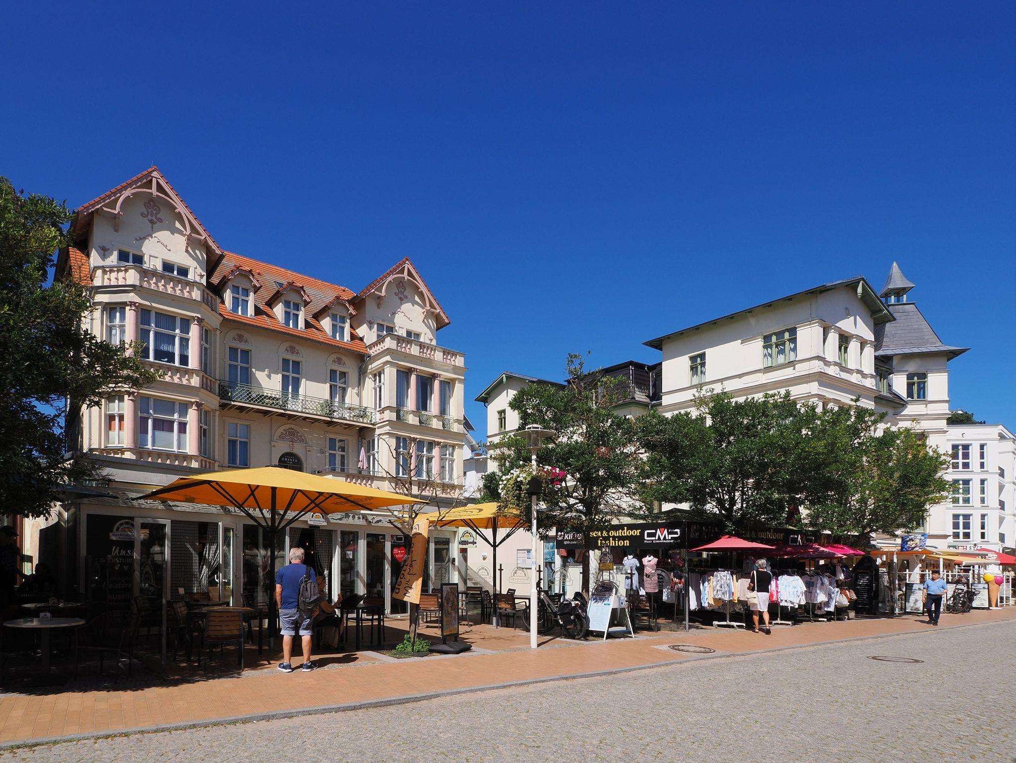 Umgeben von den eindrucksvollen Villen des Seeheilbades, liegt sie nur wenige Schritte vom Strand, der Promenade sowie vom lebhaften Ortskern mit seinen kleinen Geschäften und Restaurants entfernt.