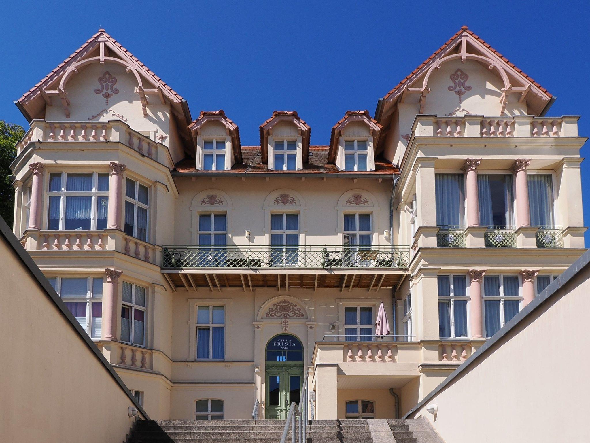 Mit stilvoller Zurückhaltung präsentiert sich die Villa Frisia im Zentrum des Seebades Bansin als ein exemplarisches Bauwerk der anmutigen Bäderarchitektur. 1910 errichtet, erfuhr die Villa nach fast einem Jahrhundert, im Jahr 2005, eine aufwendige und liebevolle Sanierung.