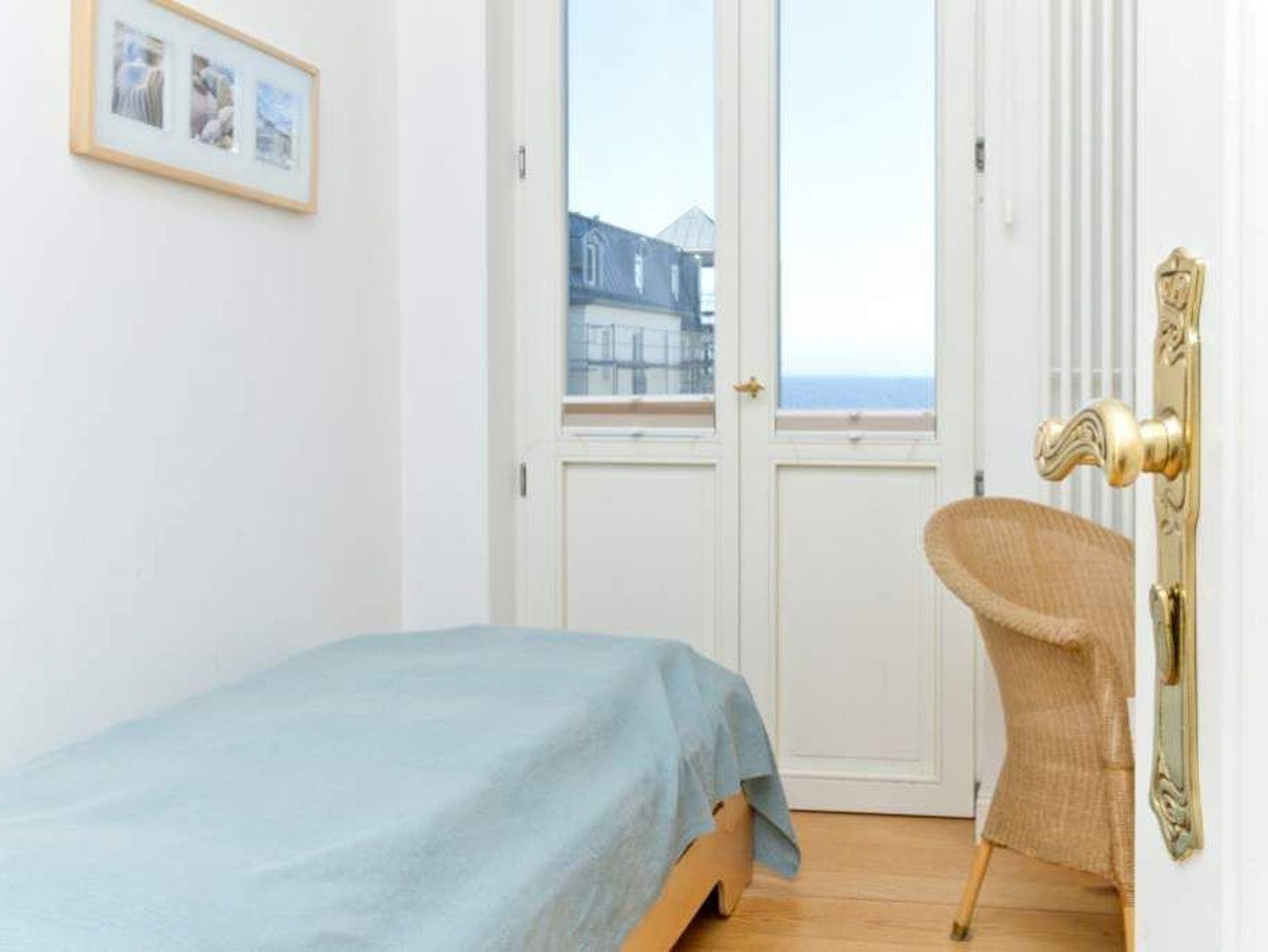 Die Seesuite Delphi im ersten Obergeschoß ist zur Ostsee gelegen und besonders für Familien mit Kindern geeignet. Für eine erholsame Nacht finden Sie hier ein Schlafzimmer mit Doppelbett und ein kleineres Schlafzimmer mit Einzelbett, beide Schlafzimmer gehen in einander über. Die separate Küche lädt zum Kochen, Essen oder auch einen gemeinsamen Spieleabend ein. Wer die Ruhe sucht, kann sich in die Loggia, den Wohnbereich der Suite, zurückziehen. Beginnen Sie den Tag in der Morgensonne, bei einem gemütlichen Frühstück auf Ihren Balkon. Ein DVD-Player kann Ihnen auf Anfrage zur Verfügung gestellt werden.
