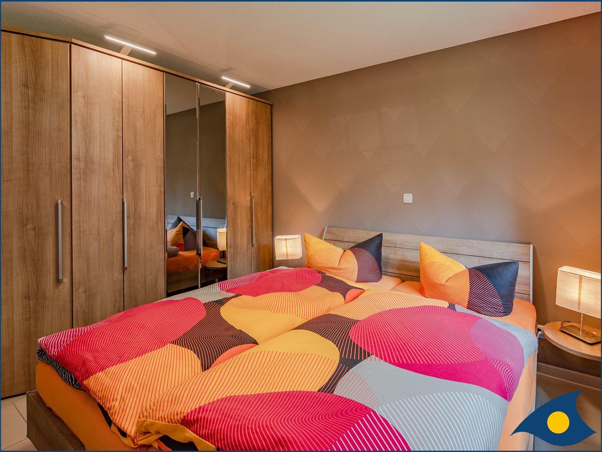 Das separate Schlafzimmer bietet ein Doppelbett, einen geräumigen Schrank für Ihre persönlichen Sachen und einen zweiten Fernseher. Das Badezimmer überzeugt mit einer ebenerdigen Dusche und einer Waschmaschine.