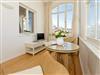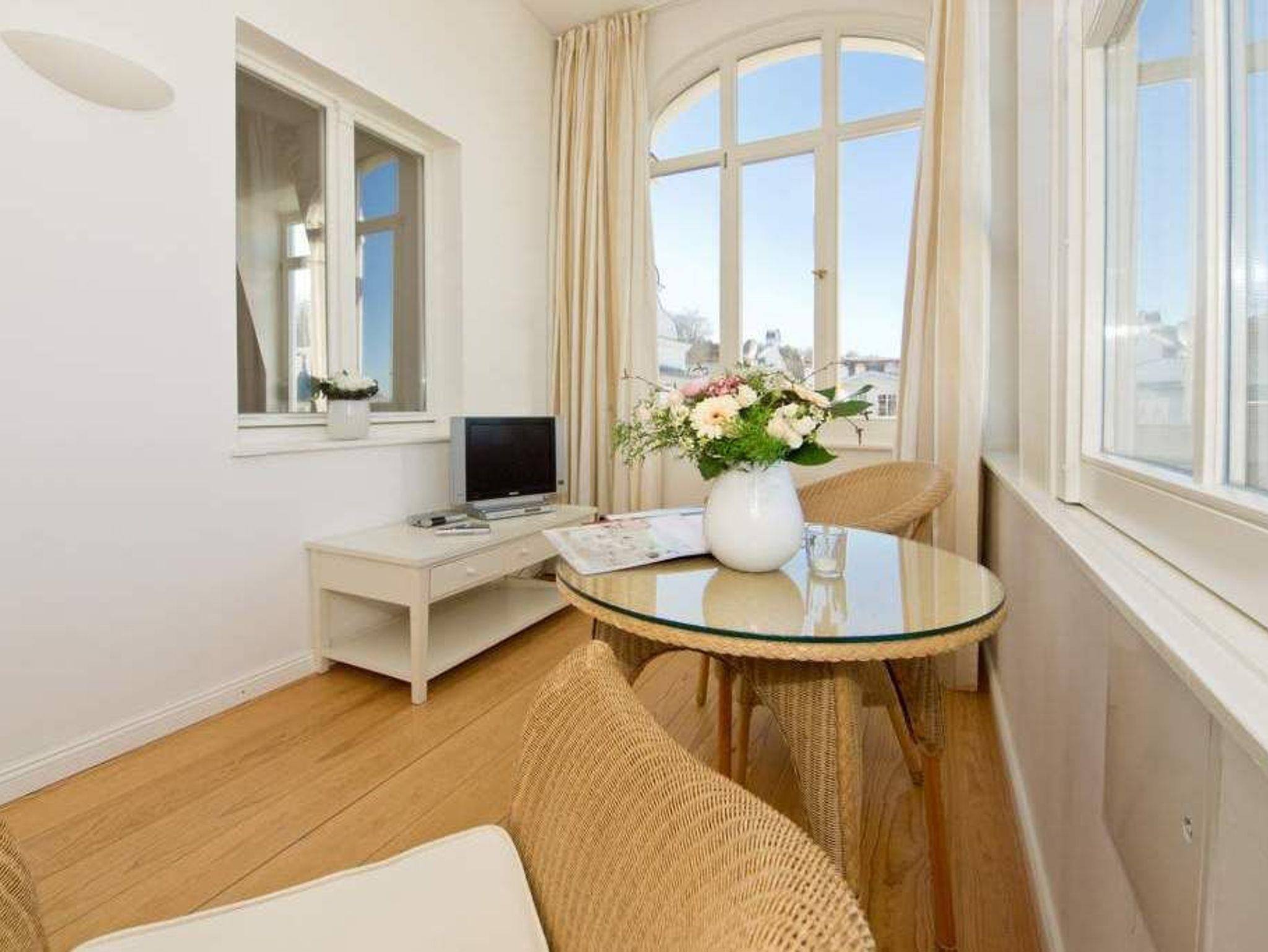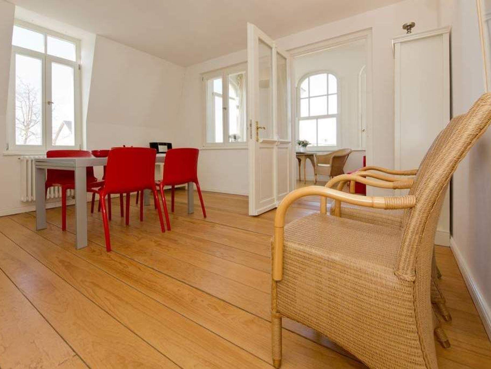 Die Ferienwohnung Athen ist eine Seesuite im zweiten Obergeschoß der Villa Artemis und ist zur Ostsee gelegen. Auch hier genießen Sie einen schönen Blick auf das Meer. Die Wohnung Athen hat zwei voneinander getrennte Schlafräume (1x Doppelbett, 1x getrennte Betten), die über den Wohnungsflur zu erreichen sind. Ideal für eine Familie mit Kindern. Die verglaste Veranda mit dem Wohnbereich schließt an den großzügigen Küchen- und Essbereich an. Vom Schlafzimmer aus erreichen Sie den Balkon, auch hier genießt man den Blick auf die Ostsee. Ein DVD-Player kann Ihnen auf Anfrage zur Verfügung gestellt werden.