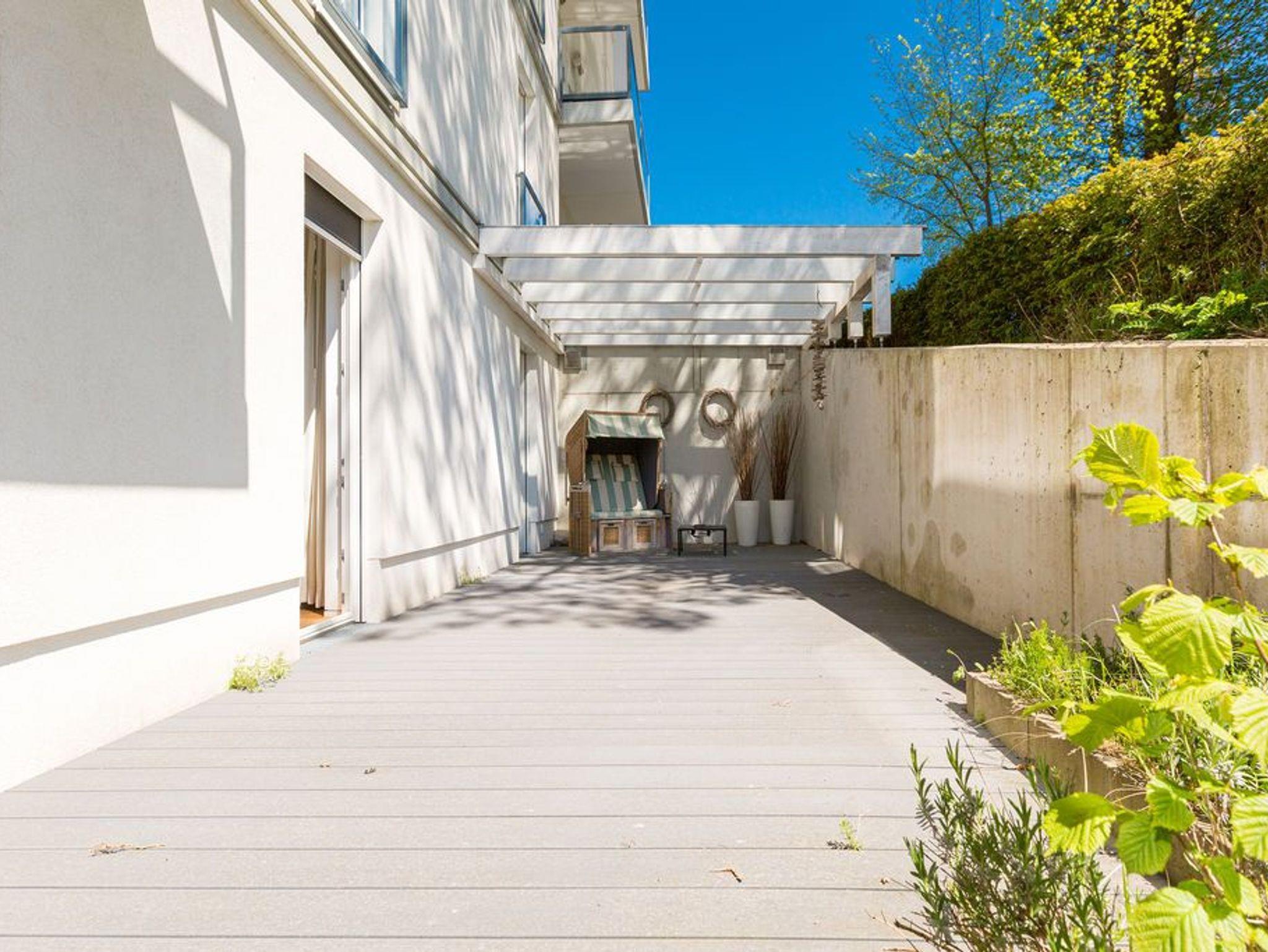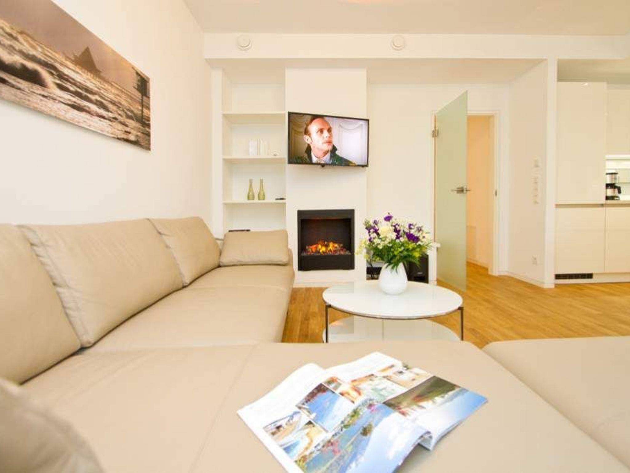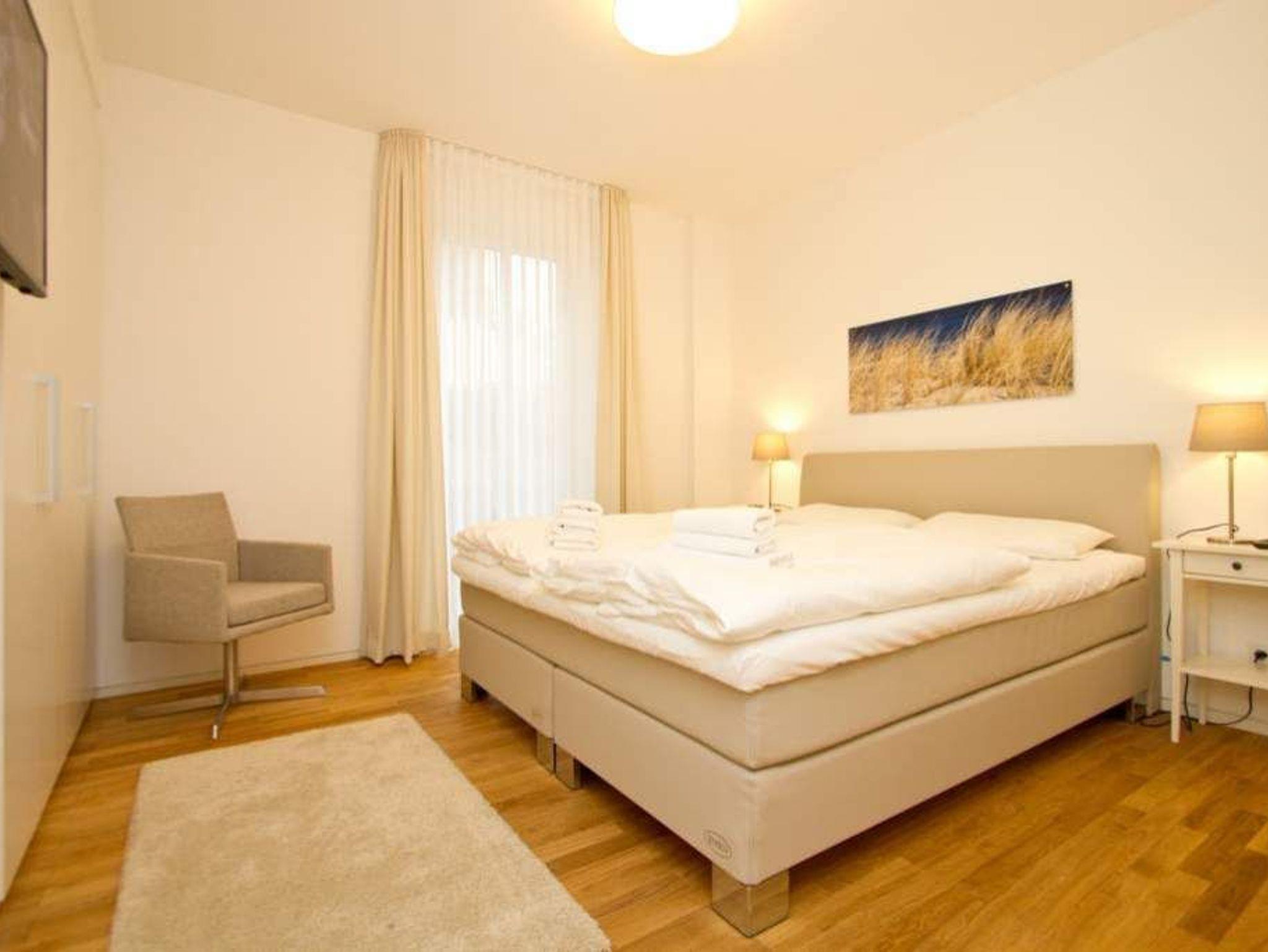 Sonnige Aussichten verspricht die Ferienwohnung 1 im Erdgeschoss des Ostseepalais. Geschützt hinter dem Dünenbereich erwartet Sie hier eine riesige Sonnenterrasse mit Strandkorb und ein großzügiges 4-Raum-Appartement (120qm) mit toller, moderner Einrichtung! Ausgestattet für 6 Erwachsene und 2 Kleinkinder (bis 3 Jahre im Kinderreisebett) finden Sie einen hellen Wohnbereich ausgestattet mit bequemer Ledercouch, Flat-TV und Elektrokamin. Die angrenzende, offene Küche ist mit allem Komfort ausgestattet und der große Esstisch lädt nicht nur zum ausgiebigen Frühstücken ein. Die 3 Schlafzimmer sind mit Doppelbetten und Einbauschränken mit viel Platz ausgestattet. Zwei Schlafzimmer führen auf die umlaufende Terrasse, ein Schlafzimmer ist innenliegend (wie auch die Bäder). Ein besonderes Highlight ist die wohnungseigene Sauna im großen Bad. Hier gibt es eine Badewanne und eine große Dusche. Ein zusätzliches Bad verfügt über eine Dusche. Für Ihren Komfort ist die Erstausstattung Wäsche inklusive. Auf Wunsch stellen wir ein Kinderreisebett und einen Kinderhochstuhl gegen einen Aufpreis zur Verfügung. Zwei Stellplätze befinden sich in der Tiefgarage. Das Wlan-Netz in der Wohnung ist kostenlos nutzbar-bitte fragen Sie an unserer Rezeption.