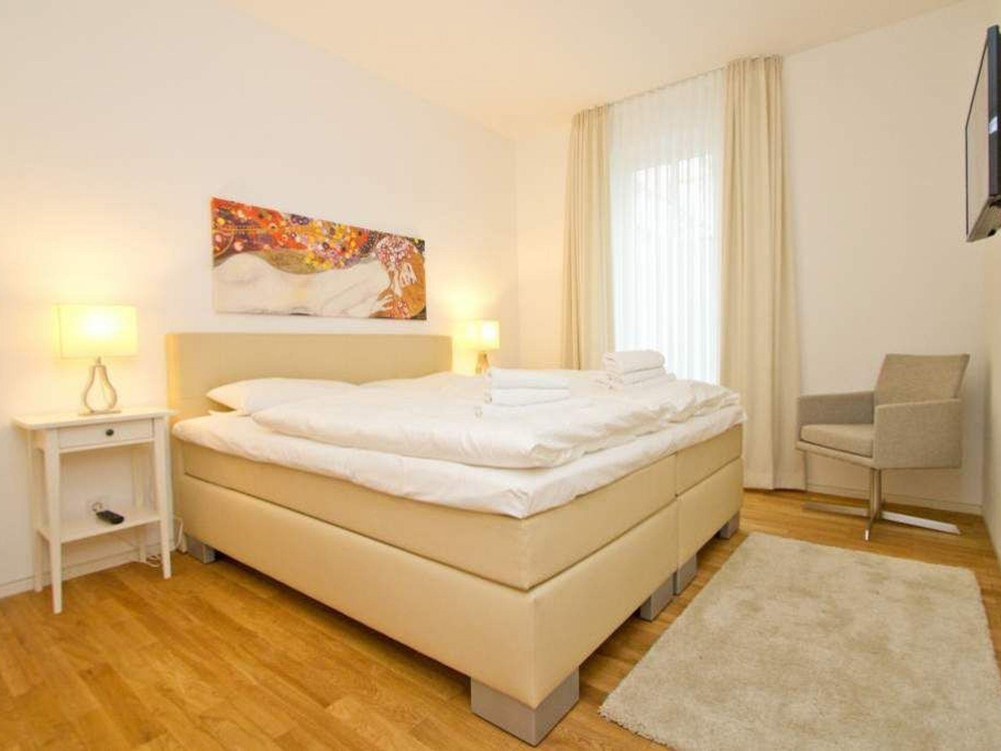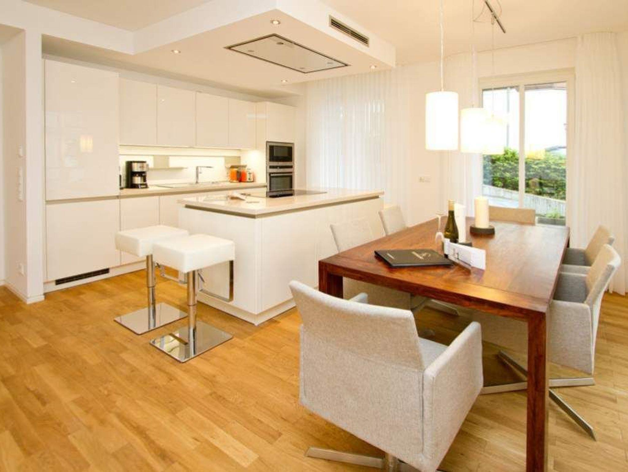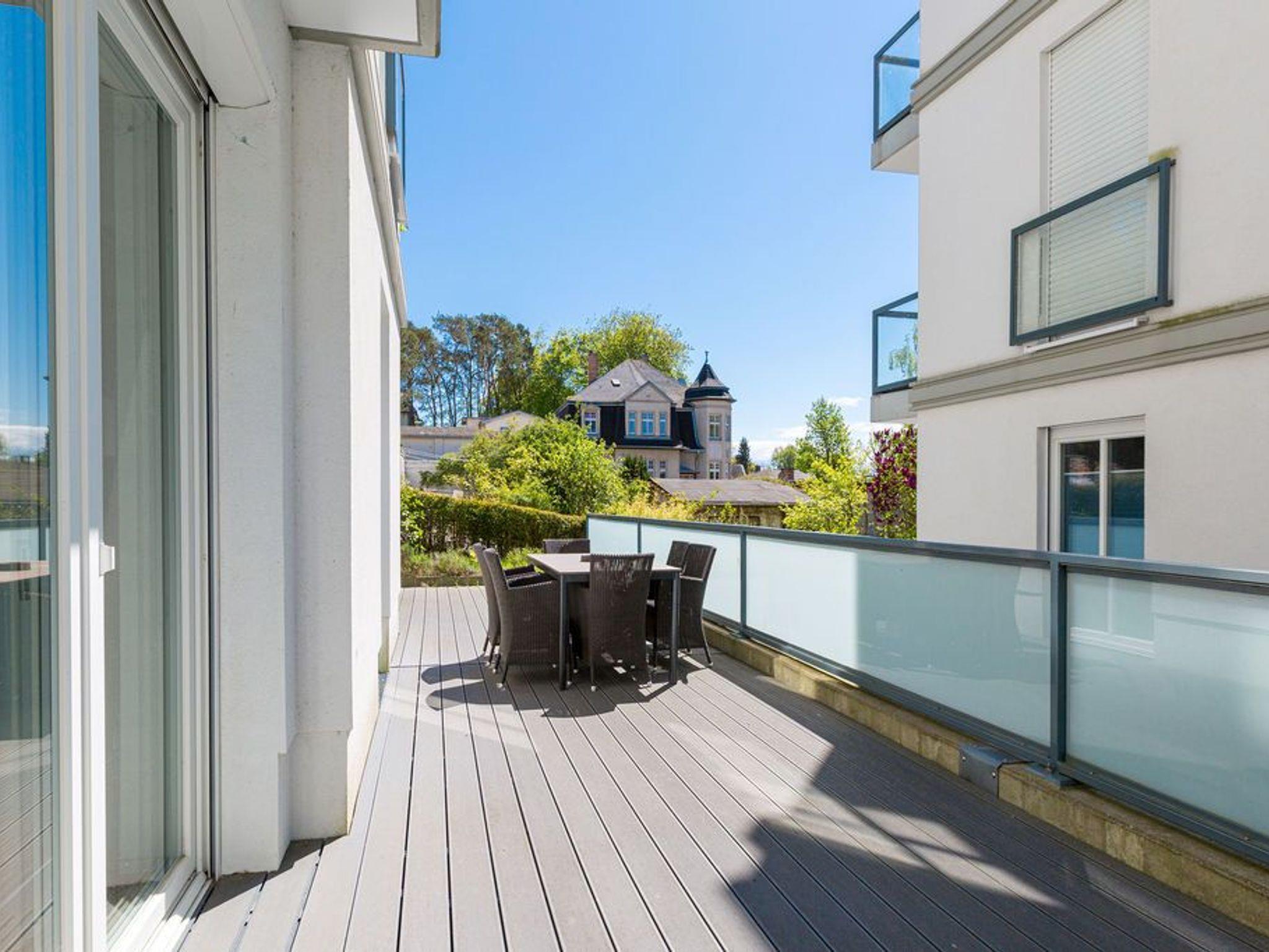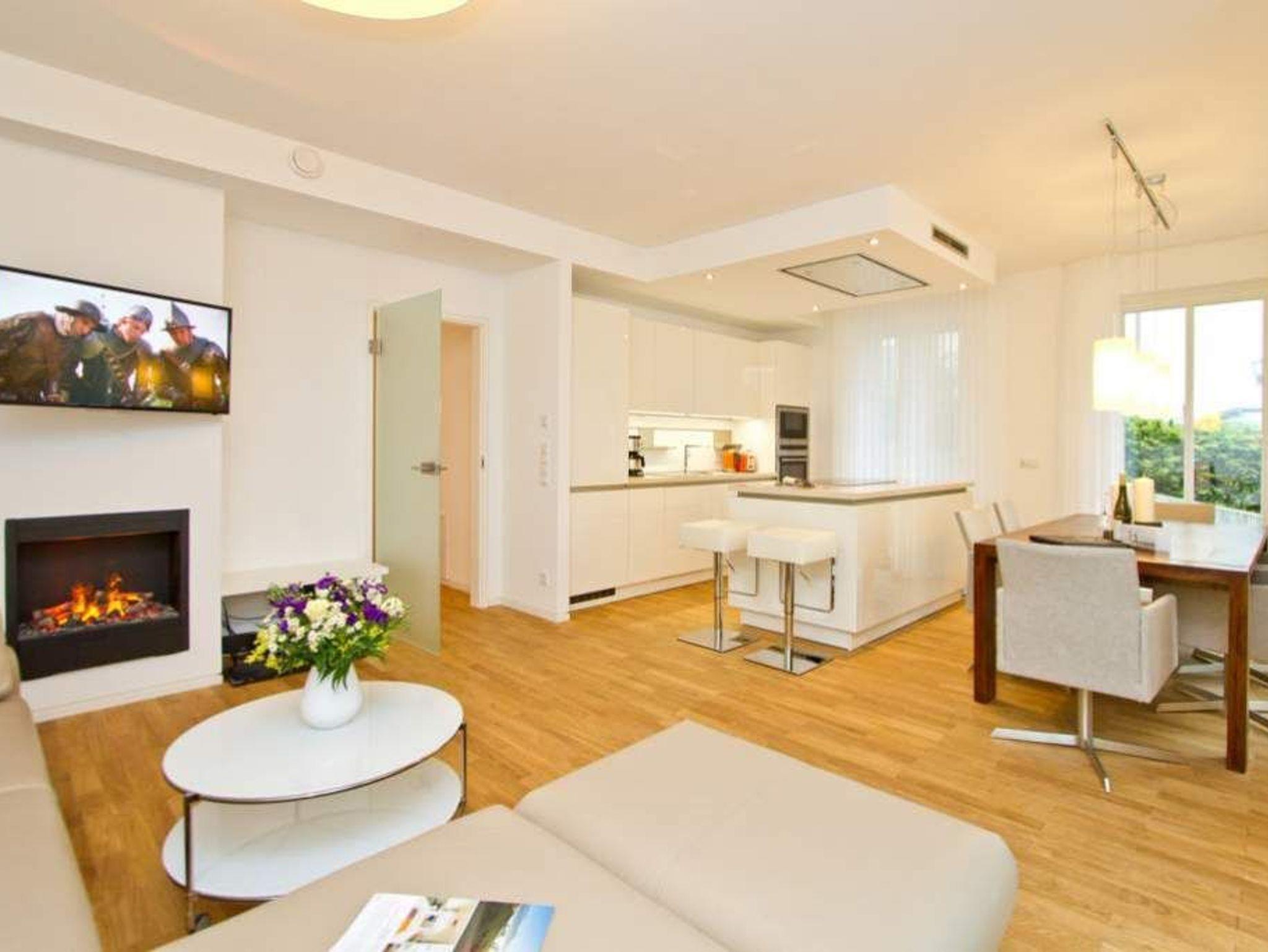 Sonnige Aussichten verspricht die Ferienwohnung 1 im Erdgeschoss des Ostseepalais. Geschützt hinter dem Dünenbereich erwartet Sie hier eine riesige Sonnenterrasse mit Strandkorb und ein großzügiges 4-Raum-Appartement (120qm) mit toller, moderner Einrichtung! Ausgestattet für 6 Erwachsene und 2 Kleinkinder (bis 3 Jahre im Kinderreisebett) finden Sie einen hellen Wohnbereich ausgestattet mit bequemer Ledercouch, Flat-TV und Elektrokamin. Die angrenzende, offene Küche ist mit allem Komfort ausgestattet und der große Esstisch lädt nicht nur zum ausgiebigen Frühstücken ein. Die 3 Schlafzimmer sind mit Doppelbetten und Einbauschränken mit viel Platz ausgestattet. Zwei Schlafzimmer führen auf die umlaufende Terrasse, ein Schlafzimmer ist innenliegend (wie auch die Bäder). Ein besonderes Highlight ist die wohnungseigene Sauna im großen Bad. Hier gibt es eine Badewanne und eine große Dusche. Ein zusätzliches Bad verfügt über eine Dusche. Für Ihren Komfort ist die Erstausstattung Wäsche inklusive. Auf Wunsch stellen wir ein Kinderreisebett und einen Kinderhochstuhl gegen einen Aufpreis zur Verfügung. Zwei Stellplätze befinden sich in der Tiefgarage. Das Wlan-Netz in der Wohnung ist kostenlos nutzbar-bitte fragen Sie an unserer Rezeption.
