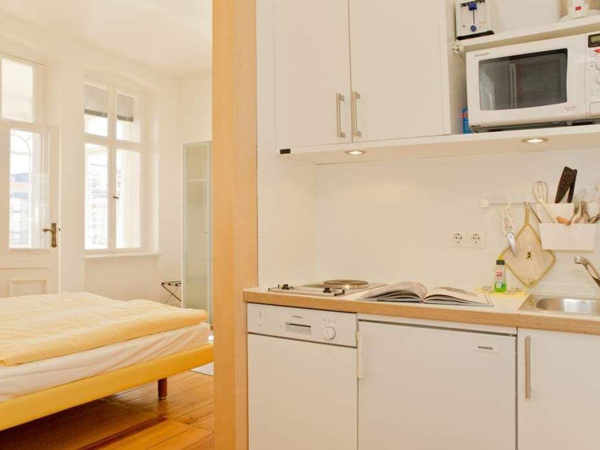 Durch fünf Fenster erhellt das klare Licht des Nordens diese Räume. Die Ostsee ist von fast jedem Platz in der Wohnung zu sehen, am schönsten jedoch ohne Frage von der Veranda aus, denn hier kann man es sich so richtig gemütlich machen. Vom Teetisch oder auch vom Sofa lässt es sich hier herrlich versonnen auf das Meer blicken. Im Schlaf- und Wohnzimmer gibt es einen Schreibtisch mit Arbeitslampe und ein geräumiges Doppelbett. Die kleine Küchenzeile komplettiert das Appartement. Die Wohnungen Köln, Düsseldorf [&] Lüneburg verfügen zusätzlich über einen Safe. Ein DVD-Player kann Ihnen auf Anfrage zur Verfügung gestellt werden.