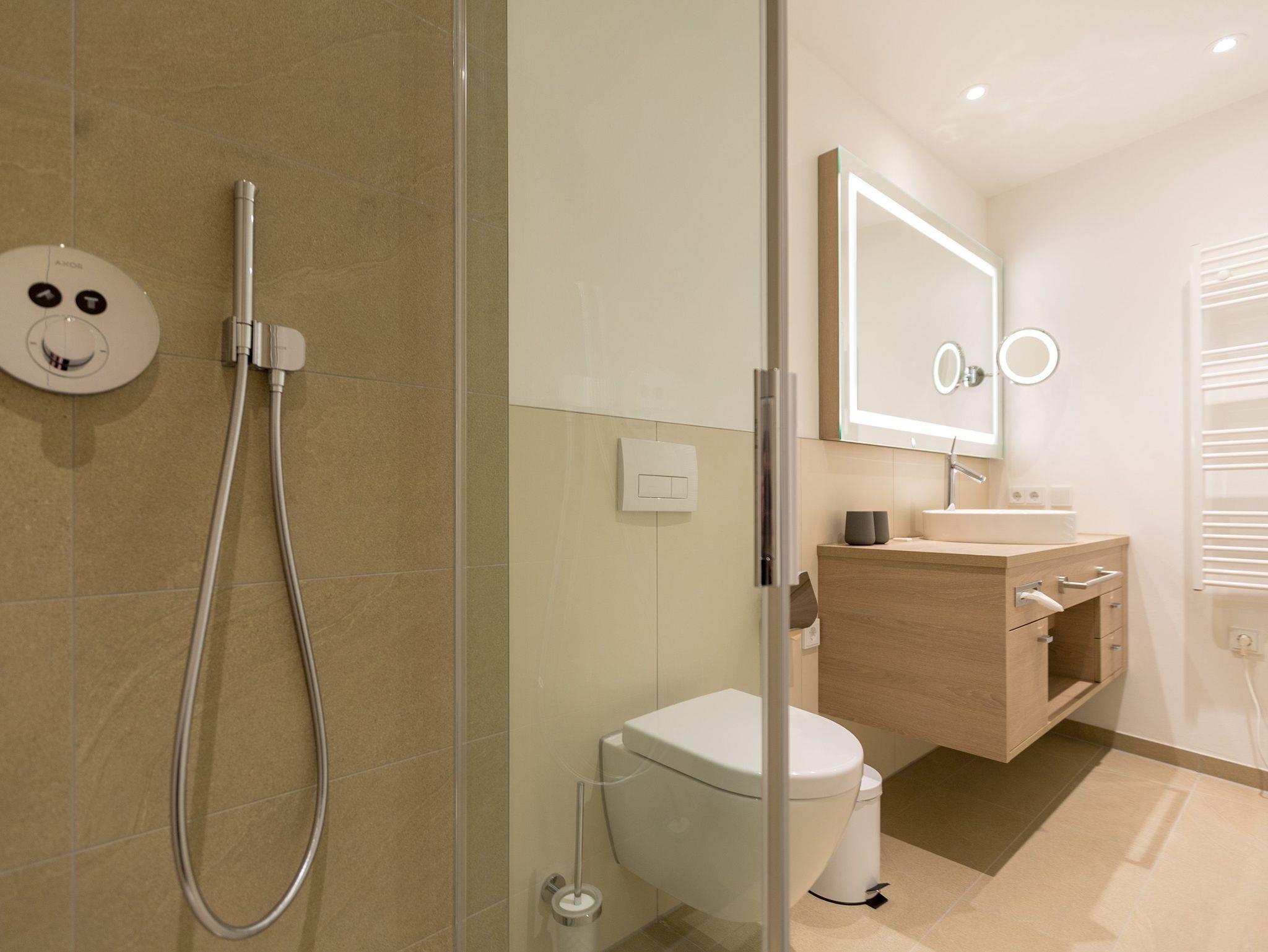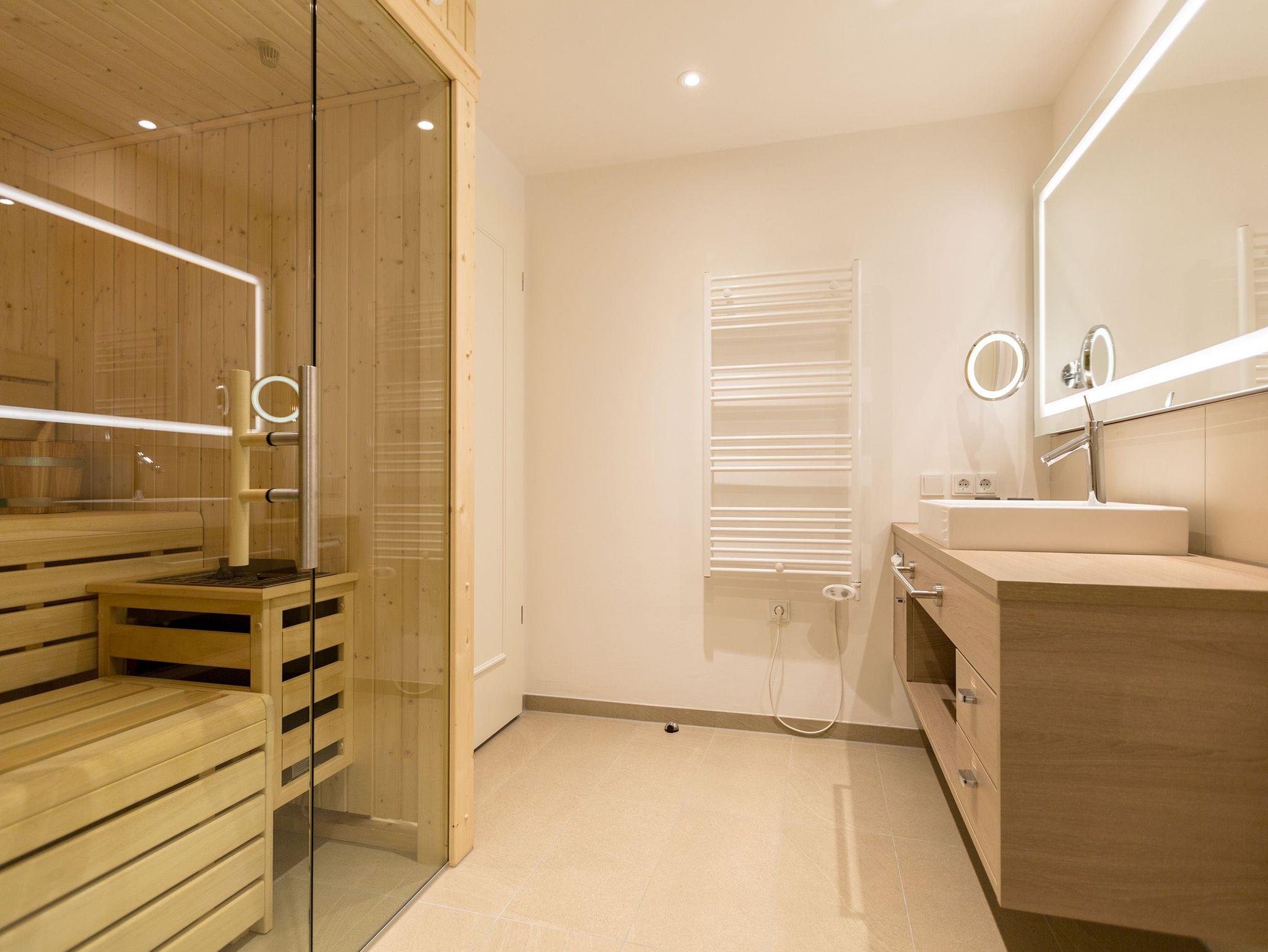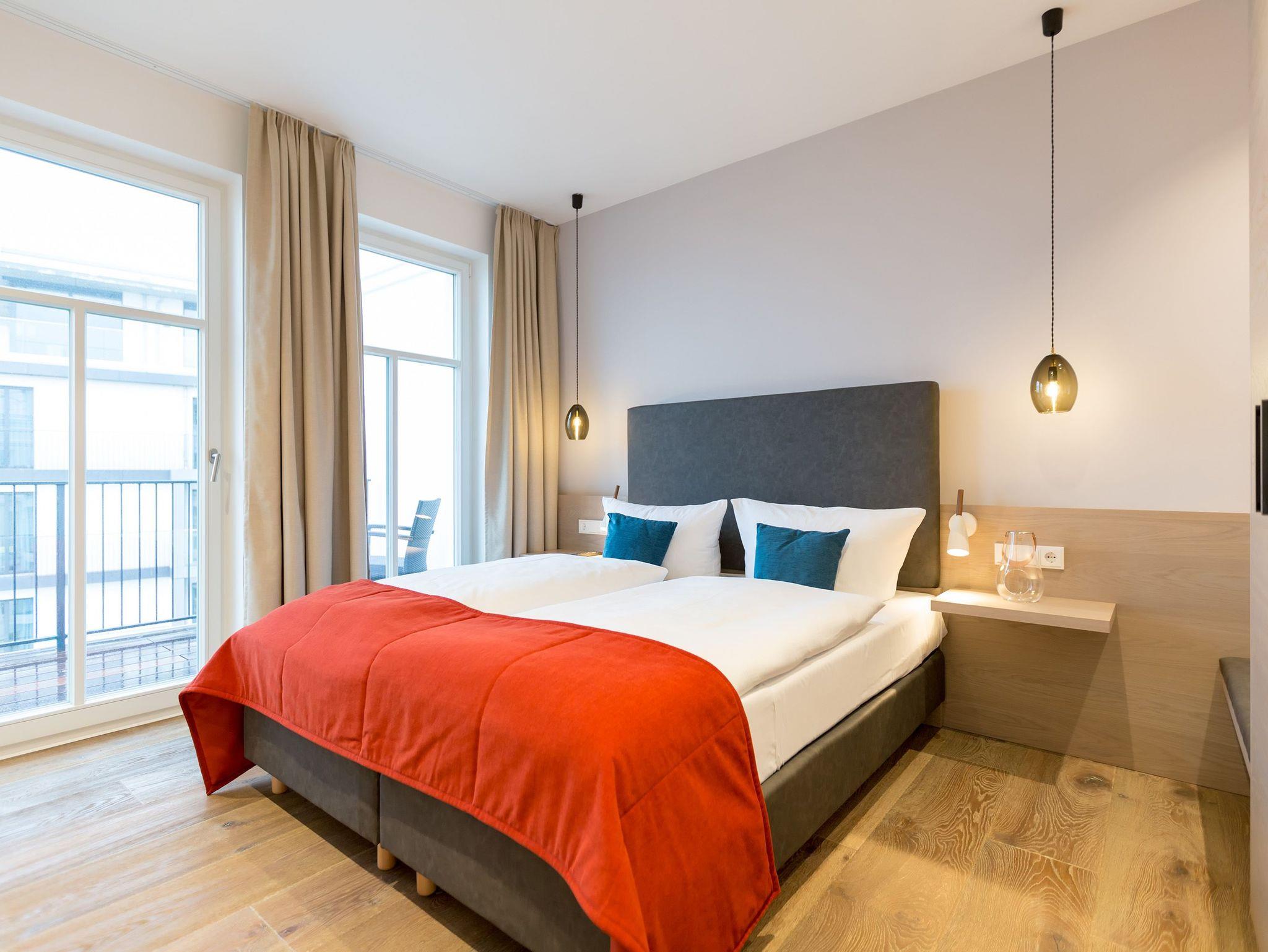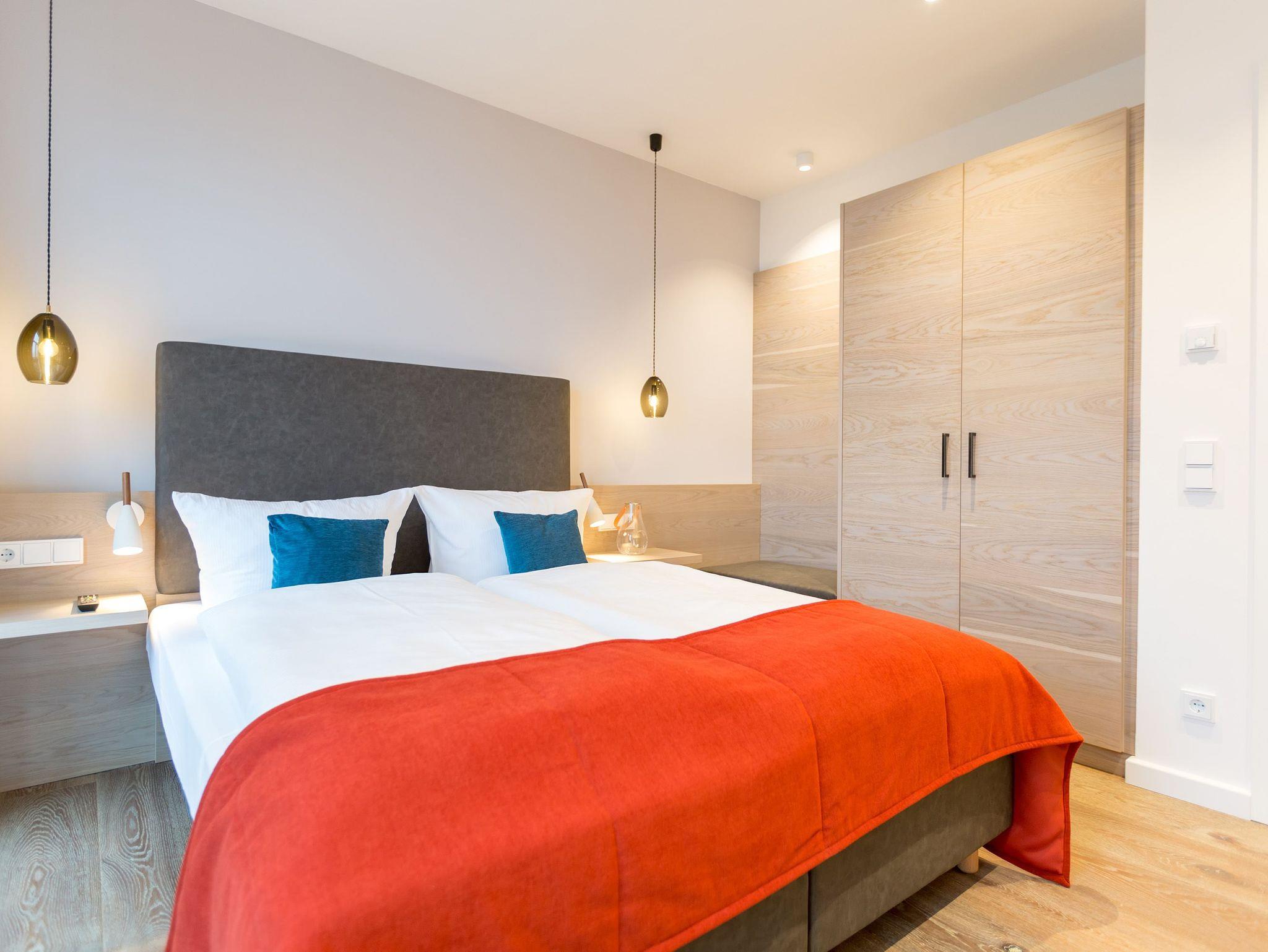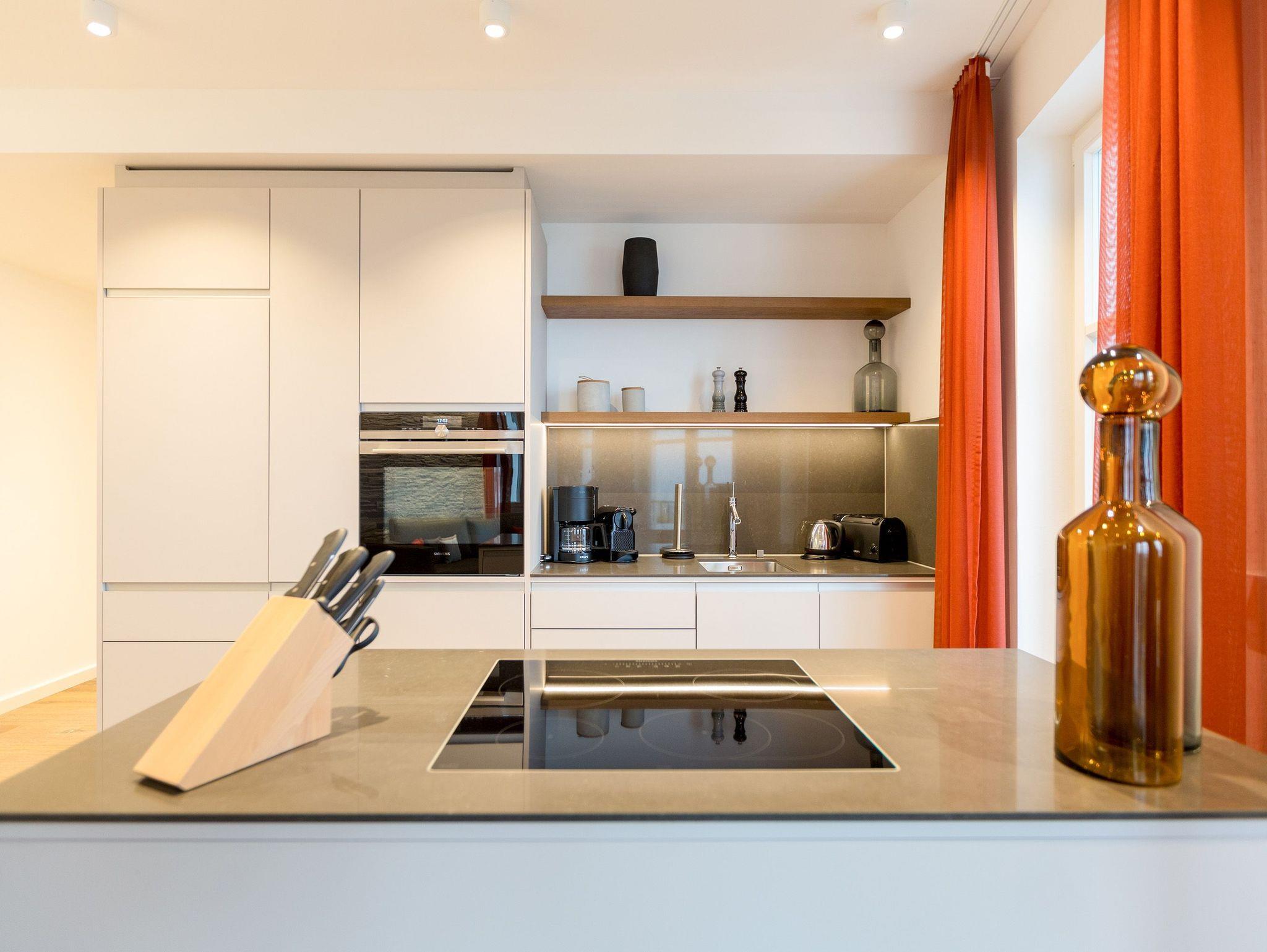 Von hier oben aus dem dritten Stock haben Sie das Meer voll im Blick. Im Panorama-Blick. Näher dran am Meeresrauschen geht nicht. Zum Wohlfühlen, Aufatmen, Auftanken sind die 74 Quadratmeter dieses Urlaubstraums ideal. Drei stilvoll und elegant eingerichtete Zimmer und modernes Interieur-Design erwarten Sie und bis zu drei Mitgenießer und ein Kleinkind bis drei Jahre (im Kinderreisebett). Das Wohnzimmer und zwei Balkone geben den Blick auf das grenzenlose Blau frei. Genießen Sie schon morgens, direkt nach dem Aufwachen die glitzernde Morgensonne auf den schaumgekrönten Wellen. Beide Schlafzimmer haben nicht nur wunderbar bequeme Boxspringdoppelbetten (einmal 1,80 m x 2,00 m [&] und einmal 1,60 m x 2,00 m), sie haben auch Zugang zu jeweils einem der beiden Balkone (6 und 8 Quadratmeter groß). So beginnt schon der erste Urlaubsmoment des Tages mit Ostseeweite. Ein helles und geräumiges Wohn-Ess-Zimmer lädt zum Relaxen auf der Couch, zum gemeinsamen Essen am wunderschönen Esstisch, zum Flammenspielschauen im Kamin oder zum gemeinsamen Kochen in der offenen Küche ein. Die hat es übrigens in sich. Die freie Kochinsel wird zum geselligen Urlaubszentrum. Hochwertige Markengeräte erleichtern das Kochen. Edles Geschirr macht das anschließende Essen zum wahren Genuss auch für die Augen. Ein großer Flat-TV und eine Bose-Hi-Fi-Anlage mit Bluetooth sorgen für die richtige Unterhaltung. Auch in den beiden Schlafzimmern gibt es jeweils einen Flat-TV. Das Appartement verfügt über zwei Bäder. Modernes Design zeichnet auch hier die Ausstattung aus. Eine große Regendusche macht das Duschen zum Highlight. Ein großer Waschtisch mit hinterleuchtetem Spiegel und ein WC gehören ebenfalls zur Einrichtung eines jeden Bades. Wahrer Wellness-Luxus wartet auf Sie im Masterbad: Eine Finnische Sauna hilft Ihnen an kühlen Tagen dabei, sich rundum kuschelig warm zu fühlen. Entspannung kommt in diesem Urlaubsdomizil dann ganz von allein. In einem kleinen Hauswirtschaftsraum steht ein Wasch-Trockner zu Ihrer Verfügung. Kommen Sie also an und lassen Sie sich einfach fallen. Die Betten sind bezogen und Handtücher liegen für Sie bereit. Das WLAN ist kostenfrei. Und in der Tiefgarage ist für Sie der Stellplatz Nr. 20 reserviert.