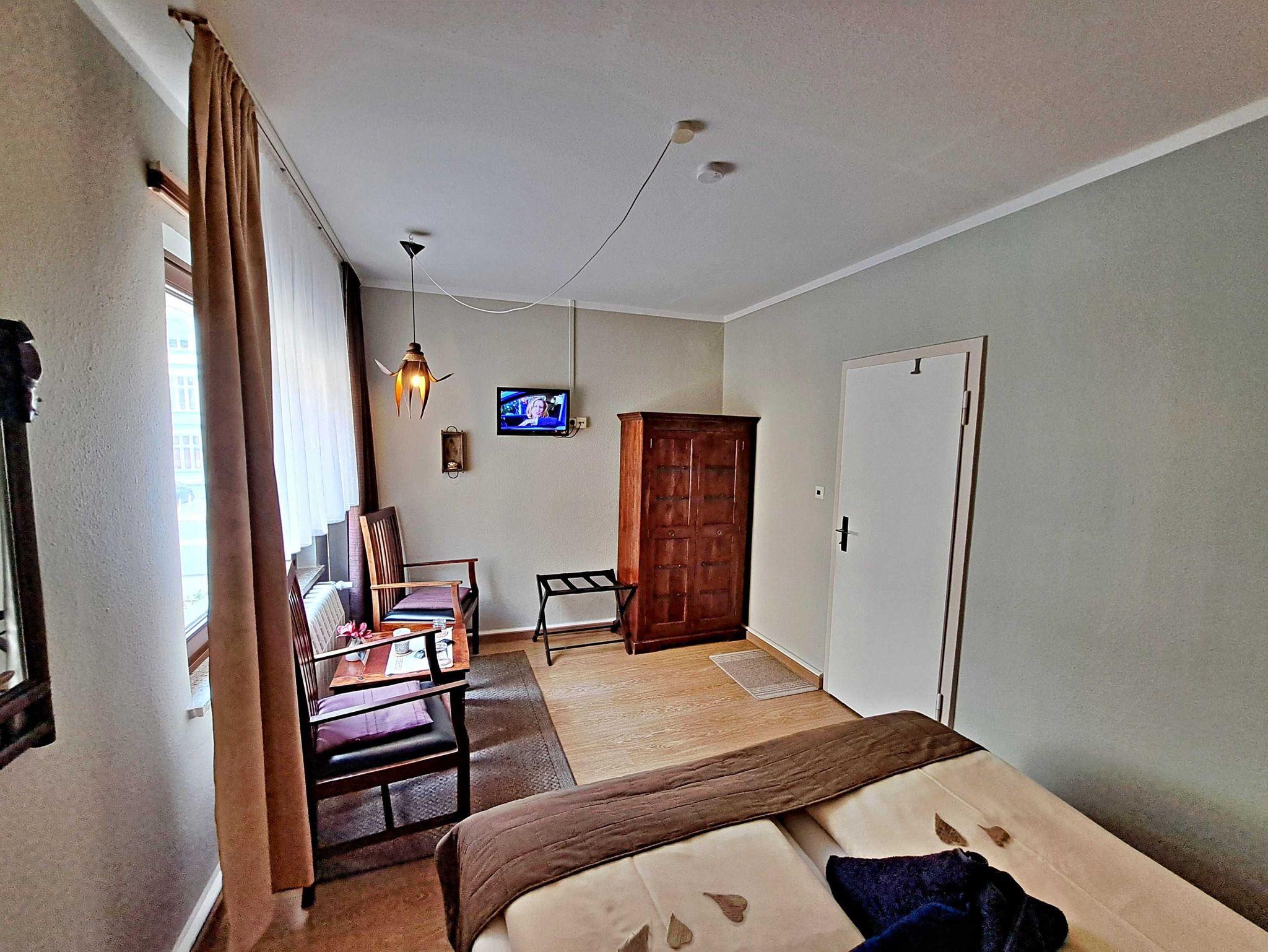 Herzlich willkommen in unserem liebevoll eingerichteten Doppelzimmer im ersten Obergeschoss der Pension. Hier erwartet Sie eine gemütliche Atmosphäre, die durch die warmen Akazienholzmöbel ein leicht afrikanisches Urlaubsgefühl vermittelt. Das Zimmer ist mit einem komfortablen Doppelbett, einladenden Sitzgelegenheiten, einem TV sowie einem modernen Bad mit Dusche/WC und Fön ausgestattet. Für Ihren Aufenthalt steht Ihnen unser kostenloses W-LAN zur Verfügung, damit Sie jederzeit online bleiben können. Ihr Auto findet direkt am Haus einen sicheren Parkplatz.