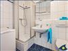 Das Schlafzimmer mit dem großen Holzbett sorgt für erholsamen Schlaf und bietet genügend Platz für Ihre Urlaubsgarderobe. Das Badezimmer ist mit einem WC, dem Handwaschbecken und einer Dusche ausgestattet.
