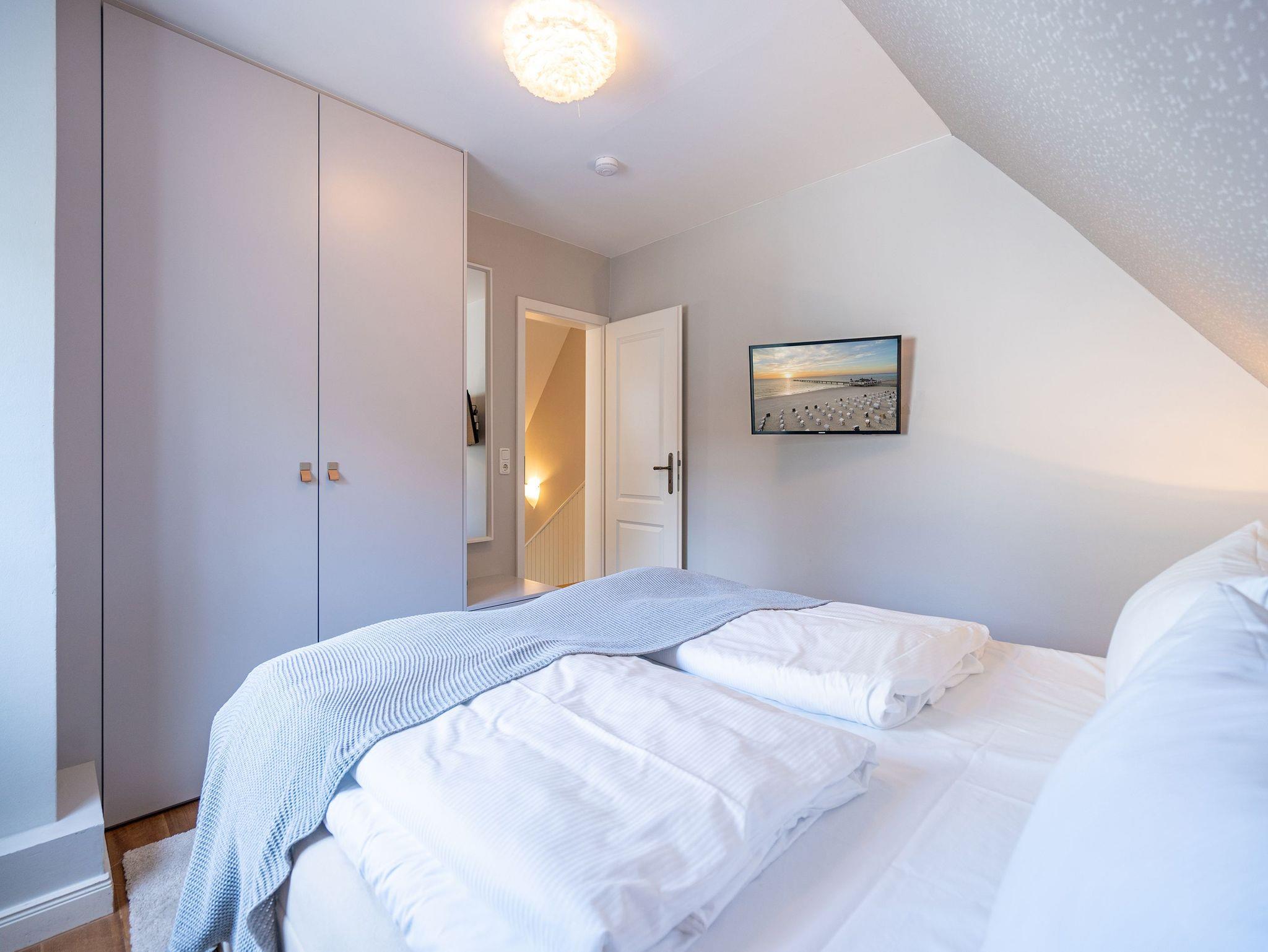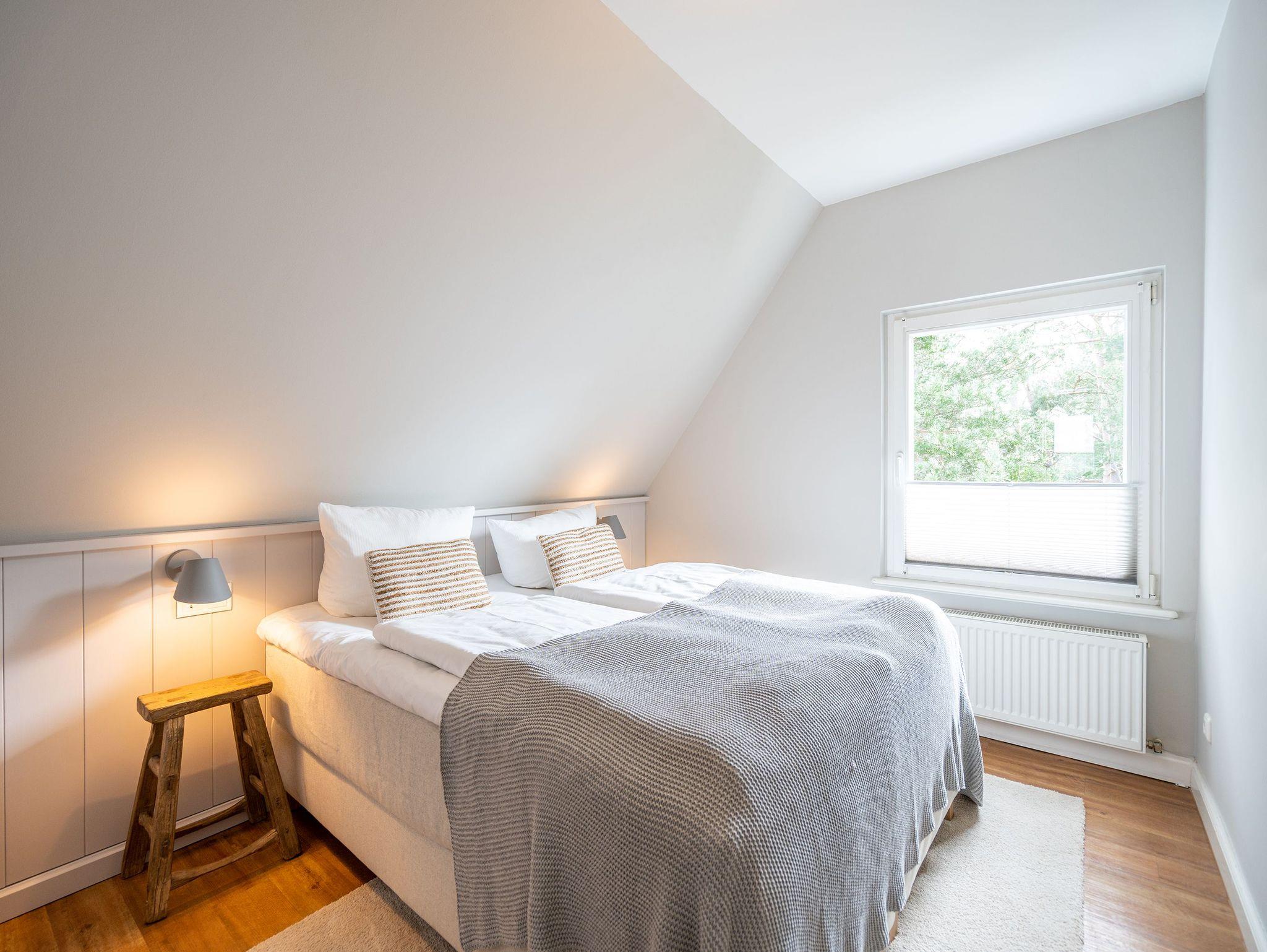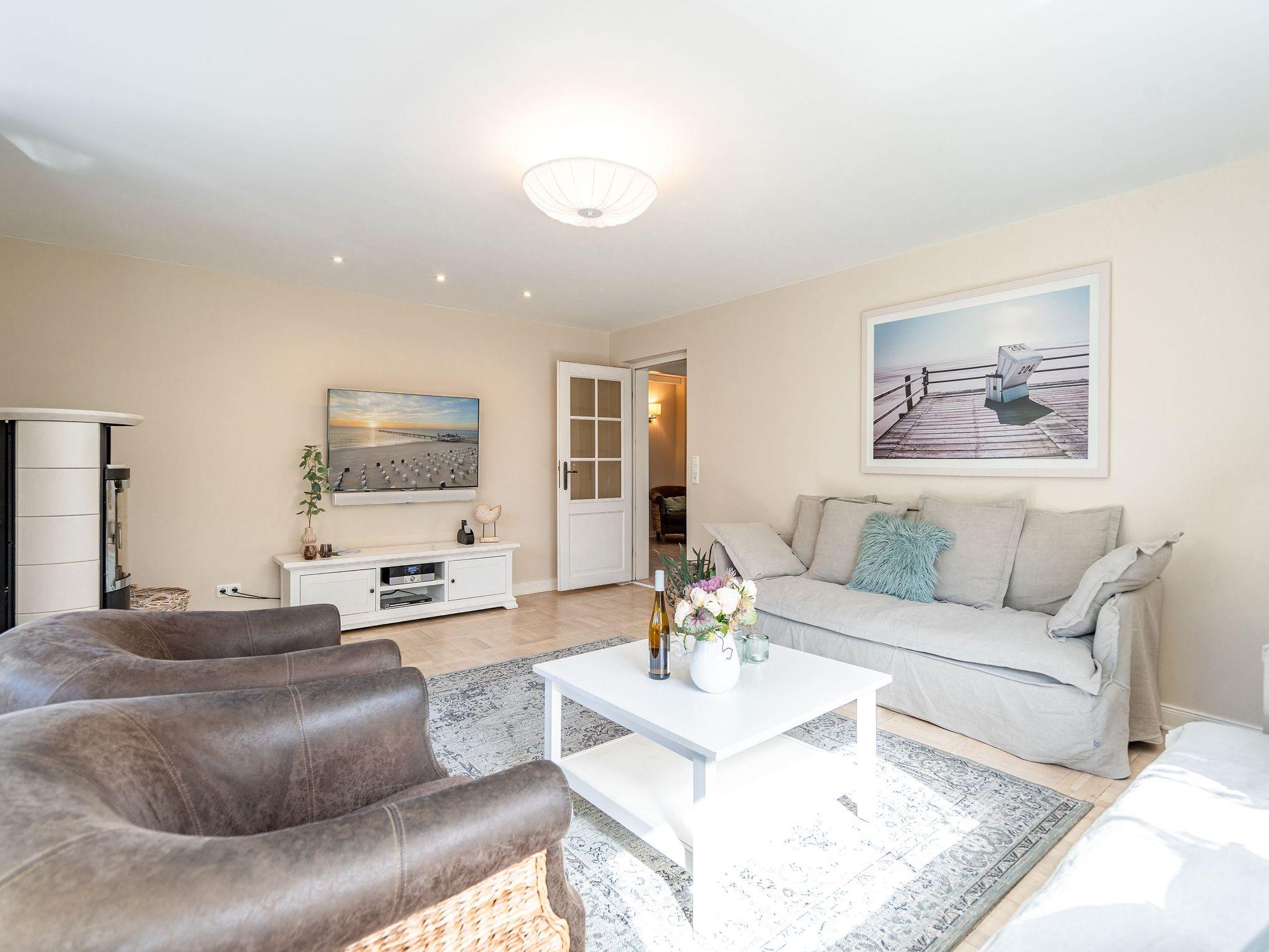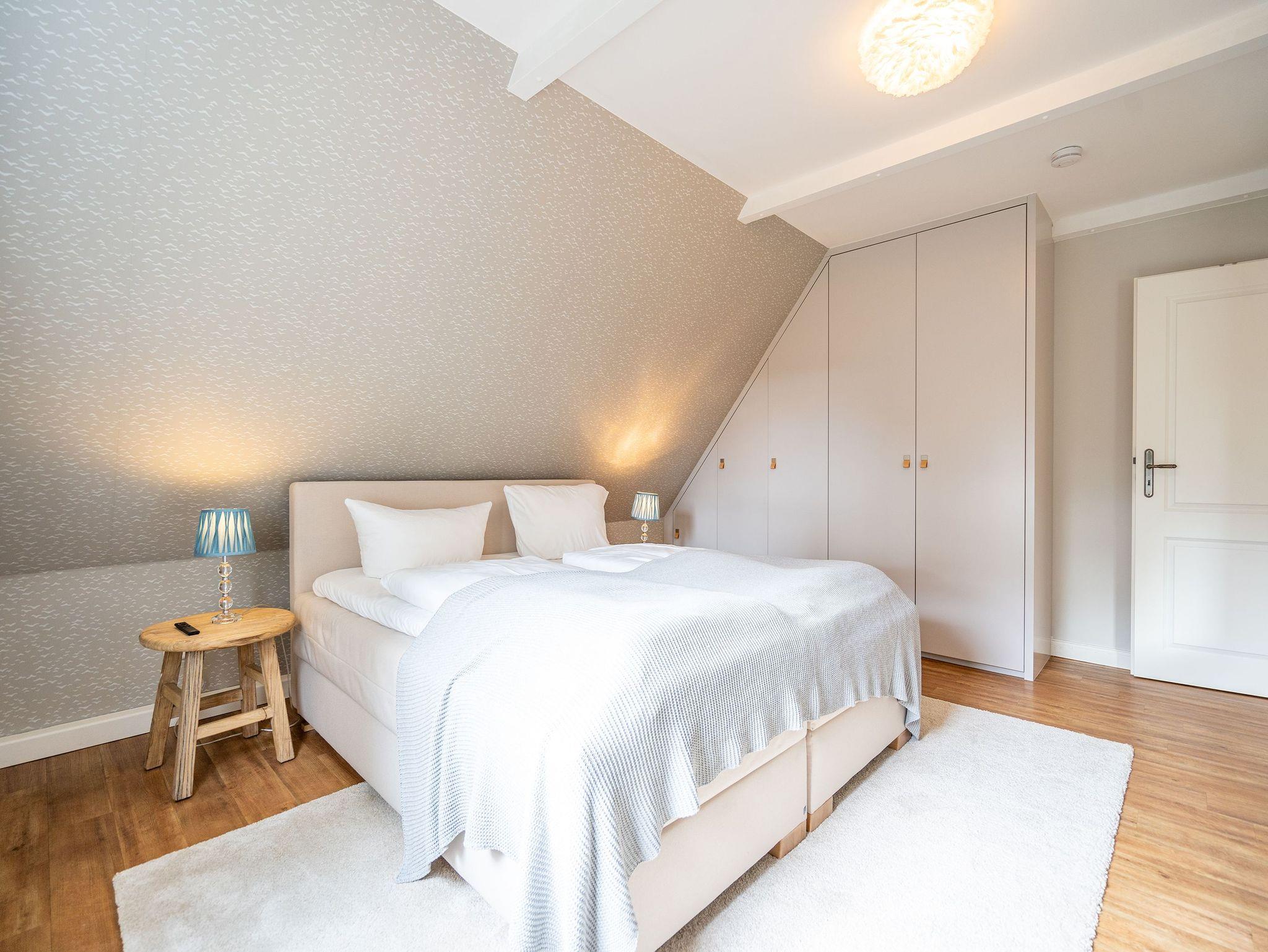 Von einer Innenarchitektin gestaltet und zentral, aber dennoch ruhig gelegen, offeriert Ihnen das Ferienhaus einen zeitlos-eleganten Wohnkomfort auf drei Ebenen. Modern und gekonnt eingerichtet, mit sehr viel Liebe zum Detail dekoriert, bietet es Platz für den Urlaub zu zweit, mit Freunden oder in Familie (max. 8 Personen und 2 Kleinkinder bis 3 Jahre). Im Erdgeschoss des Hauses finden Sie den großzügigen Wohnbereich mit bequemer Sitzgruppe, Flat-TV und Holzofenkamin. Auf der angrenzenden Südterrasse mit Strandkorb und Gartenmöbeln lässt es sich gemütlich bis in die Abendstunden hinein relaxen. Weiterhin befinden sich auf dieser Etage eine neue, sehr gut ausgestattete Küche, ein Esszimmer, eine gemütliche Leseecke und ein Gäste-WC. Im Obergeschoss bieten die 3 Schlafzimmer mit hochwertigen Boxspringbetten (1,80m x 2,00m und Flat-TV und 1 x 1,60m x 2,00m ) eine großzügige Schlafraumsituation, die durch ein Bad mit Dusche, WC und kleiner Badewanne ergänzt wird.