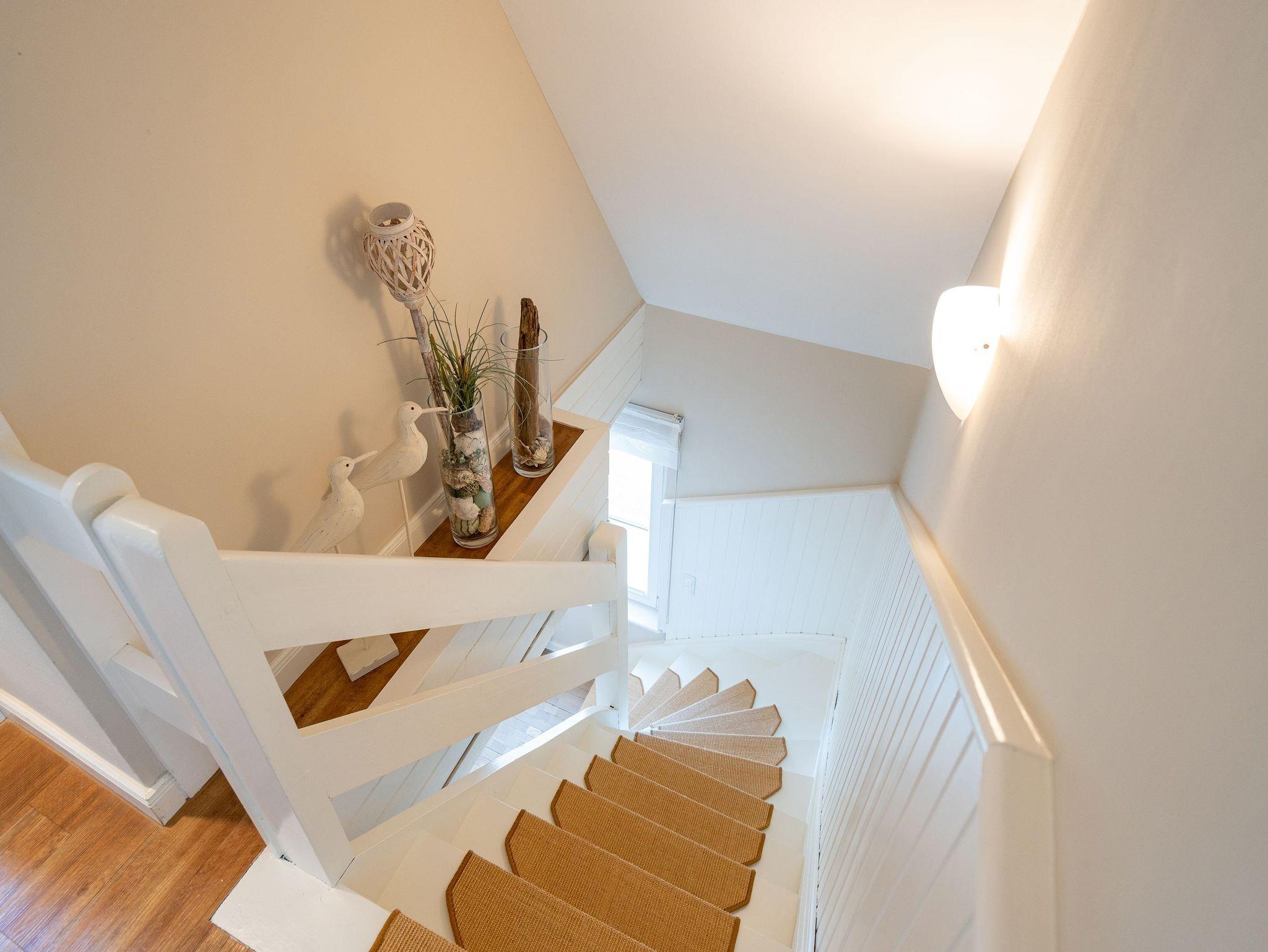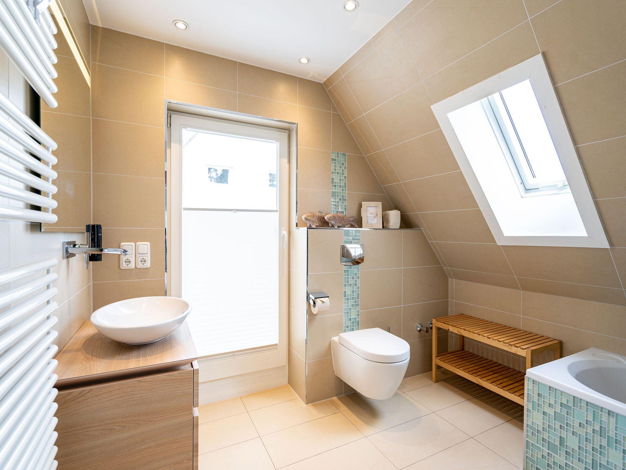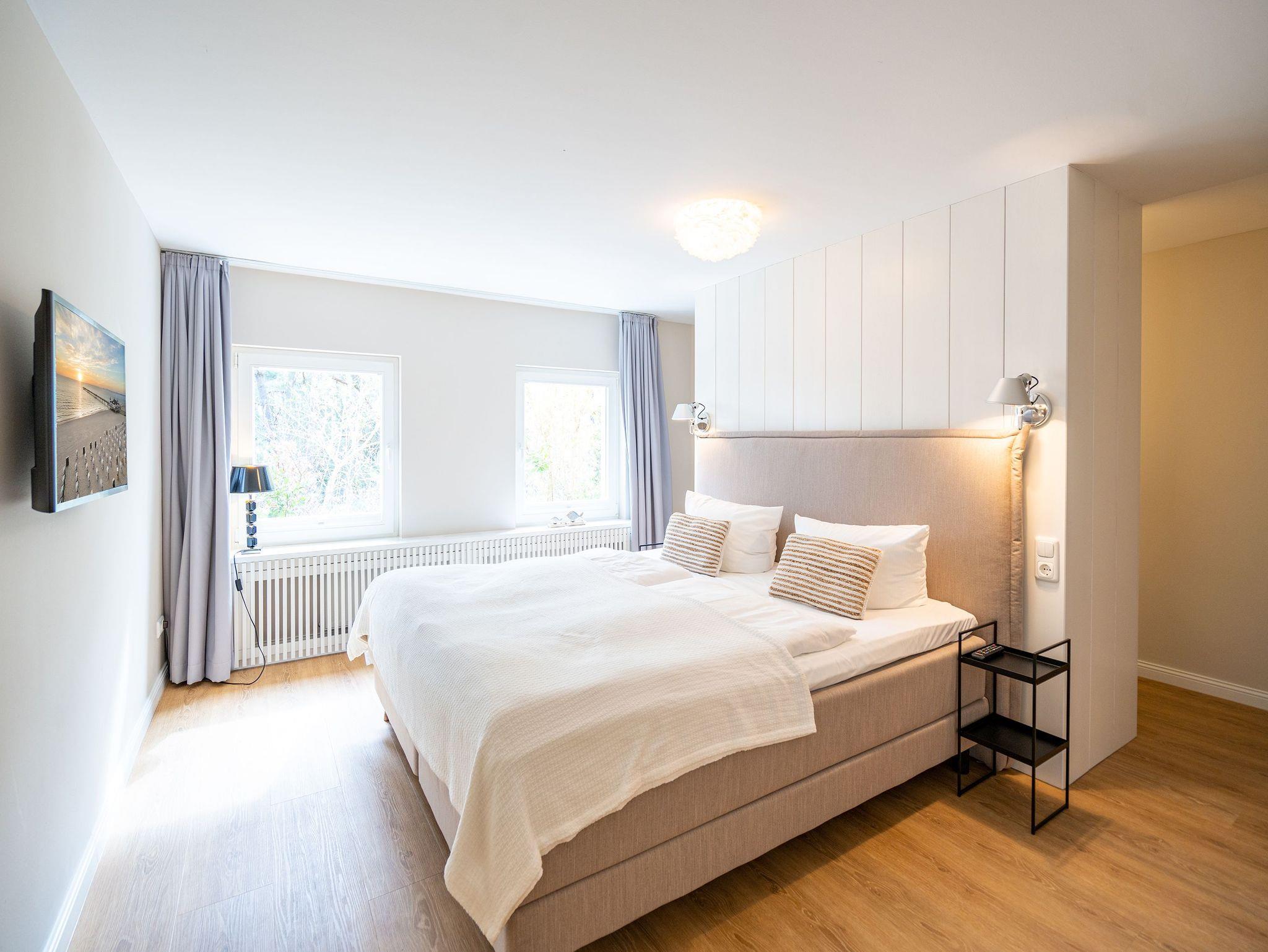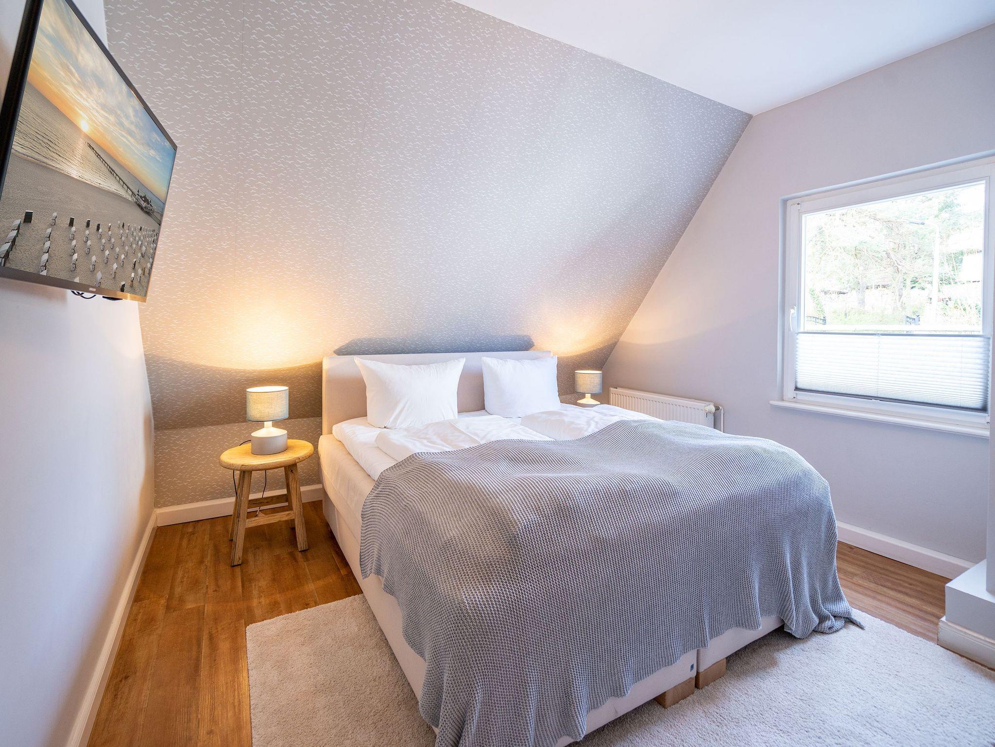 Von einer Innenarchitektin gestaltet und zentral, aber dennoch ruhig gelegen, offeriert Ihnen das Ferienhaus einen zeitlos-eleganten Wohnkomfort auf drei Ebenen. Modern und gekonnt eingerichtet, mit sehr viel Liebe zum Detail dekoriert, bietet es Platz für den Urlaub zu zweit, mit Freunden oder in Familie (max. 8 Personen und 2 Kleinkinder bis 3 Jahre). Im Erdgeschoss des Hauses finden Sie den großzügigen Wohnbereich mit bequemer Sitzgruppe, Flat-TV und Holzofenkamin. Auf der angrenzenden Südterrasse mit Strandkorb und Gartenmöbeln lässt es sich gemütlich bis in die Abendstunden hinein relaxen. Weiterhin befinden sich auf dieser Etage eine neue, sehr gut ausgestattete Küche, ein Esszimmer, eine gemütliche Leseecke und ein Gäste-WC. Im Obergeschoss bieten die 3 Schlafzimmer mit hochwertigen Boxspringbetten (1,80m x 2,00m und Flat-TV und 1 x 1,60m x 2,00m ) eine großzügige Schlafraumsituation, die durch ein Bad mit Dusche, WC und kleiner Badewanne ergänzt wird.