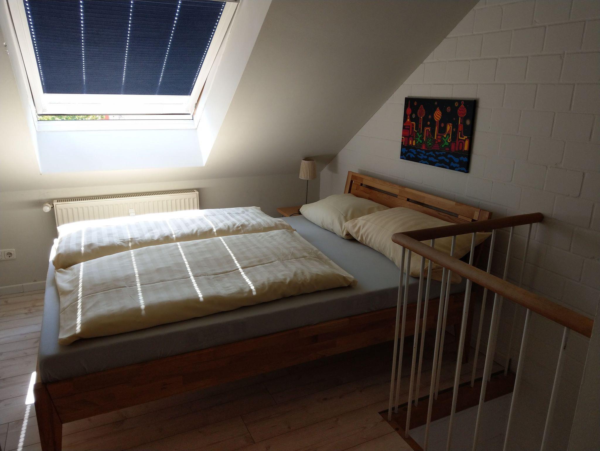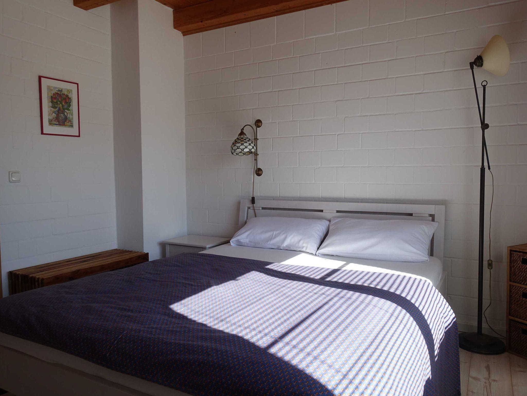 Obergeschoss befindet sich das Schlafzimmer mit Doppelbett und ein zweites Schlafzimmer mit einem Doppelbett (1,40 m). Beide Zimmer haben Kleiderschränke. Das Bad
