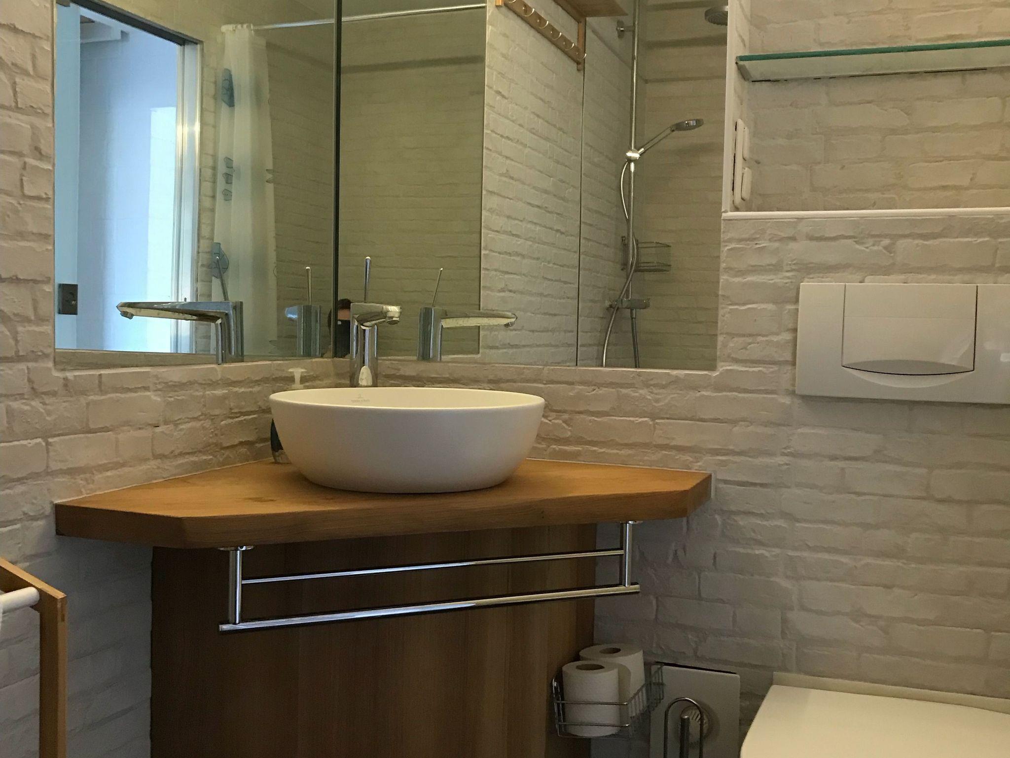 mit Dusche und WC hat auch eine Waschmaschine.