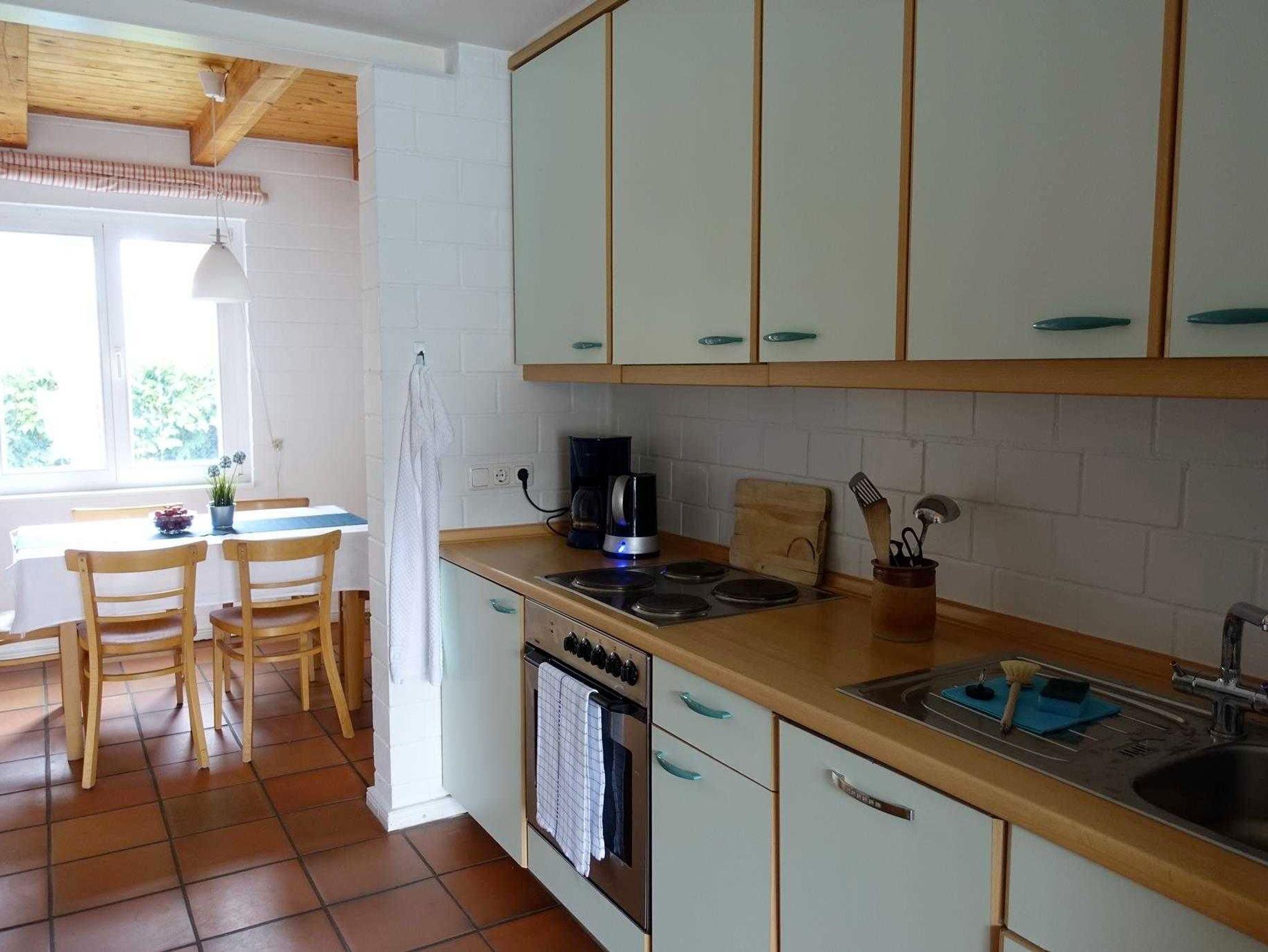 Backofen Gefrierschrank und Mikrowelle. Der Essplatz bietet Platz für 6 Personen. Auf