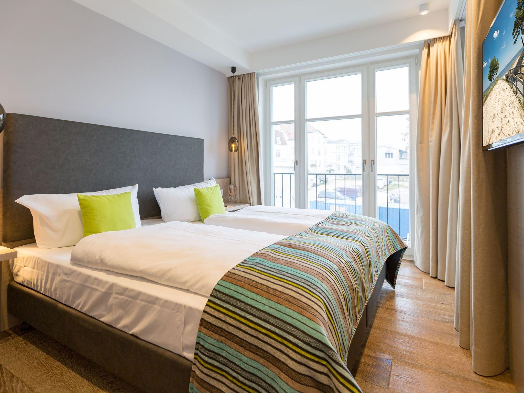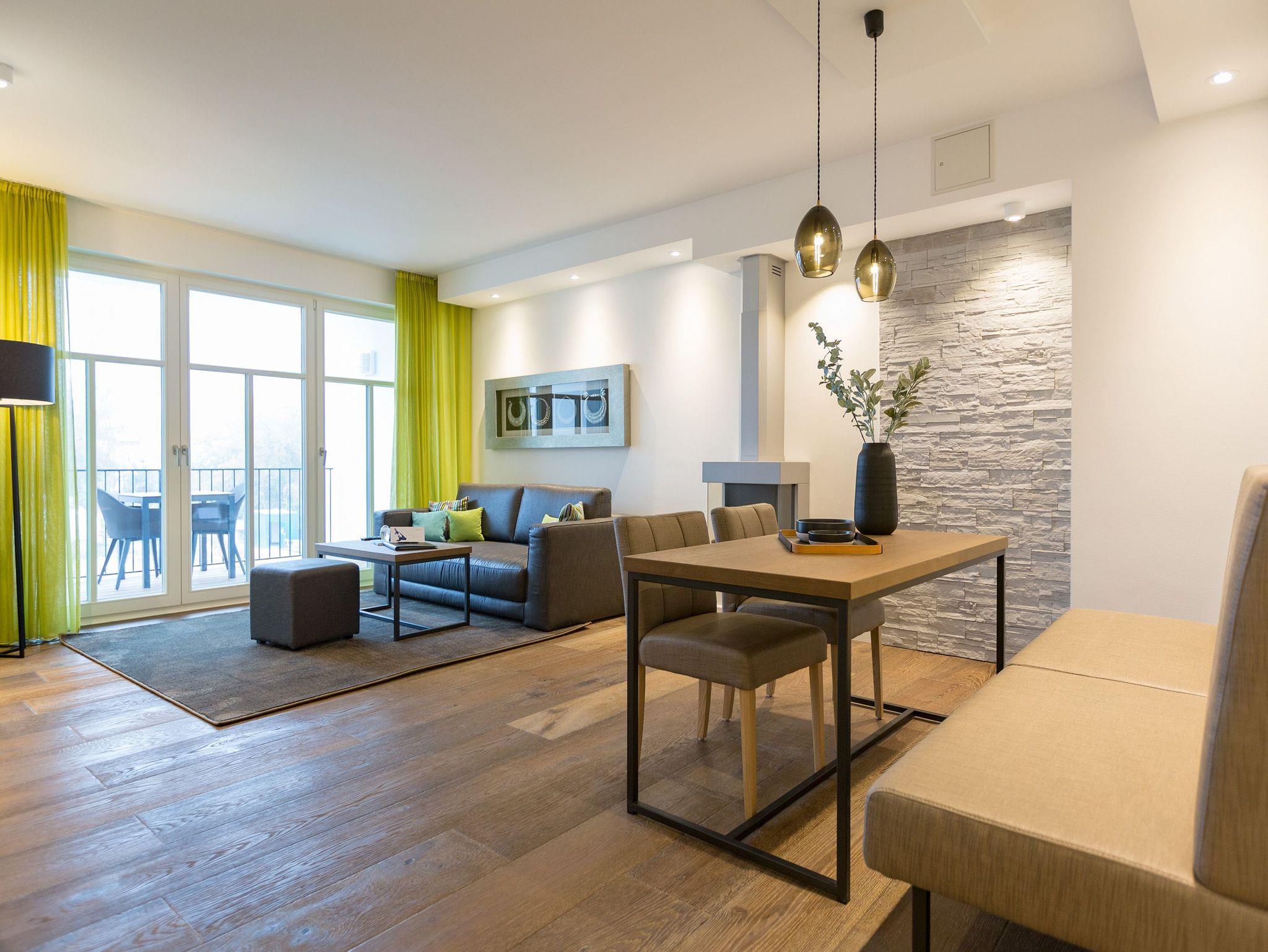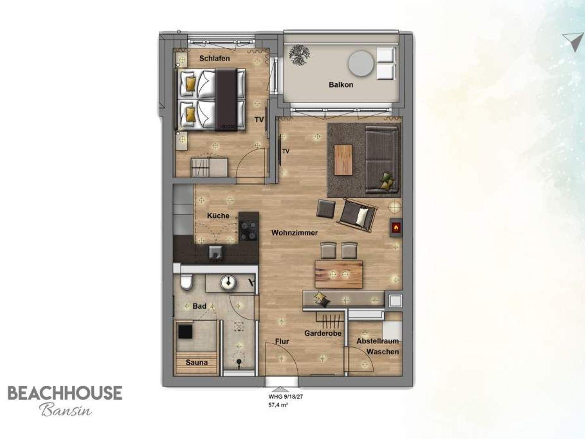 Dem Ostsee-Rauschen ganz nah sind Sie in diesem 53 Quadratmeter großen Urlaubsparadies im 2. Stock des Beachhouses. Ideal für zwei Personen bietet das Zwei-Raum-Appartement Wohnkomfort der Extra-Klasse. Ankommen, loslassen und wohlfühlen ? in diesem stylischen Feriendomizil wird Ihnen das bei solch einem eleganten und harmonischen Ambiente sicher leicht fallen. Das gesamte Raumkonzept wurde von einem der renommiertesten Innenarchitekturbüros Deutschlands entworfen. Naturmaterialien und warme Farben sorgen dafür, dass Sie sich vom ersten Augenblick an wohlfühlen. Das geräumige Wohn-Esszimmer ist mit allem eingerichtet, was Sie zum Entspannen sich erträumen. Ein Gas-Kamin spendet wohlige Wärme an ungemütlichen Tagen. Ansonsten reißen Sie doch einfach die bodentiefen Fenster zum Balkon (7 Quadratmeter groß) auf und lassen die frische Ostseeluft hinein. Genießen Sie auf den gemütlichen Balkon-Möbeln oder auf dem bequemen Sofa im Wohnzimmer Ihre Auszeit. Hier wie auch im Schlafzimmer befindet sich ein großer Flat-TV. Eine Bose-Anlage mit Bluetooth spielt Ihre Lieblingsmusik in satten Tönen. Das WLAN ist kostenfrei. Entspannen kann so schön sein! Kommt der Appetit, können Sie sich in der offenen und voll ausgestatteten Küche nach Herzenslust bekochen. Es ist alles da. Herd, Backofen, Mikrowelle, Geschirrspülmaschine, Kaffee-Automat, Kühlschrank mit Gefrierfach stammen von namhaften Markenherstellern. In den Schränken finden Sie edles Porzellan-Geschirr. Ihre Mahlzeiten können Sie am schönen Esstisch mit zwei Stühlen und einer bequemen Bank zu sich nehmen. Auch das Schlafzimmer hat Zugang zum Nord-West-Balkon. So dass die Wellen Sie mit sanftem Rauschen in den Schlaf bringen. Der wird garantiert ebenso erholsam wie der gesamte Urlaub. Denn in dem komfortablen Boxspringdoppelbett (1,80 m x 2,00 m) schlafen Sie so himmlisch wie auf Wolke 7. Ein geräumiger Schrank bietet ausreichend Ablagefläche. Im Badezimmer erwartet Sie ein kleines Highlight: Eine Finnische Sauna lädt Sie zu kuschelig warmen Auszeit-Momenten ein, wenn das Wetter einmal nicht nach draußen an den Strand lockt. Daneben ist das Bad mit Regendusche, Waschtisch und WC ausgestattet. Ein kleiner, separater Abstellraum beherbergt einen Waschtrockner. Rundum sorglos soll Ihr Urlaub in diesem Appartement sein. Darum sind die Betten bei Ankunft bereits bezogen und Handtücher liegen bereit. In der modernen Tiefgarage ist für Sie der Stellplatz Nr. 18 im Doppelparker unten (max. Höhe 1,85 m, max. Länge 5,10 m, max. Breite 2,50 m, max. Last 2.600 kg) reserviert.