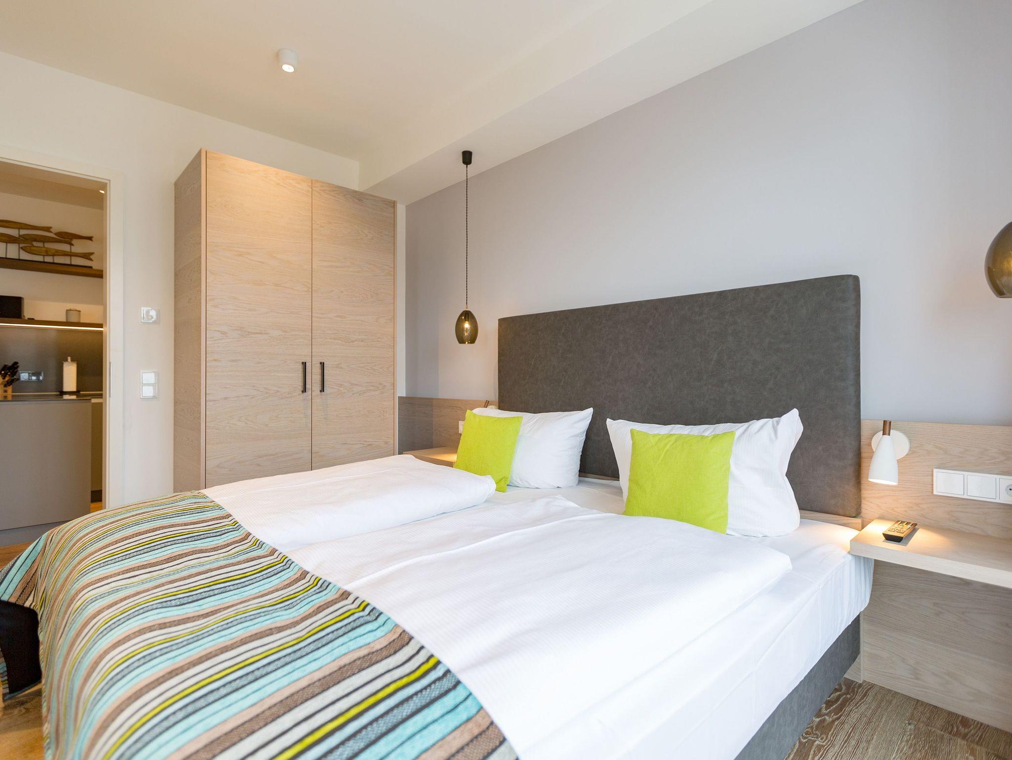 Dem Ostsee-Rauschen ganz nah sind Sie in diesem 53 Quadratmeter großen Urlaubsparadies im 2. Stock des Beachhouses. Ideal für zwei Personen bietet das Zwei-Raum-Appartement Wohnkomfort der Extra-Klasse. Ankommen, loslassen und wohlfühlen in diesem stylischen Feriendomizil wird Ihnen das bei solch einem eleganten und harmonischen Ambiente sicher leicht fallen. Das gesamte Raumkonzept wurde von einem der renommiertesten Innenarchitekturbüros Deutschlands entworfen. Naturmaterialien und warme Farben sorgen dafür, dass Sie sich vom ersten Augenblick an wohlfühlen. Das geräumige Wohn-Esszimmer ist mit allem eingerichtet, was Sie zum Entspannen sich erträumen. Ein Gas-Kamin spendet wohlige Wärme an ungemütlichen Tagen. Ansonsten reißen Sie doch einfach die bodentiefen Fenster zum Balkon (7 Quadratmeter groß) auf und lassen die frische Ostseeluft hinein. Genießen Sie auf den gemütlichen Balkon-Möbeln oder auf dem bequemen Sofa im Wohnzimmer Ihre Auszeit. Hier wie auch im Schlafzimmer befindet sich ein großer Flat-TV. Eine Bose-Anlage mit Bluetooth spielt Ihre Lieblingsmusik in satten Tönen. Das WLAN ist kostenfrei. Entspannen kann so schön sein! Kommt der Appetit, können Sie sich in der offenen und voll ausgestatteten Küche nach Herzenslust bekochen. Es ist alles da. Herd, Backofen, Mikrowelle, Geschirrspülmaschine, Kaffee-Automat, Kühlschrank mit Gefrierfach stammen von namhaften Markenherstellern. In den Schränken finden Sie edles Porzellan-Geschirr. Ihre Mahlzeiten können Sie am schönen Esstisch mit zwei Stühlen und einer bequemen Bank zu sich nehmen. Auch das Schlafzimmer hat Zugang zum Nord-West-Balkon. So dass die Wellen Sie mit sanftem Rauschen in den Schlaf bringen. Der wird garantiert ebenso erholsam wie der gesamte Urlaub. Denn in dem komfortablen Boxspringdoppelbett (1,80 m x 2,00 m) schlafen Sie so himmlisch wie auf Wolke 7. Ein geräumiger Schrank bietet ausreichend Ablagefläche. Im Badezimmer erwartet Sie ein kleines Highlight: Eine Finnische Sauna lädt Sie zu kuschelig warmen Auszeit-Momenten ein, wenn das Wetter einmal nicht nach draußen an den Strand lockt. Daneben ist das Bad mit Regendusche, Waschtisch und WC ausgestattet. Ein kleiner, separater Abstellraum beherbergt einen Waschtrockner. Rundum sorglos soll Ihr Urlaub in diesem Appartement sein. Darum sind die Betten bei Ankunft bereits bezogen und Handtücher liegen bereit. In der modernen Tiefgarage ist für Sie der Stellplatz Nr. 18 im Doppelparker unten (max. Höhe 1,85 m, max. Länge 5,10 m, max. Breite 2,50 m, max. Last 2.600 kg) reserviert.