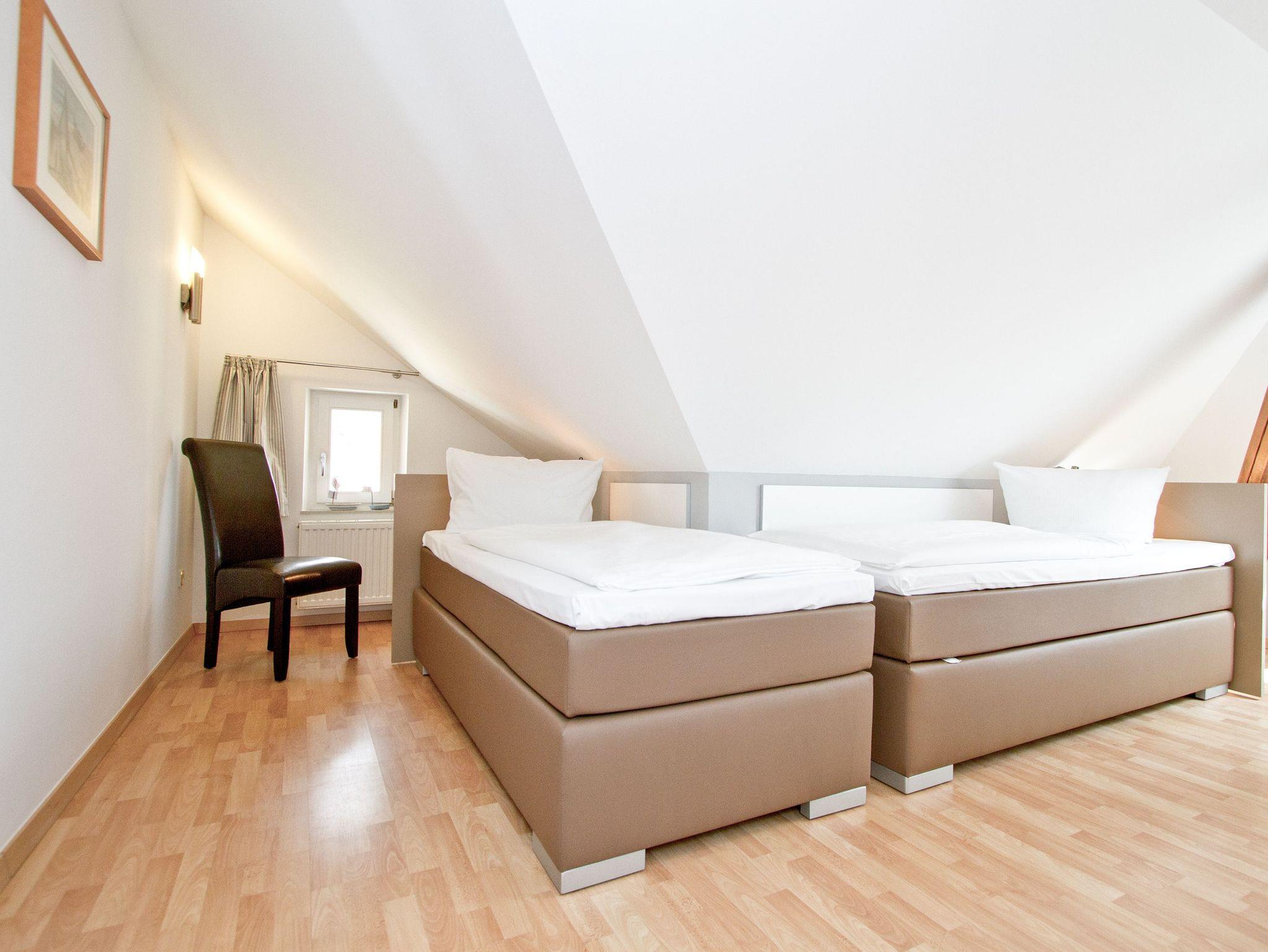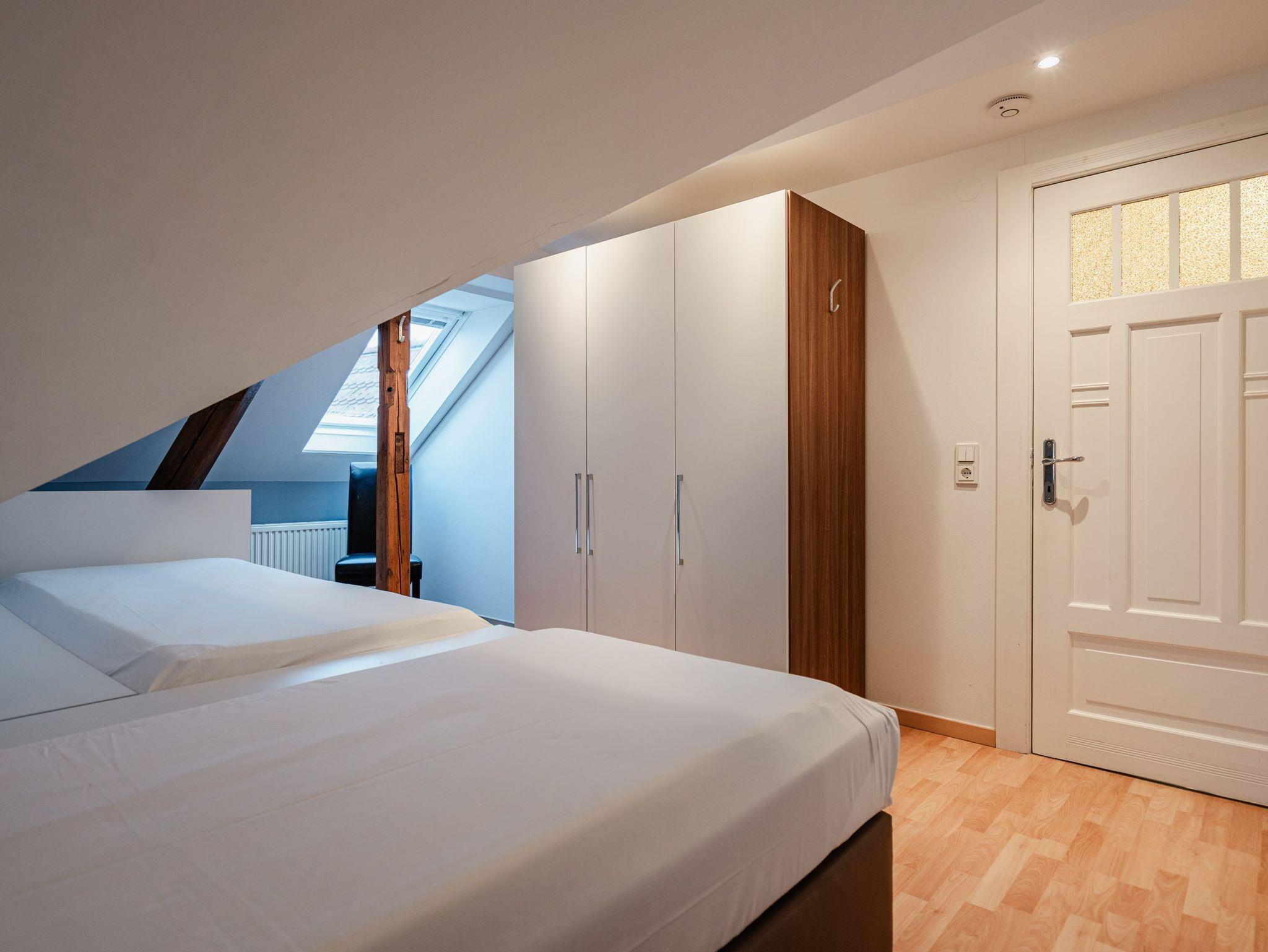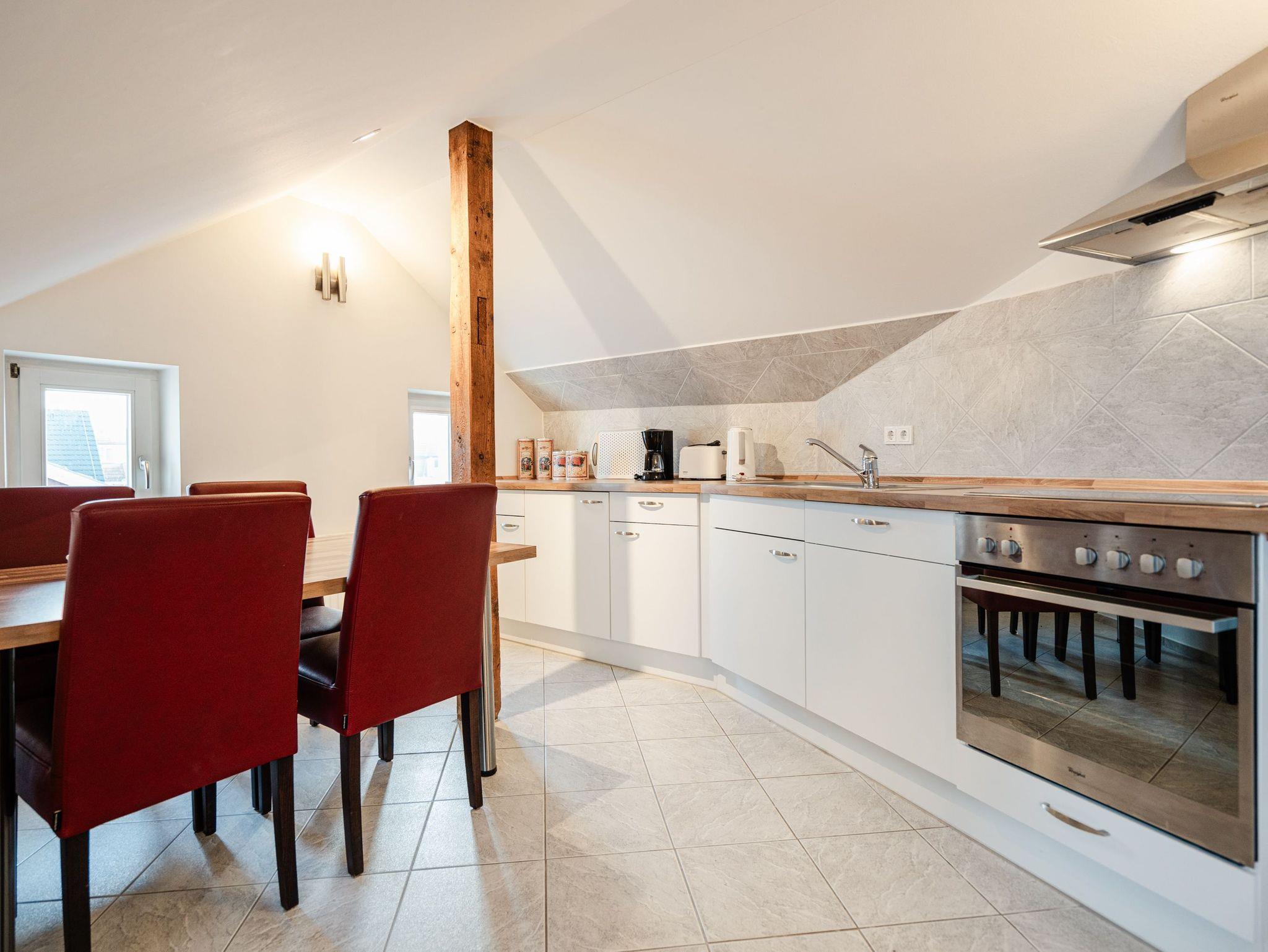 Viel Platz (100 qm) und jede Menge Gemütlichkeit erwarten Sie im Dachstudio der Villa Dora. Die Ferienwohnung 14 bietet Platz für bis zu 4 Personen. Moderne Möbel und Ausstattungen, gepaart mit Dachbalken und Schrägen, ergeben hier eine besonders wohnliche Atmosphäre. Der schöne Wohnbereich ist mit bequemer Sitzgruppe und Flat-TV ausgestattet. Hier findet man auch eine kleine Rückzugsecke unter der Dachschräge. Auf zwei Sesseln genießt man von hier aus, aus den kleinen Dachfenstern, den tollen Blick auf die Ostsee. Sicher wird dies schnell zu Ihrem Lieblingsplatz. Die zum Wohnbereich angrenzende, offen gehaltene Küche ist komplett ausgestattet und bietet auch dem Esstisch Platz. Zwei Schlafzimmer mit komfortablen Boxspringbetten (1x Doppelbett (1,60m x 2,00m) / 1x getrennte Betten (0,80m x 1,90m)) ergänzen die Wohnung ebenso wie das große Bad mit Doppelwaschbecken, WC, Dusche und Eck-Badewanne. Für Ihren Komfort sind die Betten bei der Anreise bezogen und Handtücher liegen bereit. Für kleine Gäste kann ein Kinderreisebett und ein Kinderhochstuhl bestellt werden. Für Ihren PKW steht Ihnen ein Parkplatz mit Poller vor dem Haus zur Verfügung.