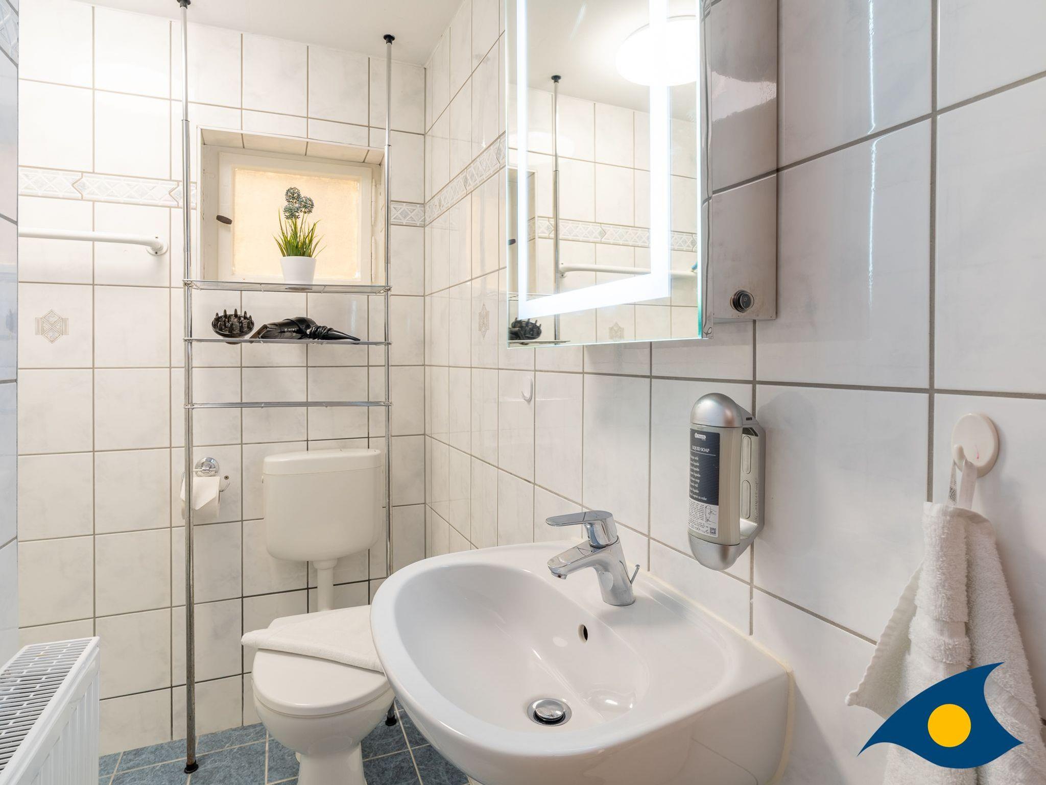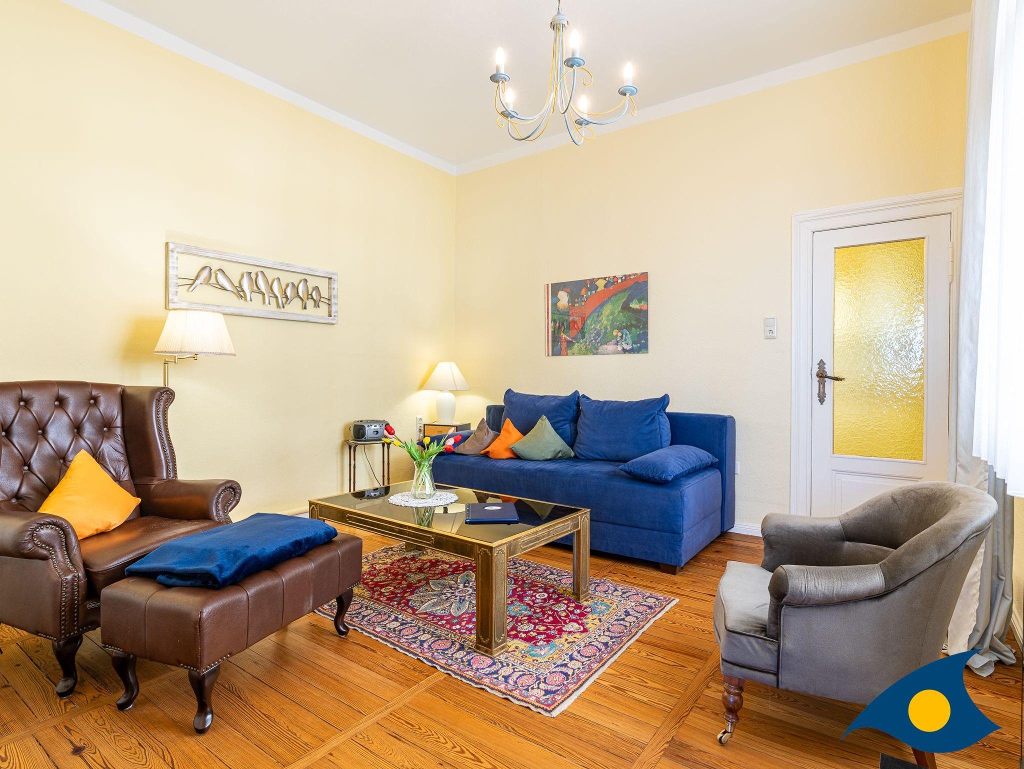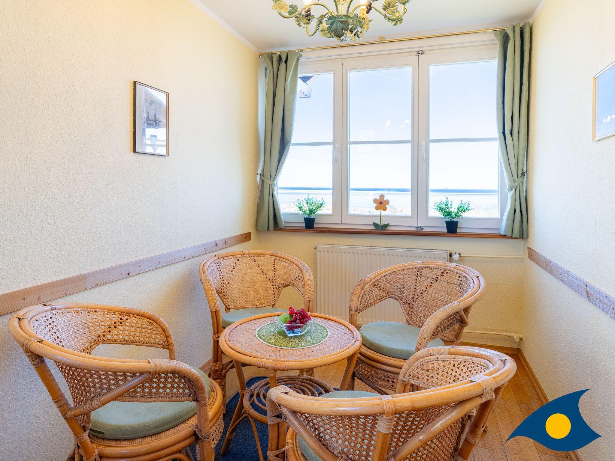Das Highlight der Wohnung stellt die separate Sitzecke mit unverbaubarem Meerblick dar. Von dort aus gelangen Sie in das gemütliche Wohnzimmer. Der gemtüliche Leder Ohrensessel lädt zum gemütlichen Lesen und Ausklingen des Tages ein. Neben dem Schlafzimmer mit Doppelbett bietet das Schlafsofa Platz für die 3. und 4. Person.
