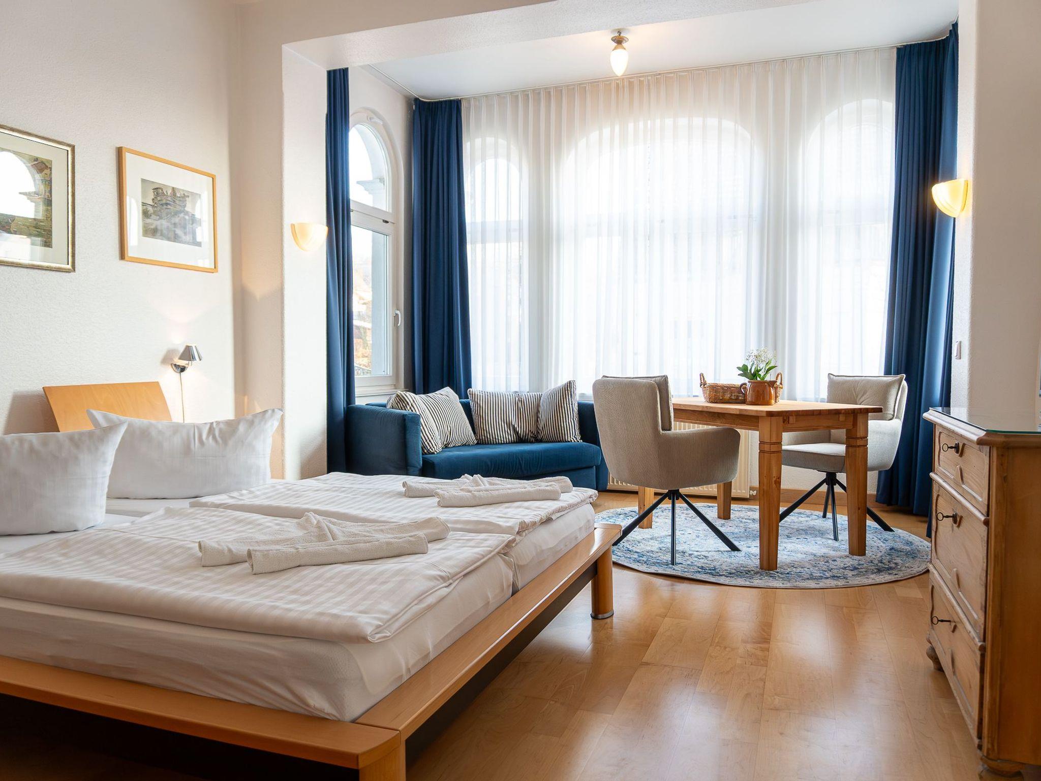 1 Wohn- Schlafzimmer mit Doppelbett (180 cm)