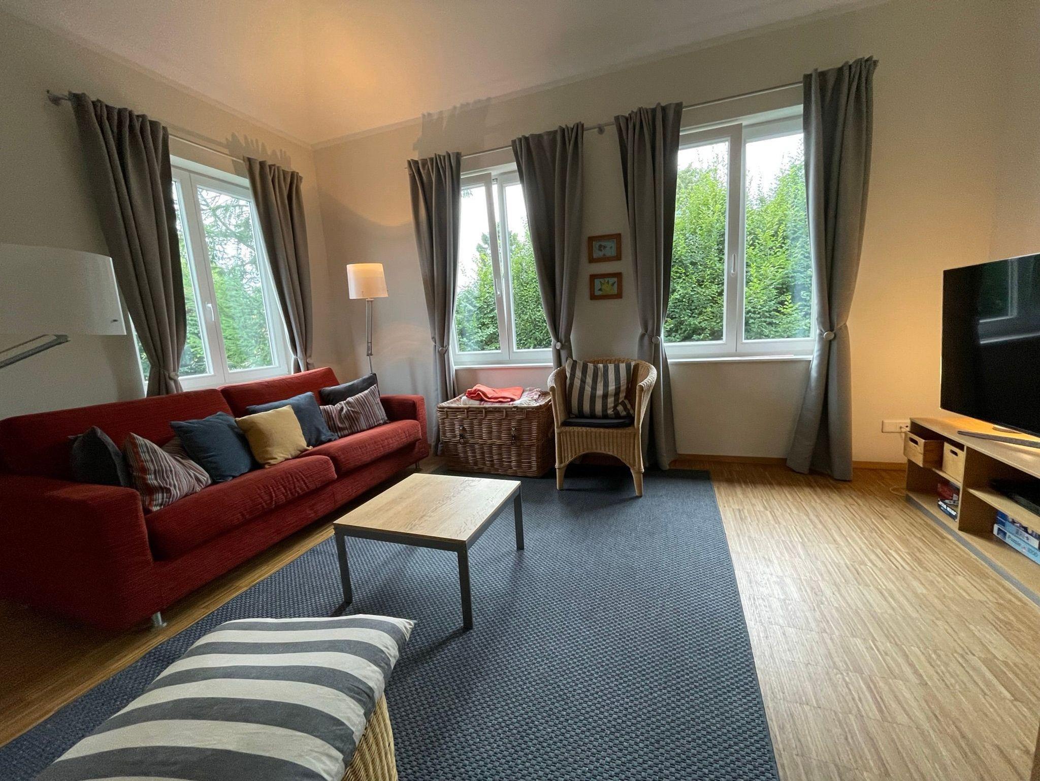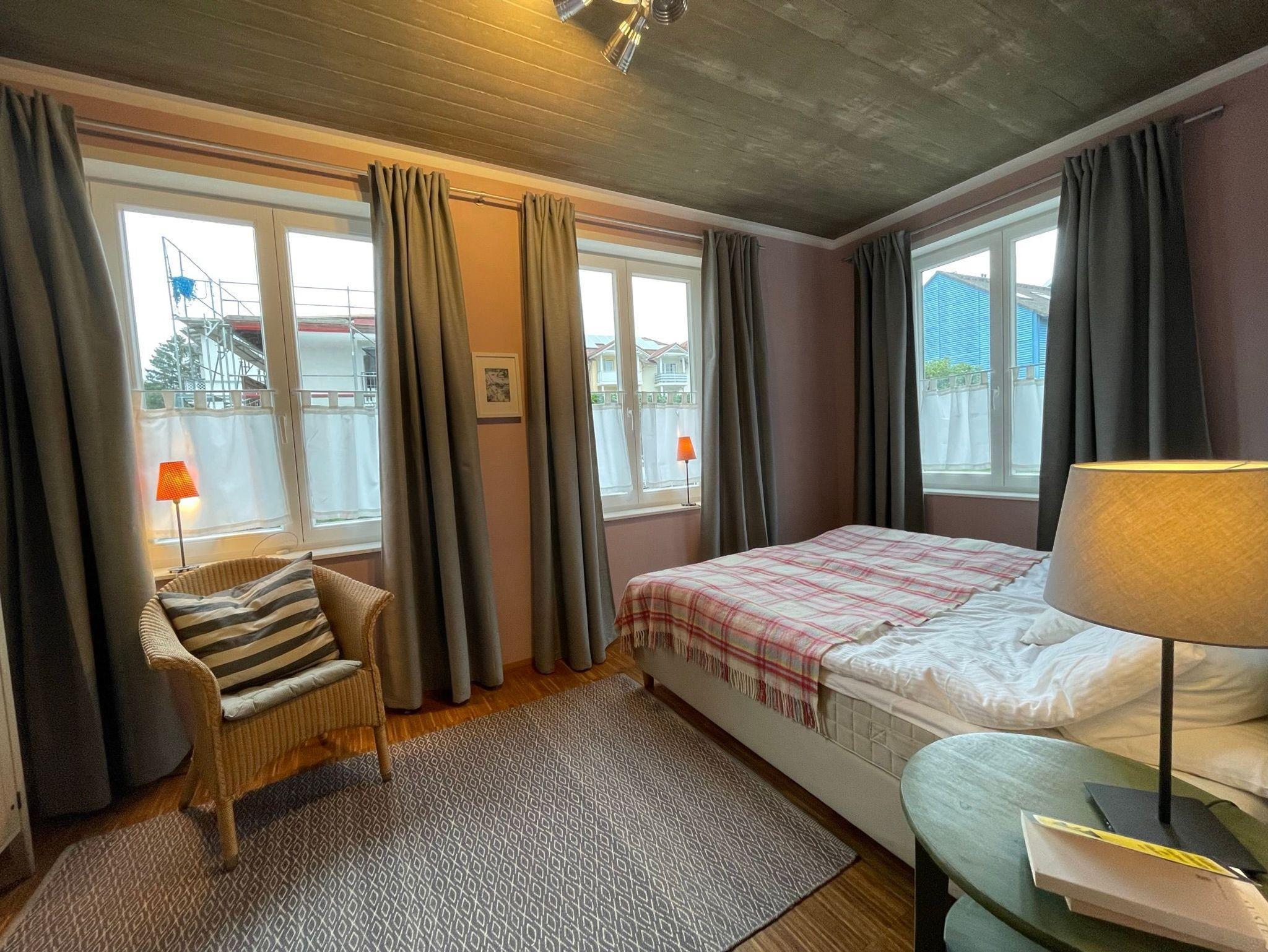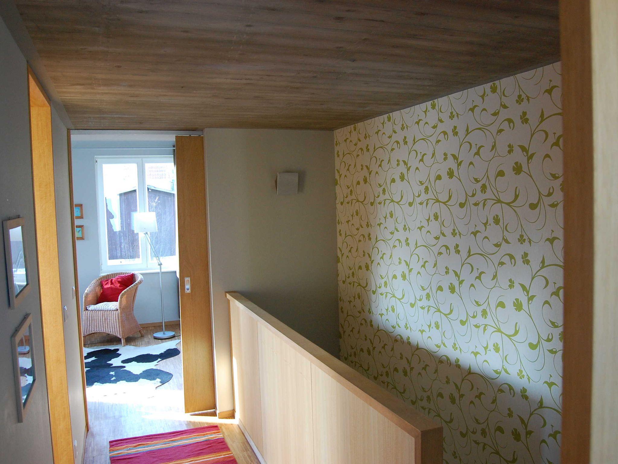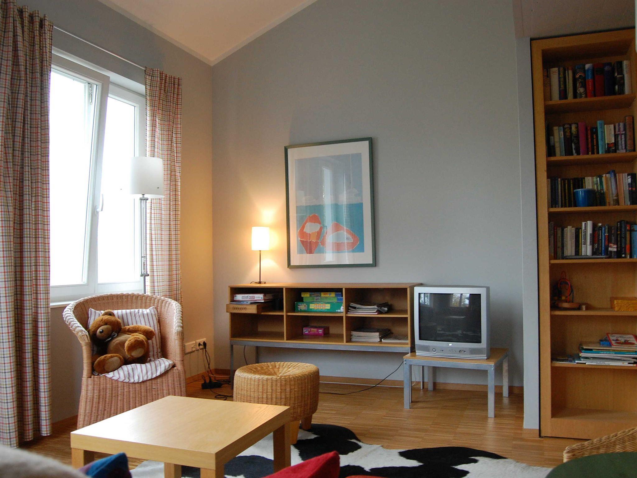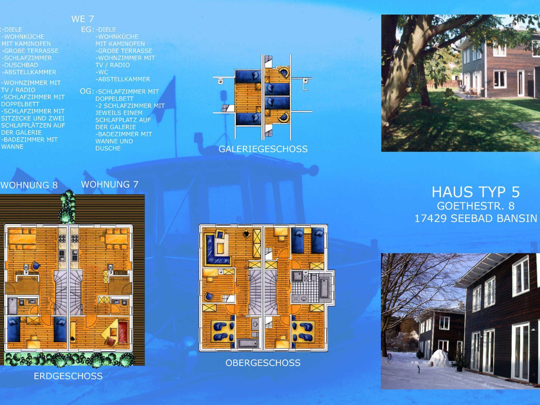 Beim FH Typ V handelt es sich um eine grosszügig ausgestattete und anspruchsvoll gestaltete Doppelhaushälfte mit großem Gartenanteil. In der Wohnküche im EG finden 6-7 personen am familienfreundlichen Esstisch bequem Platz. Ein gemütlicher Kaminofen und die perfekt ausgestattette Küche runden das Zentrum des FH ab. Für Kinder oder Gäste die nicht mehr so gut zu Fuß sind befindet sich im EG weiterhin ein Schlafzimmer mit 2 sep. Betten und das Bad mit schwellenloser Dusche. Weitere 2 Schlafräume und ein Wannenbad befinden sich im OG. Das Wohn - und Medienzimmer wurde zum ruhigen Rückzug ebenfalls ins OG verlegt und mit einer hauseigenen kleinen Bibliothek ausgestattet. Das gesamte Objekt ist geschmackvoll, modern aber sehr wohnlich eingerichtet. Fussbodenheizung in allen Räumen und Parkettfußböden schaffen auch an kühleren Tagen eine behagliche Atmosphäre.