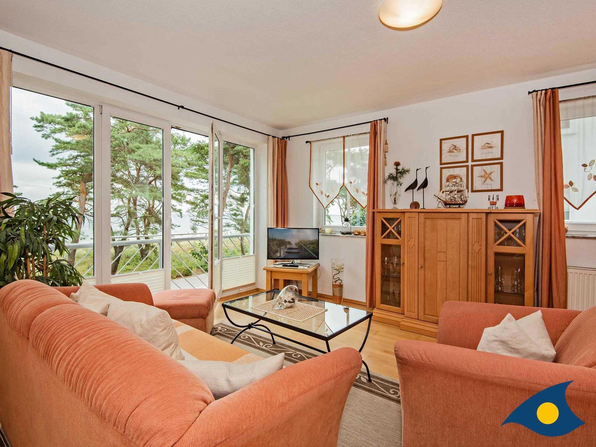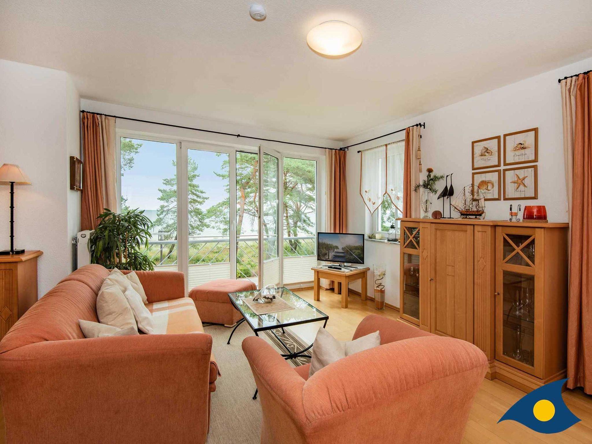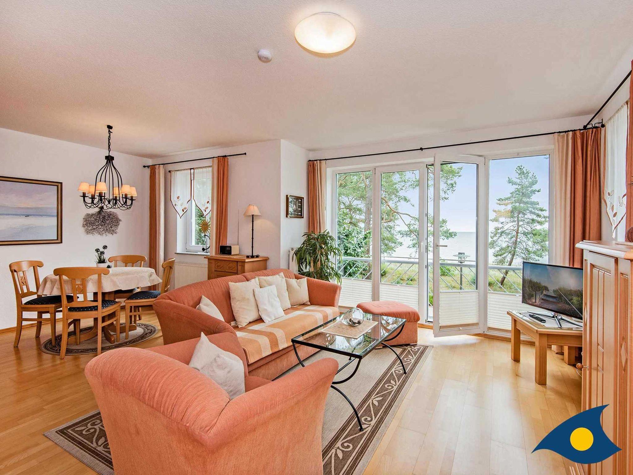 Dieses modern und liebevoll eingerichtete Appartement in der 3. Etage hat einen fantastischen Blick auf die Ostsee. Das gemütliche Wohnzimmer mit den bodentiefen Fenstern lädt zum urlauben und entspannen ein.