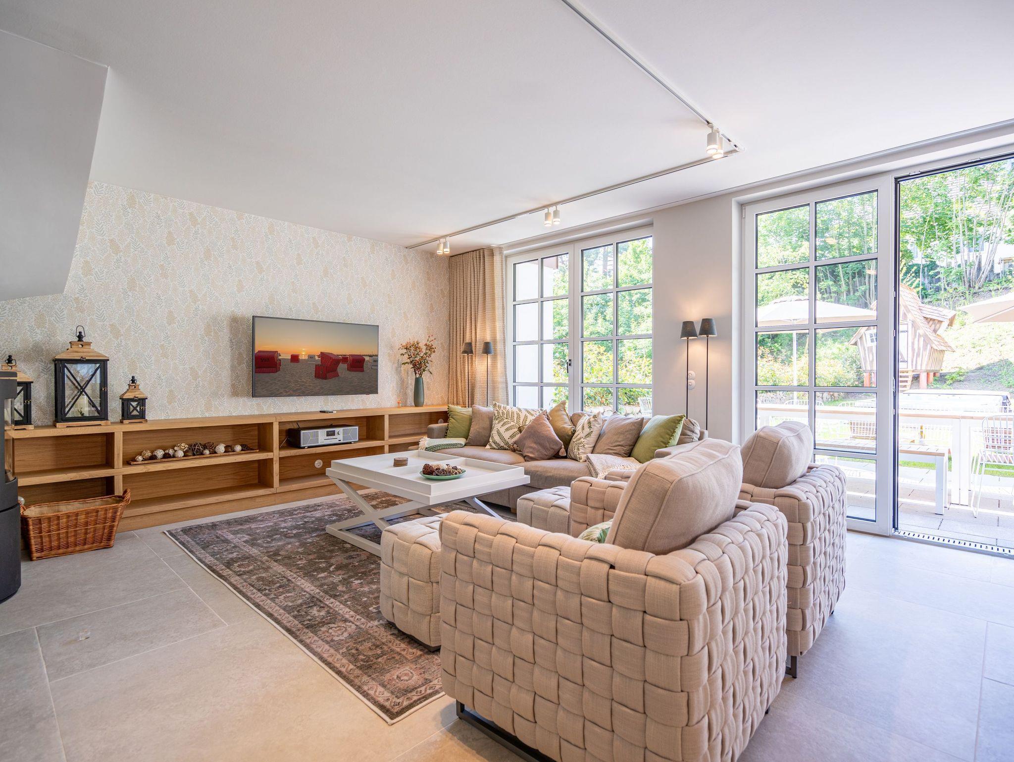 Herzlich willkommen in der wunderschönen Reetdach-Doppelhaushälfte Reetreat, eingebettet in die idyllische Landschaft des Seebads Bansin. Dieses exklusive Ferienhaus verfügt über drei Etagen und bietet Platz für bis zu 8 Erwachsene und 1 Kind. Im Erdgeschoss erwartet Sie ein großzügiger offener Wohn- und Essbereich, der zum gemeinsamen Verweilen einlädt. In der voll ausgestatteten Küche befinden sich moderne Annehmlichkeiten wie zwei Backöfen mit Mikrowellenfunktion, einen Induktionsherd und sogar zwei Weinschubladen. Der Essbereich bietet Platz für 9 Personen. Eine gemütliche Sitzgruppe mit einem Flat-TV und einer Sonoro Kompaktanlage mit CD-Player, Bluetooth und Internetradio sowie einer eigenen kleinen Bibliothek schafft eine behagliche Atmosphäre. Ein einladender Kaminofen sorgt zusätzlich für Wärme und Gemütlichkeit. Von hier aus gelangen Sie auf die großzügige Süd-West-Terrasse (30qm). Ein Grill steht Ihnen zur Verfügung, damit Sie gesellige Abende mit köstlichem Essen im Freien verbringen können. Außerdem erwartet Sie ein wahres Highlight: Ein beheizter Pool mit Gegenstromanlage und separatem Whirlpool (ganzjährig nutzbar) lädt zum Entspannen und Erfrischen ein. Am Ende des Grundstückes befindet sich ein kleines Hexenhaus als Spielehaus für unsere kleinen Gäste. Das luxuriöse Bad mit Sauna, geräumiger Dusche, Waschtisch, Bidetbrause und WC bietet weiteren Komfort. Ein Waschtrockner im Flurschrank rundet die Ausstattung ab. Im ersten Obergeschoss befinden sich drei Schlafzimmer, jedes ausgestattet mit komfortablen Boxspringdoppelbetten (1,80m x 2,00m), Kleiderschrank und einem Flat-TV. Zwei der Schlafzimmer bieten Zugang zum Nord-West-Balkon. Ein weiteres Badezimmer mit Dusche, Waschtisch, WC und Bidetbrause komplettiert diese Etage. Das Highlight des zweiten Obergeschosses ist das vierte Schlafzimmer, ausgestattet mit einem Boxspringdoppelbett (1,60m x 2,00m) und einem Kojenbett (0,90m x 2,00m), einer Kommode und einem Flat-TV. Ein innenliegendes Gäste-WC mit Bidetbrause bietet zusätzlichen Komfort. Im Außenbereich steht Ihnen ein eigener Abstellraum für Fahrräder zur Verfügung. Zwei Außenstellplätze für PKW sind vorhanden, mit der Möglichkeit einer E-Ladestation für Elektroautos (kostenpflichtig). Ihr vierbeiniger Freund ist bei uns ebenfalls herzlich willkommen. Das komplett eingezäunte Grundstück sorgt dafür, dass Ihr Haustier sicher und frei herumlaufen kann. Entspannen Sie sich und fühlen Sie sich wie zu Hause wir freuen uns auf Ihren Besuch! Erleben Sie unvergessliche Urlaubstage in diesem traumhaften Domizil, das keine Wünsche offen lässt und Ihnen pure Entspannung bietet.