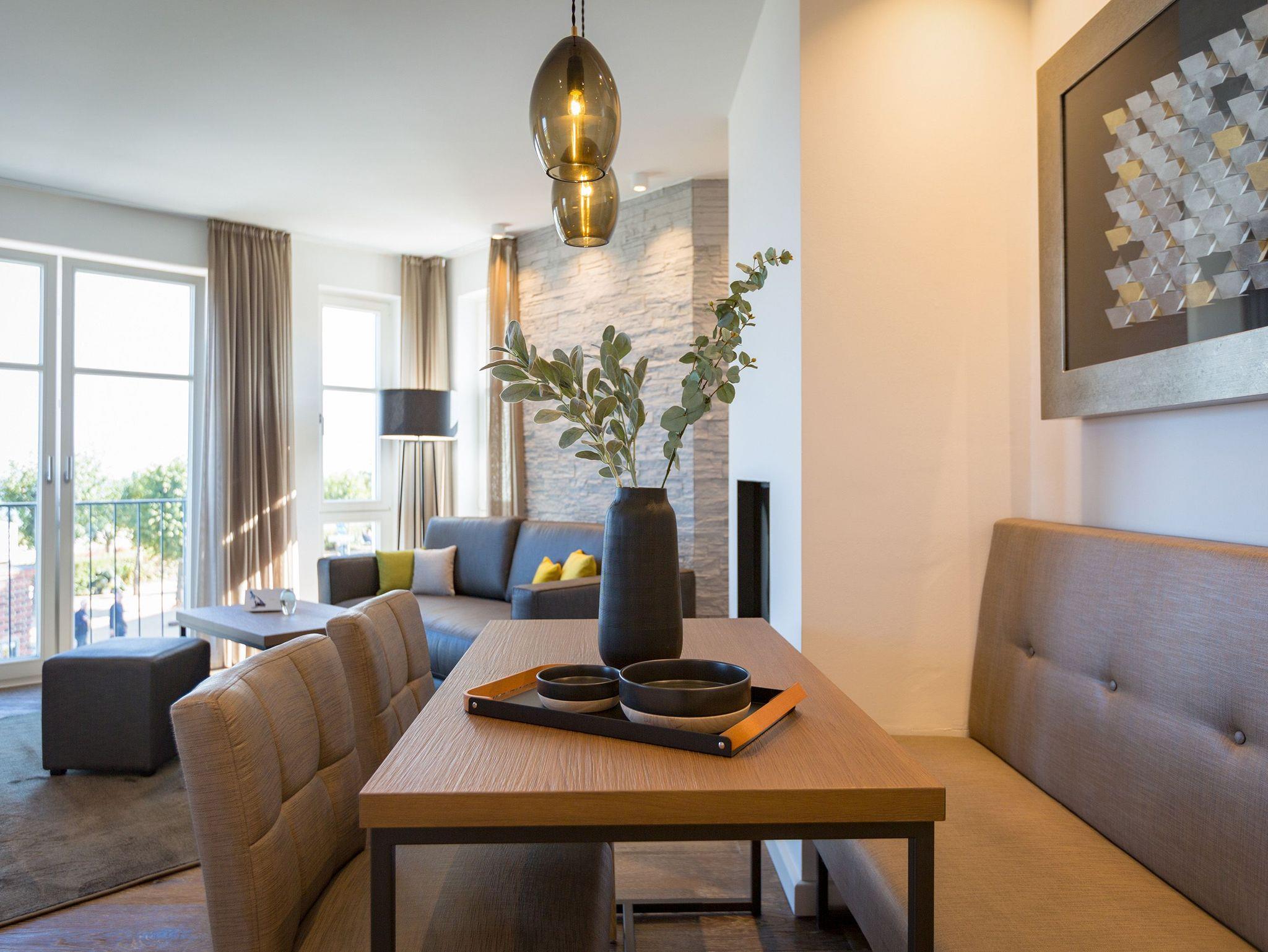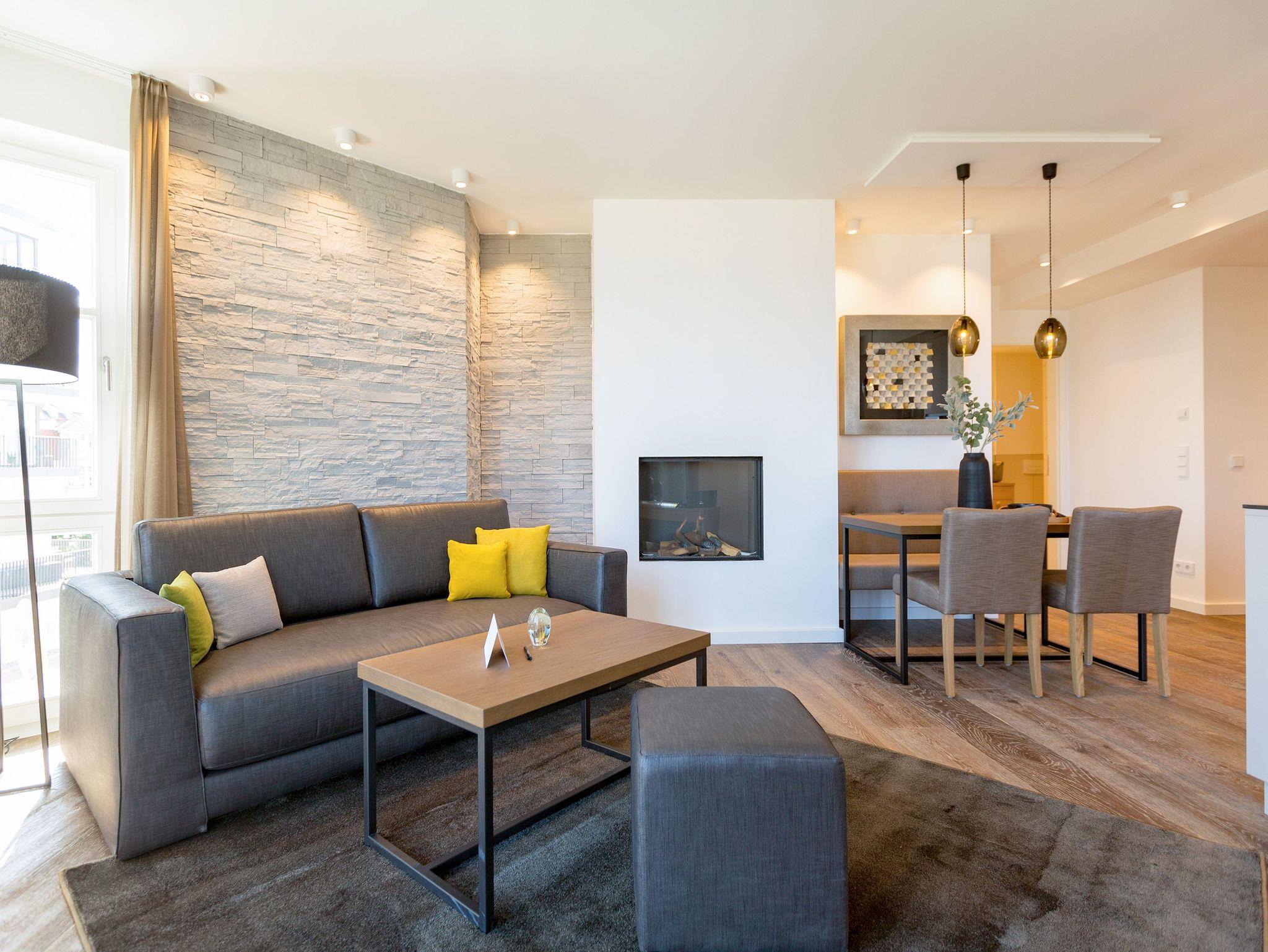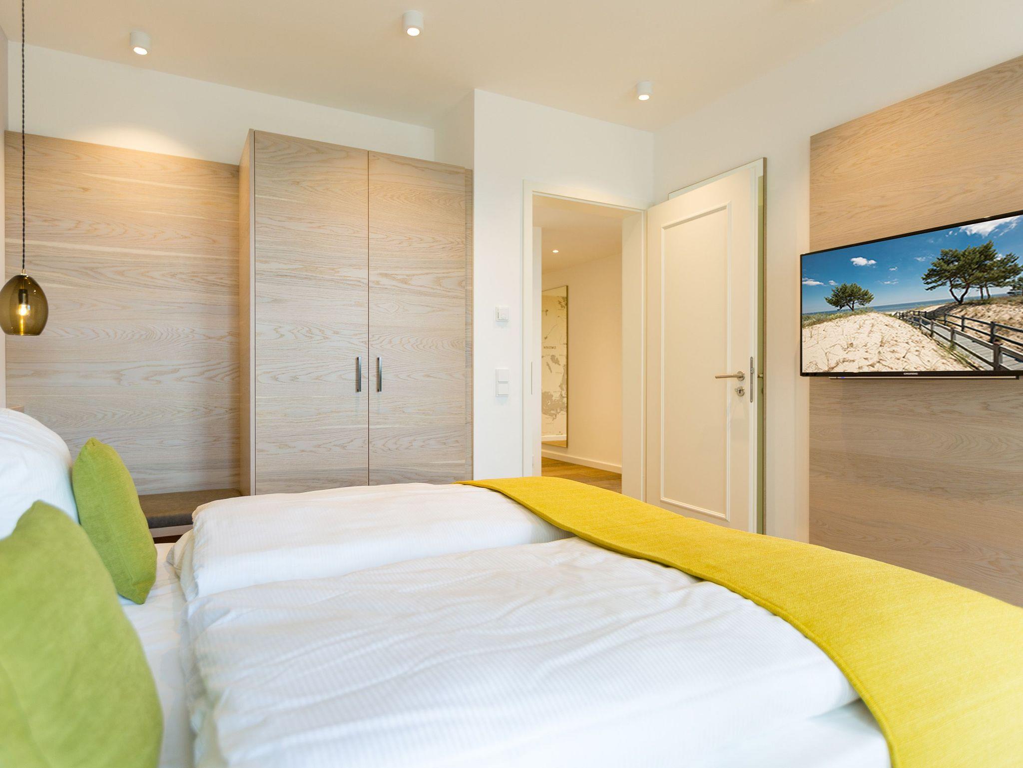 Maritimes Flair mit Seeblick empfängt Sie in den drei Zimmern des Appartements Nummer 2 im 1. Obergeschoss des Beachhouses. Modernster Wohnkomfort gepaart mit der exklusiven Lage dieses Feriendomizils machen die Ostsee-Auszeit für vier Personen und ein Kleinkind bis drei Jahre (im Kinderreisebett) zu einem unvergesslich schönen Erlebnis. Auch Ihr geliebter Vierbeiner ist in dieser Wohnung herzlich willkommen. Insgesamt 79 Quadratmeter groß ist die Wohnung. Und sie ist stilvoll und erlesen eingerichtet. 0815 gibt es hier nicht! Lassen Sie sich schon morgens von der Sonne und dem Rauschen der Ostsee sanft wecken. Aus einem der beiden Schlafzimmer haben Sie einen direkten Blick auf das Meer. Und damit nicht genug. Über den vom Schlafzimmer zugänglichen Balkon (6 Quadratmeter groß) können Sie die frische Ostseebrise denn auch gleich hautnah fühlen. Den Blick schweifen lassen, durchatmen und abschalten: Das ist Urlaub. Übrigens haben beide Schlafzimmer Zugang zu einem Balkon. Der zweite Balkon (8 Quadratmeter groß) schaut südostwärts mitten auf die Einkaufsstraße und das Leben von Bansin hinunter. Ausgestattet mit bequemen Boxspringdoppelbetten (einmal 1,80 m x 2,00 m und einmal 1,60 m x 2,00 m), je einem Flat-TV und geräumigen Schränken bieten Sie Behaglichkeit und ein Rund-um-Sorglos-Gefühl. Das macht sich übrigens im gesamten Appartement breit. Das große und lichtdurchflutete Wohn-Ess-Zimmer ist eine echte Wohlfühlzone mit direktem Blick auf die Ostsee. Das gemütliche Sofa lädt zum Relaxen ein entweder beim Schauen auf das Flammenspiel des gläsernen Gas-Kamins oder beim Schauen eines Films auf dem großen Flat-TV. Zur technischen Ausstattung gehört hier auch eine Hi-Fi-Anlage mit bluetooth-Funktion und kostenloses WLAN. Der schöne Esstisch mit den Stühlen und der Bank ist ideal zum Zusammensitzen. Kochen Sie gemeinsam in der zum Wohnzimmer hin offenen Küche. Die frei stehende Kochinsel ist ein echtes Highlight für Hobbyköche. In den Schränken finden Sie erlesenes Geschirr. Und die Küchenzeile ist mit hochwertigen Markengeräten voll ausgestattet. Ihr Feriendomizil verfügt über zwei Bäder. Eines ist ausschließlich von einem der beiden Schlafzimmer aus zugänglich. Beide sind jedoch mit einer schönen, großen und ebenerdigen Regendusche, einem Waschtisch und einem WC ausgestattet. Im Masterbad befindet sich zudem eine Finnische Sauna, die Sie kostenfrei nutzen können. In einem Hauswirtschaftsraum befindet sich ein Waschtrockner. Kommen Sie also einfach an und entspannen Sie. Die Betten haben wir für Sie bereits bezogen und auch Handtücher liegen für Sie bereit. In der modernen Tiefgarage ist für Sie der Stellplatz Nr. 2 im Doppelparker oben (max. Höhe 1,90m, max. Länge 5,10 m, max. Breite 2,50 m, max. Last 2.600 kg) reserviert.