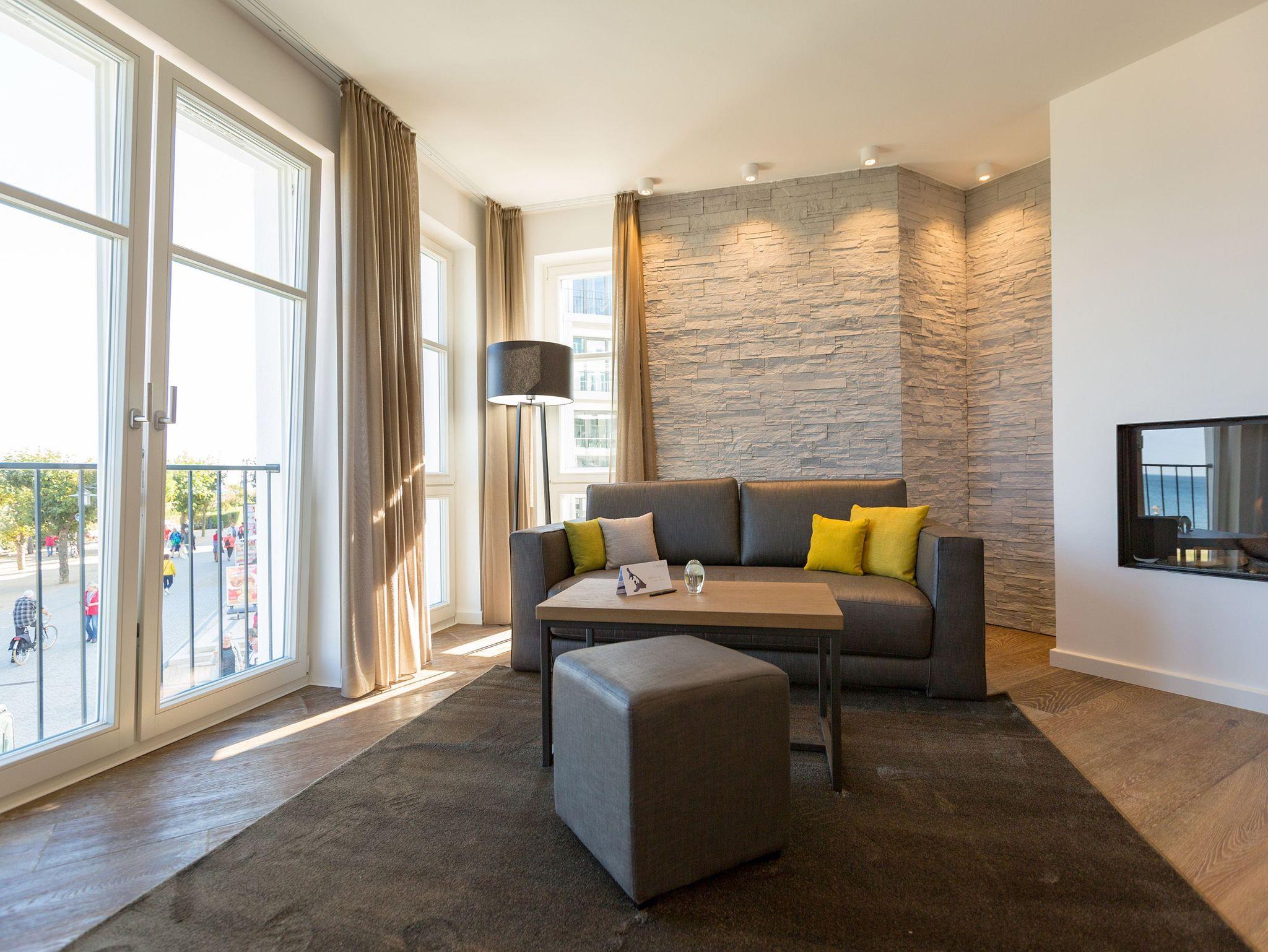 Im Erdgeschoss befindet sich neben einer Bäckerei auch das bekannte und belebte Fischrestaurant Gosch. Dieses bietet neben seinem gastronomischen Angebot auch Live-Veranstaltungen und Tanzabende. Balkone und Erker erlauben wunderschöne Ausblicke schon zum Sonnenaufgang und laden zum Relaxen ein. Stilvoll geht es auch im Inneren des Beachhouses zu. Innenarchitekten und Designer haben ein jedes Appartement mit Fingerspitzengefühl und viel Liebe zum Detail konzipiert. Verarbeitet wurden nur hochwertige Materialien. Die Farben sind in jeder Wohnung ganz individuell und harmonisch aufeinander abgestimmt. Alle Appartements verfügen über Fußbodenheizung sowie über eine eigene Sauna. Und das Schönste: Der Strand befindet sich direkt vor der Haustür! Für Ihren Pkw steht in der Tiefgarage (Einfahrtshöhe 2,00 m, untere Ebene 1,85 m), teilweise mit Doppelparker (max. Höhe 1,90) ein Stellplatz zur Verfügung. Sie brauchen also nur noch ankommen, abschalten und Ihre Auszeit in Bansin in einem Wohlfühlparadies genießen, aus dem Sie nicht wieder wegwollen. Natürlich müssen Sie auch nicht auf den Komfort eines Neubaus verzichten, Aufzug und kostenfreies WLAN sind hier selbstverständlich.