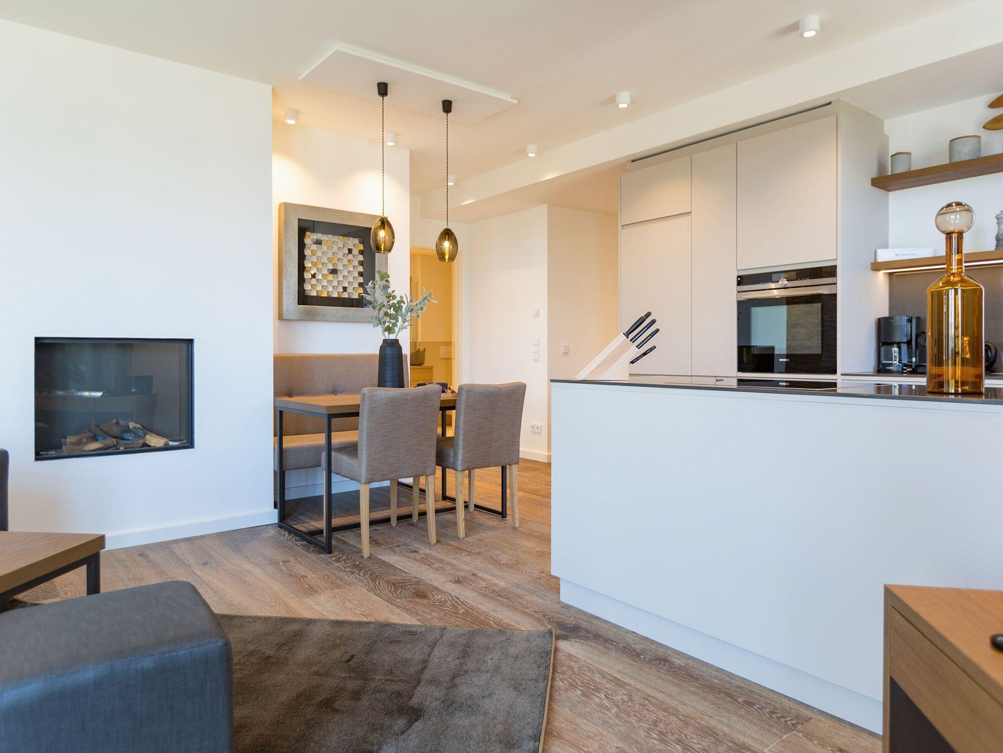 Maritimes Flair mit Seeblick empfängt Sie in den drei Zimmern des Appartements Nummer 2 im 1. Obergeschoss des Beachhouses. Modernster Wohnkomfort gepaart mit der exklusiven Lage dieses Feriendomizils machen die Ostsee-Auszeit für vier Personen und ein Kleinkind bis drei Jahre (im Kinderreisebett) zu einem unvergesslich schönen Erlebnis. Auch Ihr geliebter Vierbeiner ist in dieser Wohnung herzlich willkommen. Insgesamt 79 Quadratmeter groß ist die Wohnung. Und sie ist stilvoll und erlesen eingerichtet. 0815 gibt es hier nicht! Lassen Sie sich schon morgens von der Sonne und dem Rauschen der Ostsee sanft wecken. Aus einem der beiden Schlafzimmer haben Sie einen direkten Blick auf das Meer. Und damit nicht genug. Über den vom Schlafzimmer zugänglichen Balkon (6 Quadratmeter groß) können Sie die frische Ostseebrise denn auch gleich hautnah fühlen. Den Blick schweifen lassen, durchatmen und abschalten: Das ist Urlaub. Übrigens haben beide Schlafzimmer Zugang zu einem Balkon. Der zweite Balkon (8 Quadratmeter groß) schaut südostwärts mitten auf die Einkaufsstraße und das Leben von Bansin hinunter. Ausgestattet mit bequemen Boxspringdoppelbetten (einmal 1,80 m x 2,00 m und einmal 1,60 m x 2,00 m), je einem Flat-TV und geräumigen Schränken bieten Sie Behaglichkeit und ein Rund-um-Sorglos-Gefühl. Das macht sich übrigens im gesamten Appartement breit. Das große und lichtdurchflutete Wohn-Ess-Zimmer ist eine echte Wohlfühlzone mit direktem Blick auf die Ostsee. Das gemütliche Sofa lädt zum Relaxen ein ? entweder beim Schauen auf das Flammenspiel des gläsernen Gas-Kamins oder beim Schauen eines Films auf dem großen Flat-TV. Zur technischen Ausstattung gehört hier auch eine Hi-Fi-Anlage mit bluetooth-Funktion und kostenloses WLAN. Der schöne Esstisch mit den Stühlen und der Bank ist ideal zum Zusammensitzen. Kochen Sie gemeinsam in der zum Wohnzimmer hin offenen Küche. Die frei stehende Kochinsel ist ein echtes Highlight für Hobbyköche. In den Schränken finden Sie erlesenes Geschirr. Und die Küchenzeile ist mit hochwertigen Markengeräten voll ausgestattet. Ihr Feriendomizil verfügt über zwei Bäder. Eines ist ausschließlich von einem der beiden Schlafzimmer aus zugänglich. Beide sind jedoch mit einer schönen, großen und ebenerdigen Regendusche, einem Waschtisch und einem WC ausgestattet. Im Masterbad befindet sich zudem eine Finnische Sauna, die Sie kostenfrei nutzen können. In einem Hauswirtschaftsraum befindet sich ein Waschtrockner. Kommen Sie also einfach an und entspannen Sie. Die Betten haben wir für Sie bereits bezogen und auch Handtücher liegen für Sie bereit. In der modernen Tiefgarage ist für Sie der Stellplatz Nr. 2 im Doppelparker oben (max. Höhe 1,90m, max. Länge 5,10 m, max. Breite 2,50 m, max. Last 2.600 kg) reserviert.