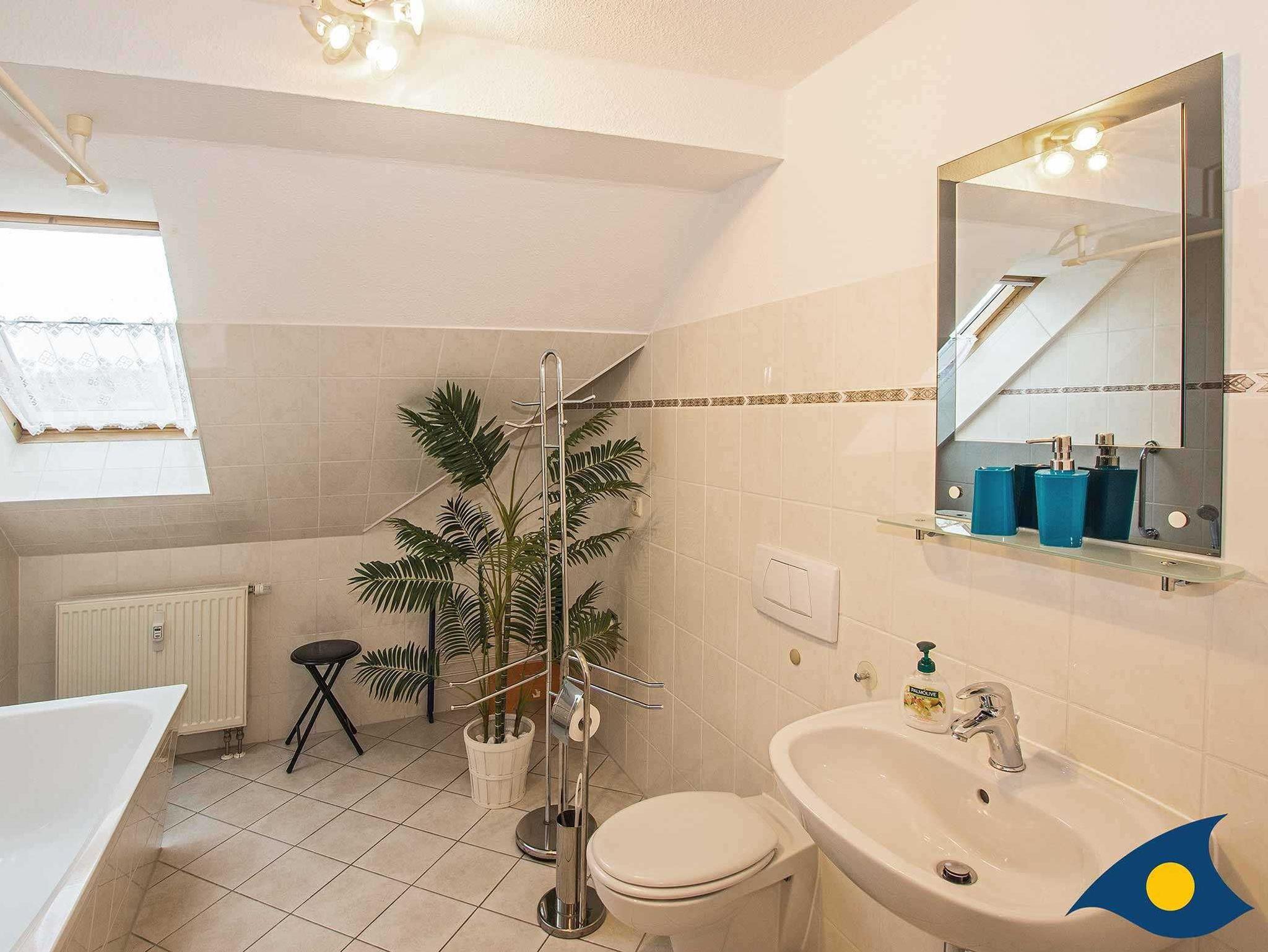 Die Wohnung verfügt außerdem über ein geräumiges, helles Badezimmer mit Wannenbad und großem Dachflächenfenster.