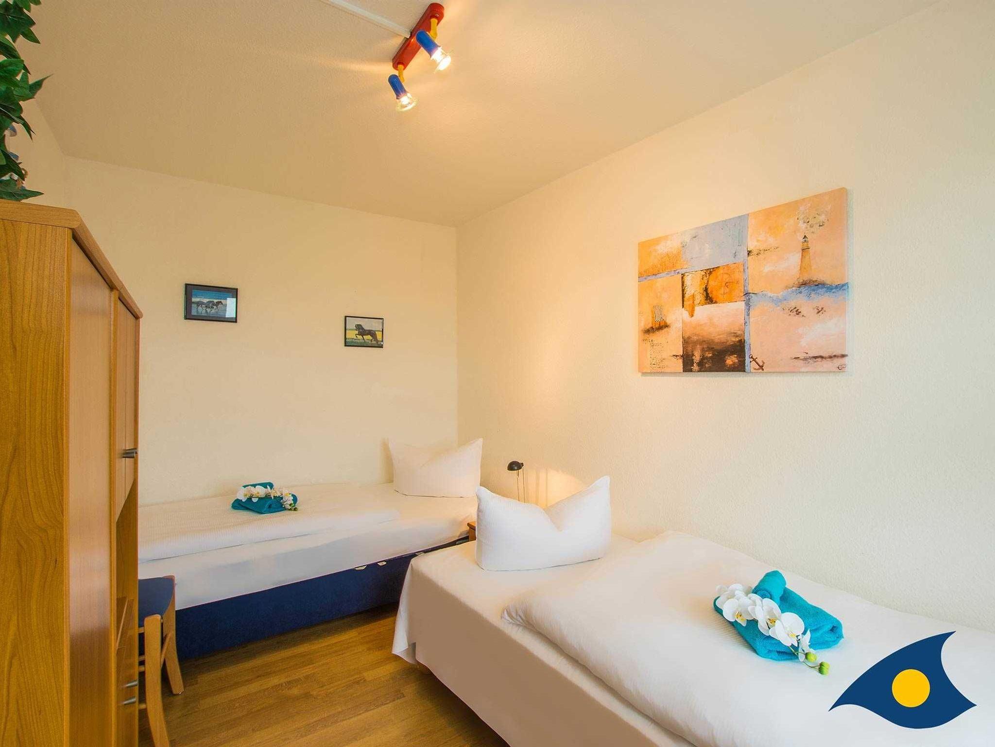 Erholsamen Schlaf finden Sie in einem komfortablen Schlafzimmer mit Doppelbett und einem separaten Schlafzimmer mit 2 Einzelbetten. Im Elternschlafzimmer findet ein Kinderreisebett Platz. In allen Schlafräumen sorgen Verdunklungsrollos mit zusätzlicher Sonnenschutzfunktion für einen angenehmen Schlaf.
