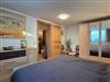 • Das Schlafzimmer ist mit einem Doppelbett (1,80 x 2,00), zwei Nachtschränken, einen Kleiderschrank sowie einer Kommode ausgestattet.