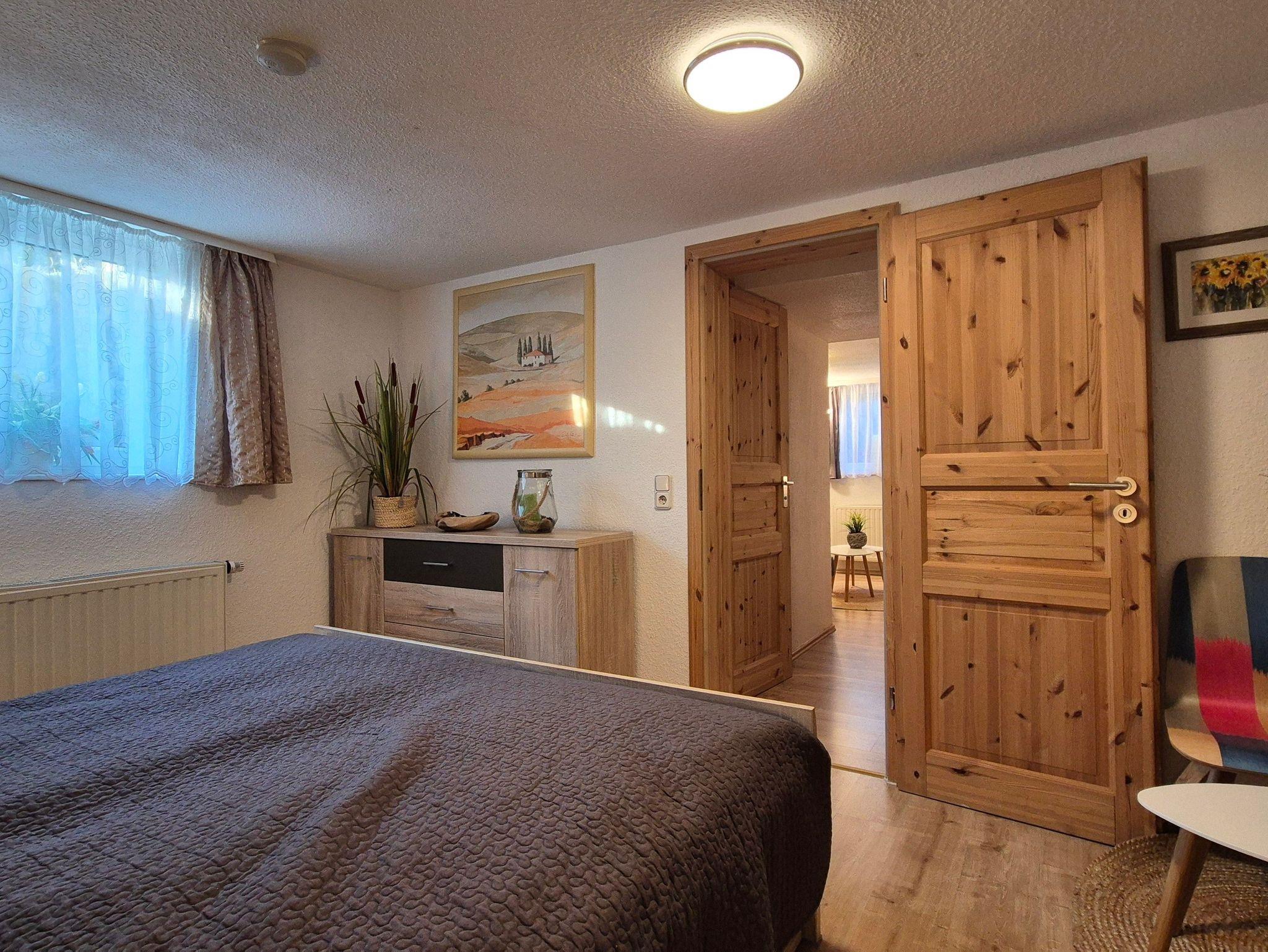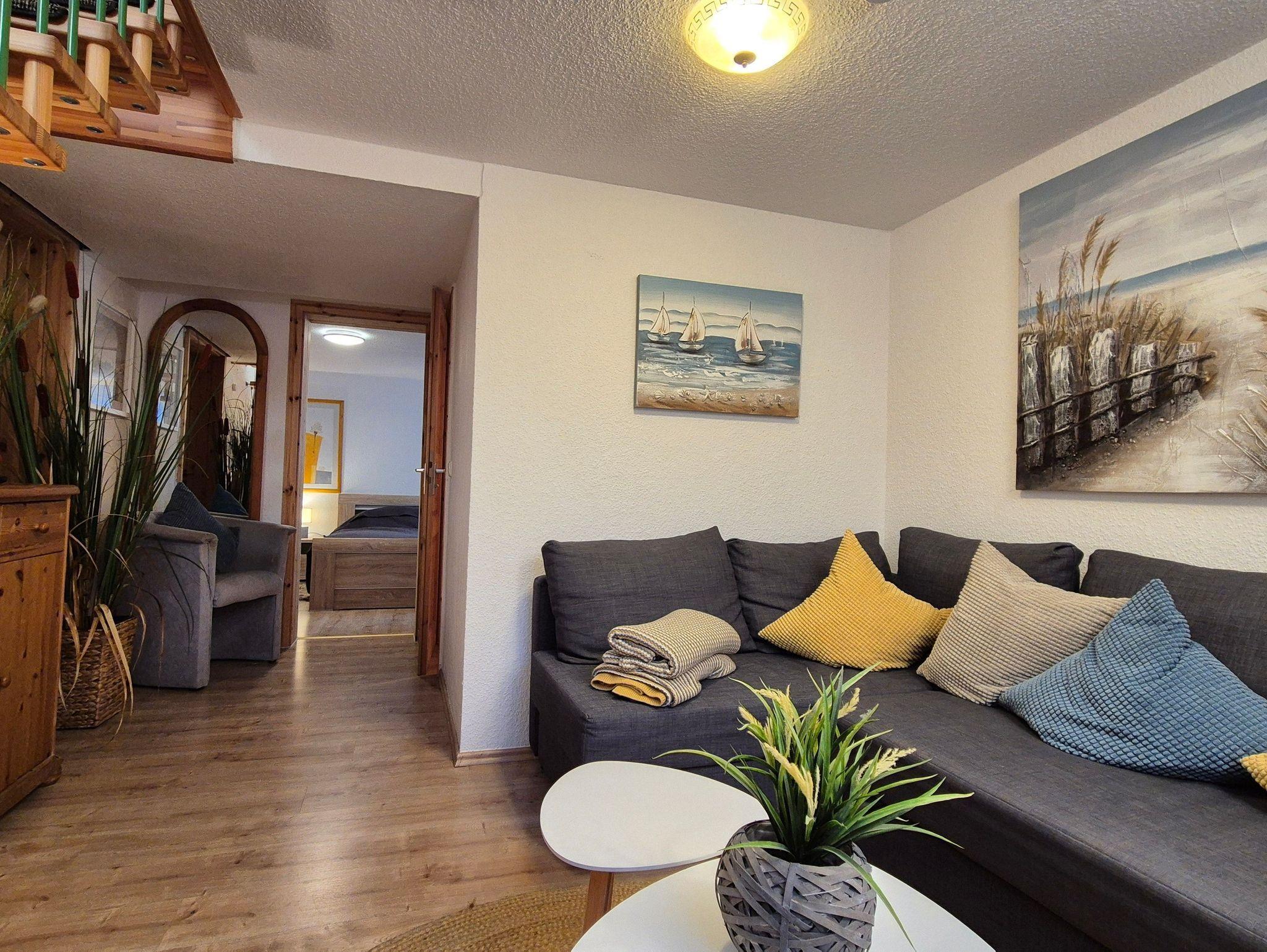 Die 2-Zimmer Ferienwohnung befindet sich im Erdgeschoß und im Souterrain und verfügt über eine helle Küche, ein Wohnzimmer, ein Schlafzimmer, ein Bad, einen Flur und einer Terrasse.