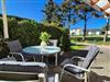 • Neben dem Eingangsbereich der Ferienwohnung befindt sich die Terrasse mit Sitzgelegenheit.