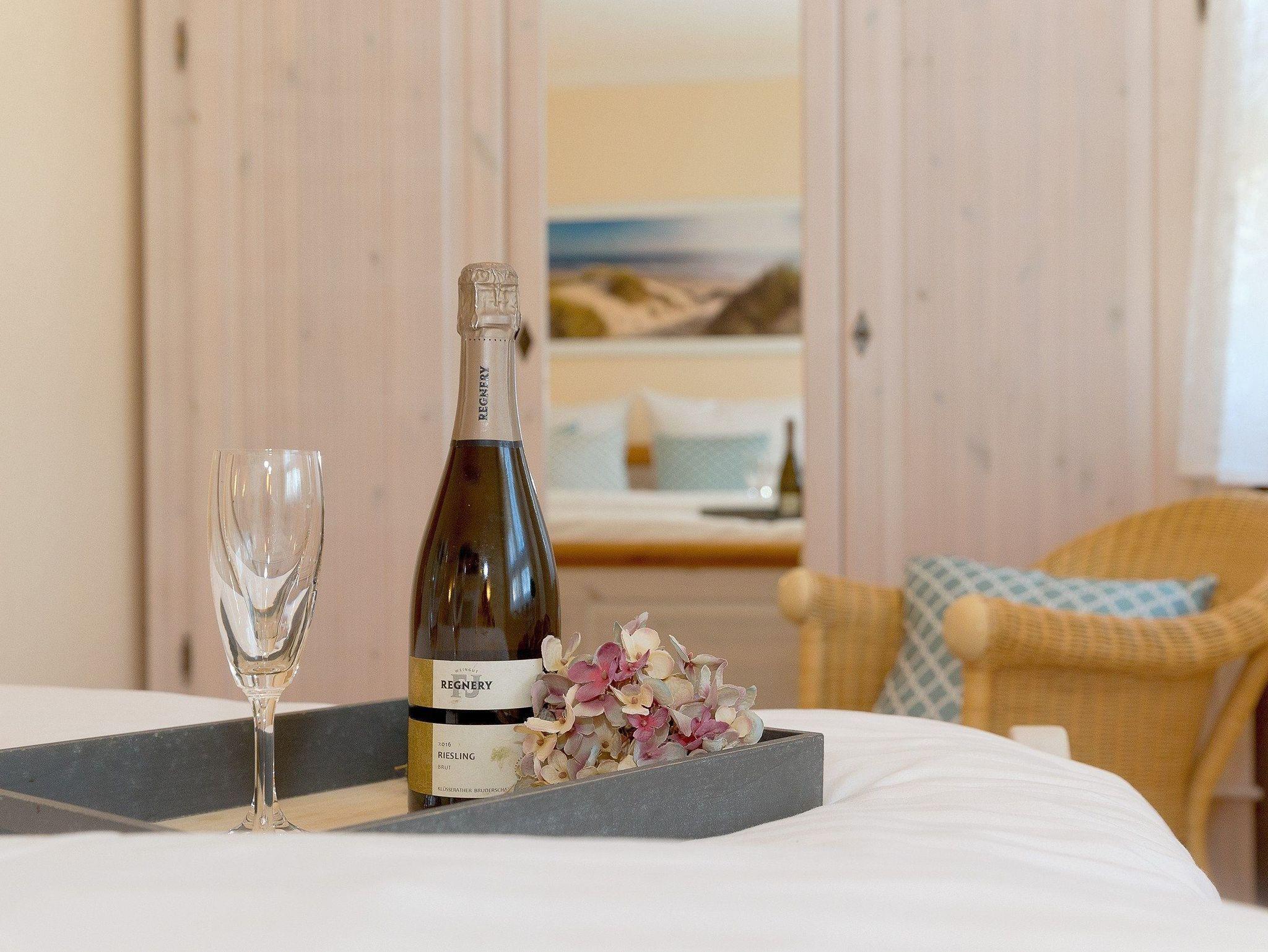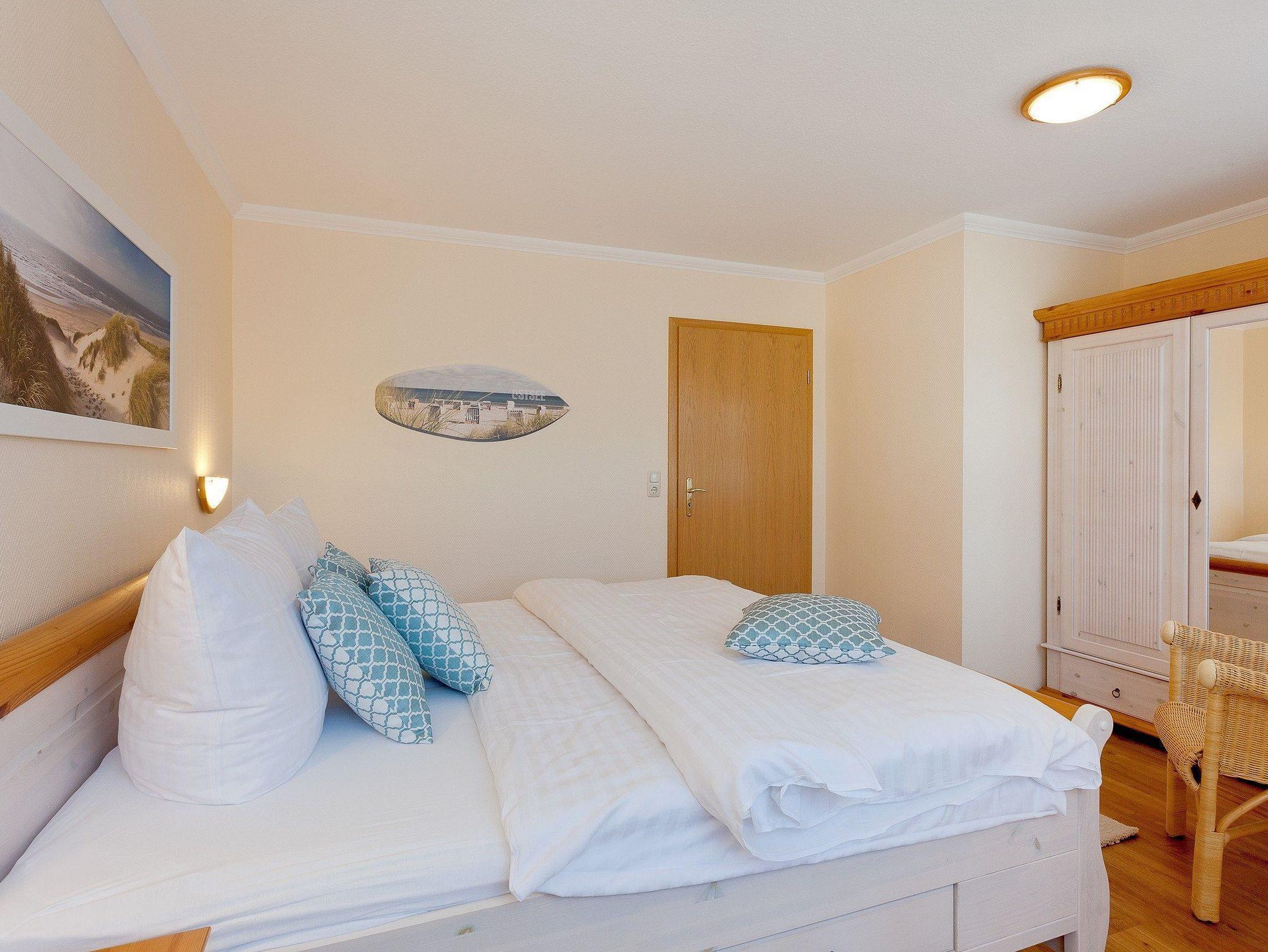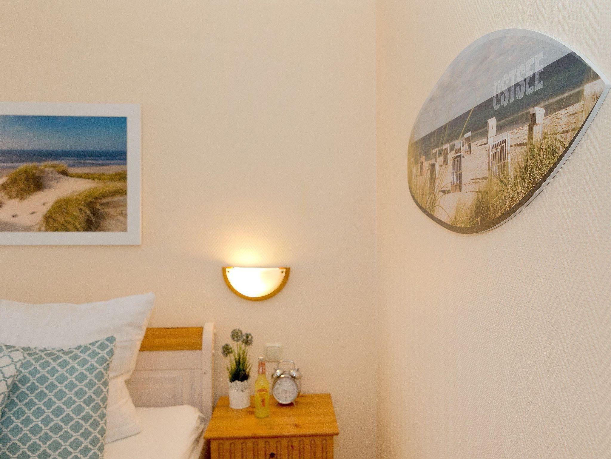 Auf dem angrenzenden Balkon können Sie sich für ein Sonnenbad oder einem gemütlichen Abend an der Ostseeluft zurückziehen. Im Schlafzimmer erwartet Sie ein bequemes Doppelbett (180 x 200cm / zwei getrennte Matratzen), beginnen Sie einen neuen Urlaubstag frisch ausgeschlafen und gut erholt.