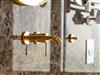 Das Badezimmer als Experiment, einmal mit einer auffallenderen und auch ungewöhnlicheren Farbgestaltung ein Wohlfühlgefühl de luxe zu erzeugen. Das Ergebnis kann sich sehen lassen: großformatige dunkle Natursteinfliesen gepaart mit einer hellen Badkeramik sowie Armaturen und Accessoires in Messing präsentieren nun zusammen mit einer bodengleichen Dusche sowie einer Badewanne den Urlaubskomfort.