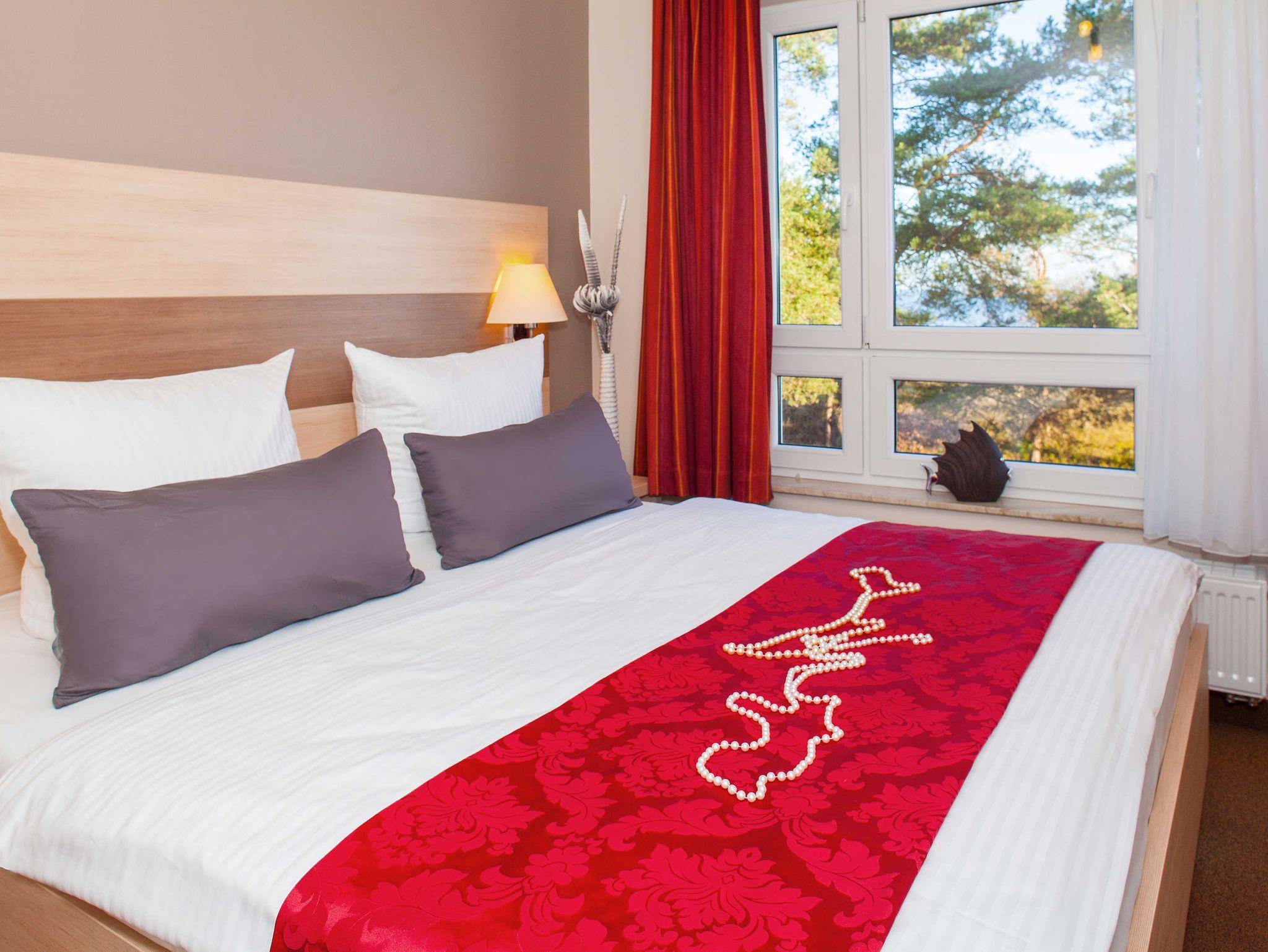 (Meerblick) Stilvolle moderne 3 Zimmer- Ferienwohnung mit ca. 67 qm. Die Wohnung verfügt über zwei Schlafräume mit je einem Doppelbett ( 180 x 200 ) , einem großen Balkon mit Meerblick, sowie ein zusätzliches Gäste WC!! Das Haus bietet die Möglichkeit Fahrräder gegen Gebühr zu leihen. Waschmaschine und Trockner stehen Ihnen im Haus als Münzautomaten zur Verfügung!